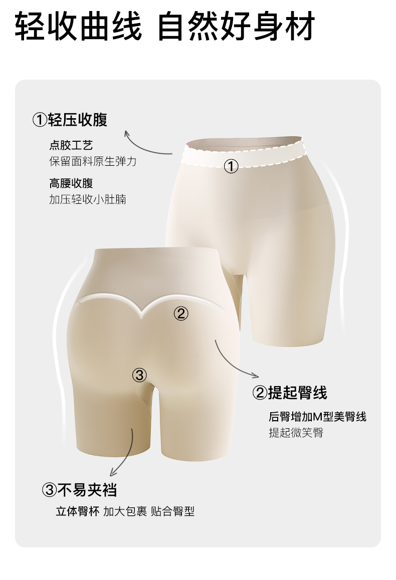 Ubras2024 New Seamless Invisible Tummy Control Anti-Exposure Safety Shorts High-Waisted No-Underwear Shorts Leggings