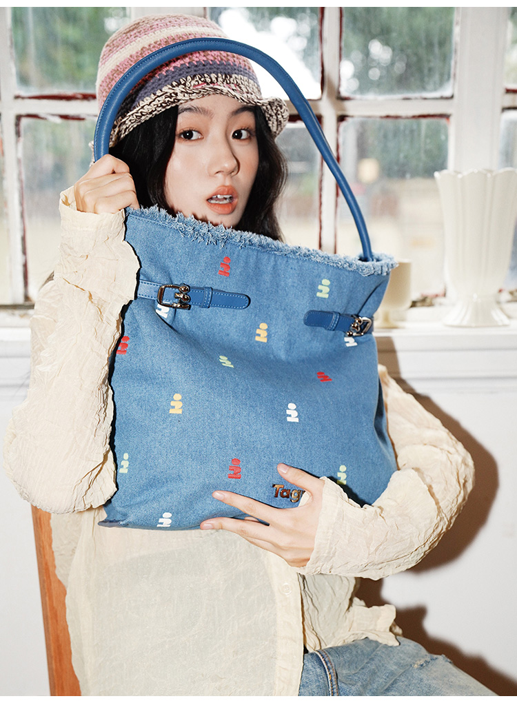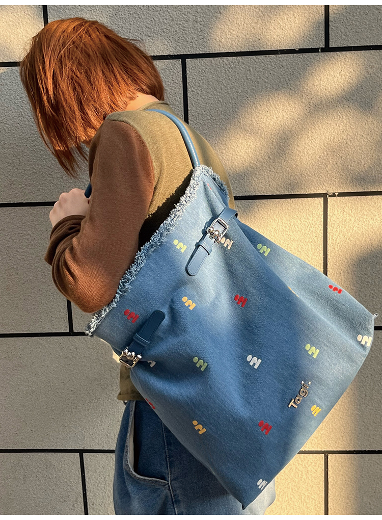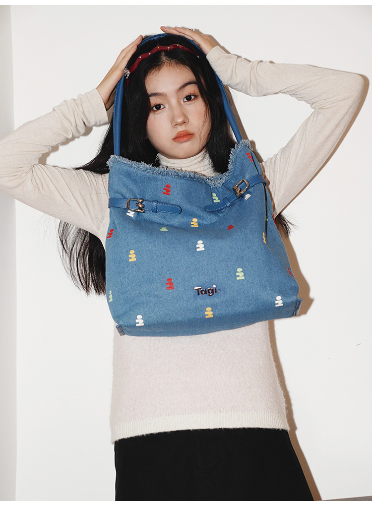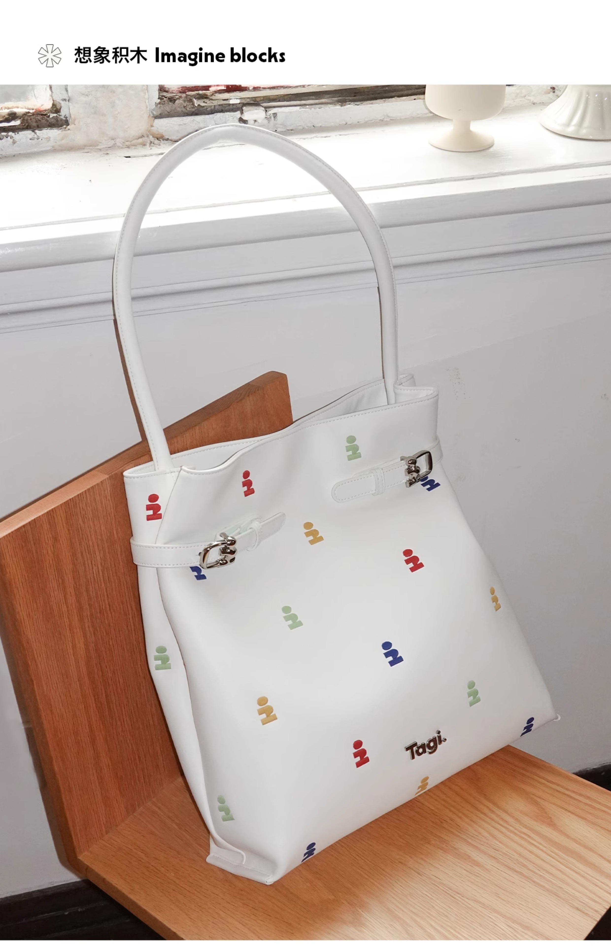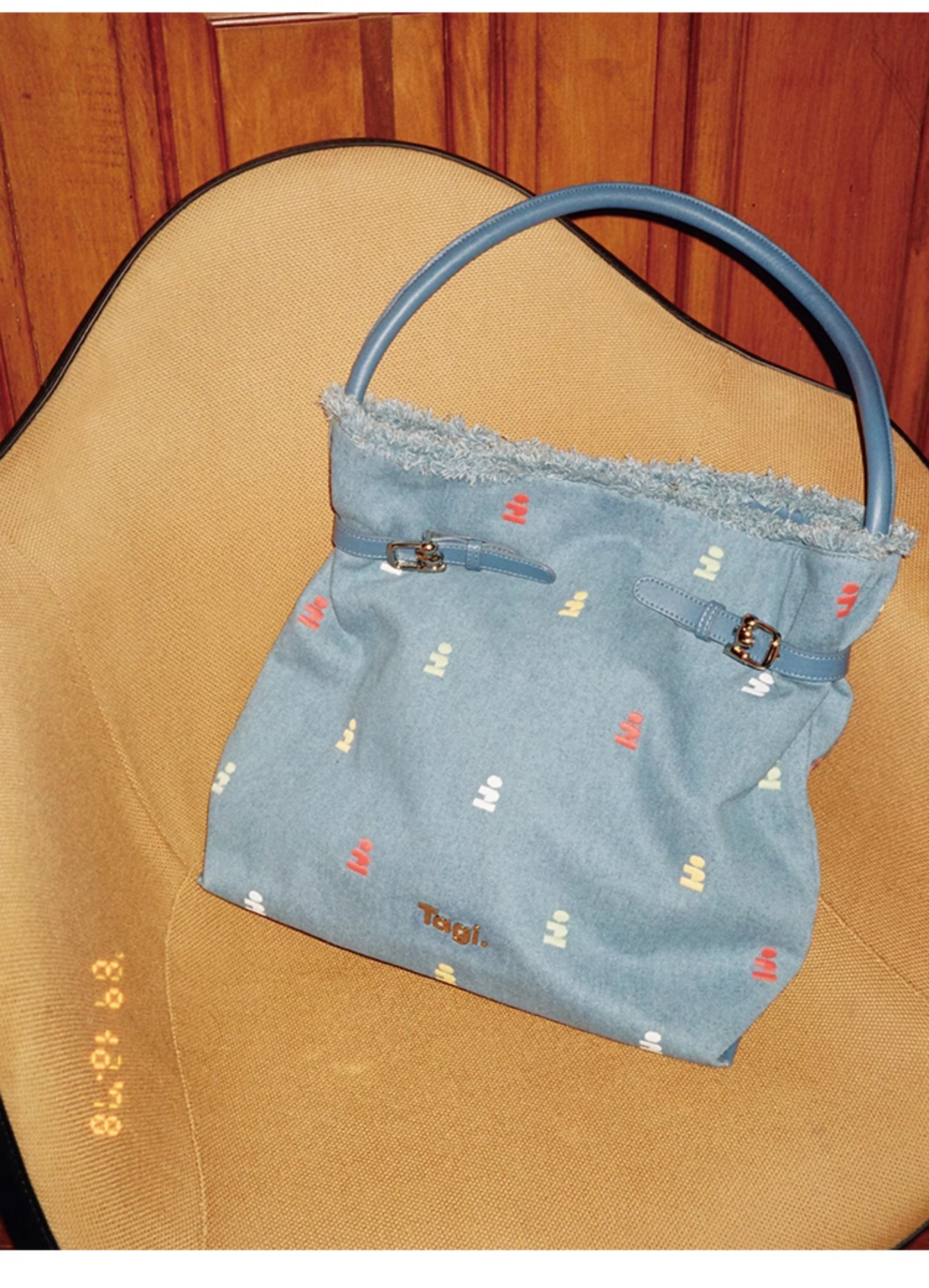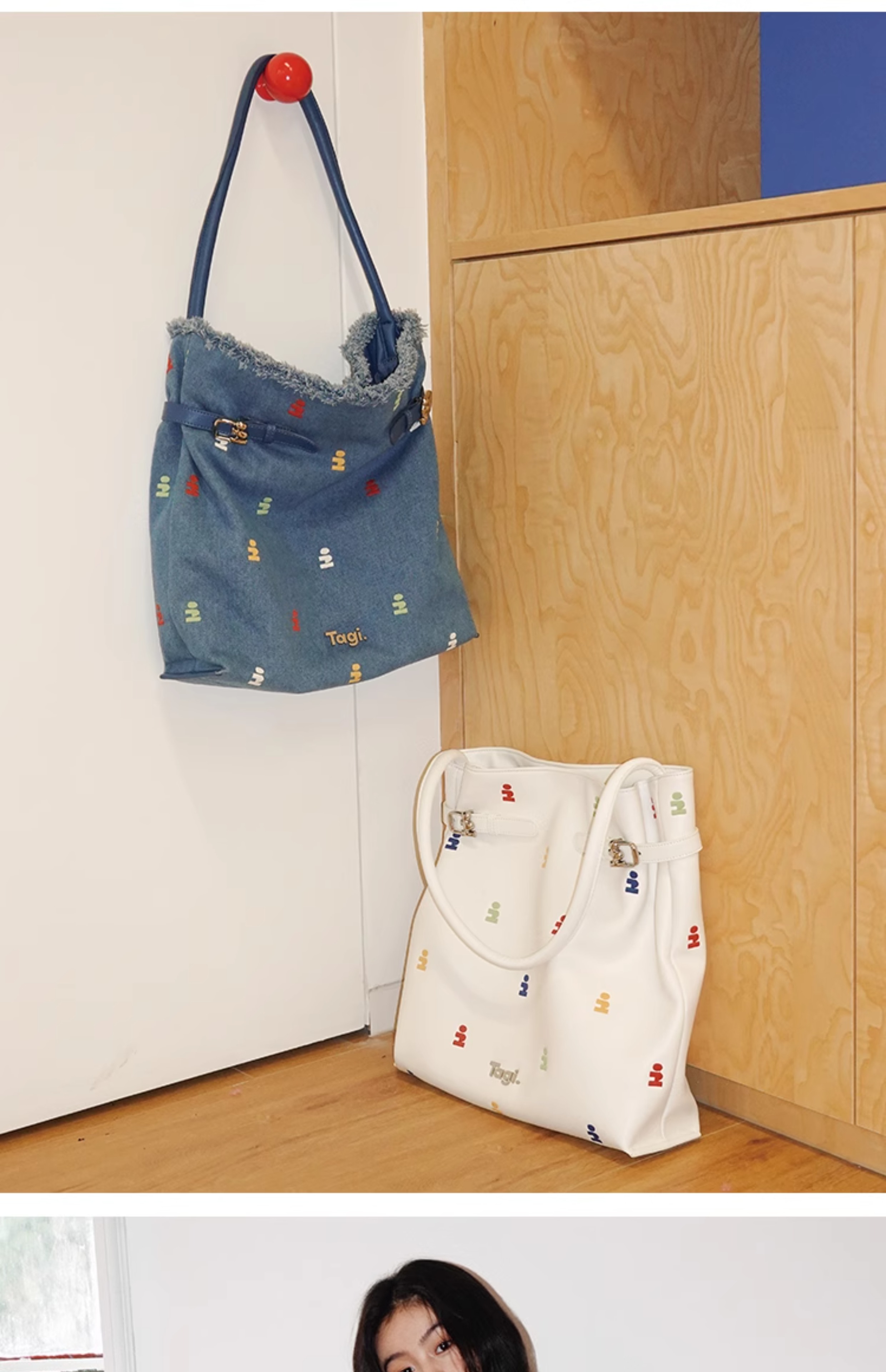 Tagi. "I" imagination straw bag canvas hobo leather large tote handbag