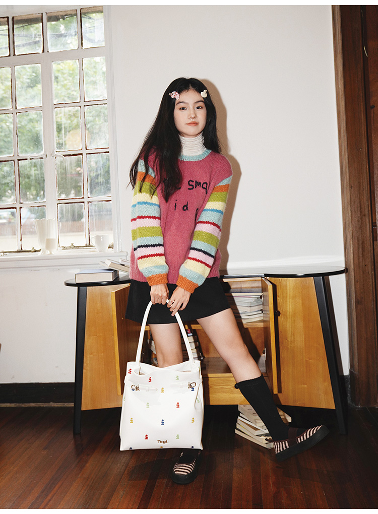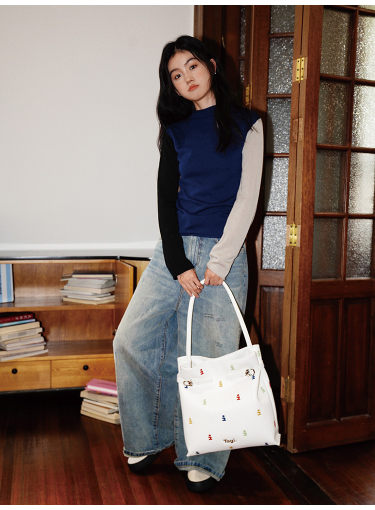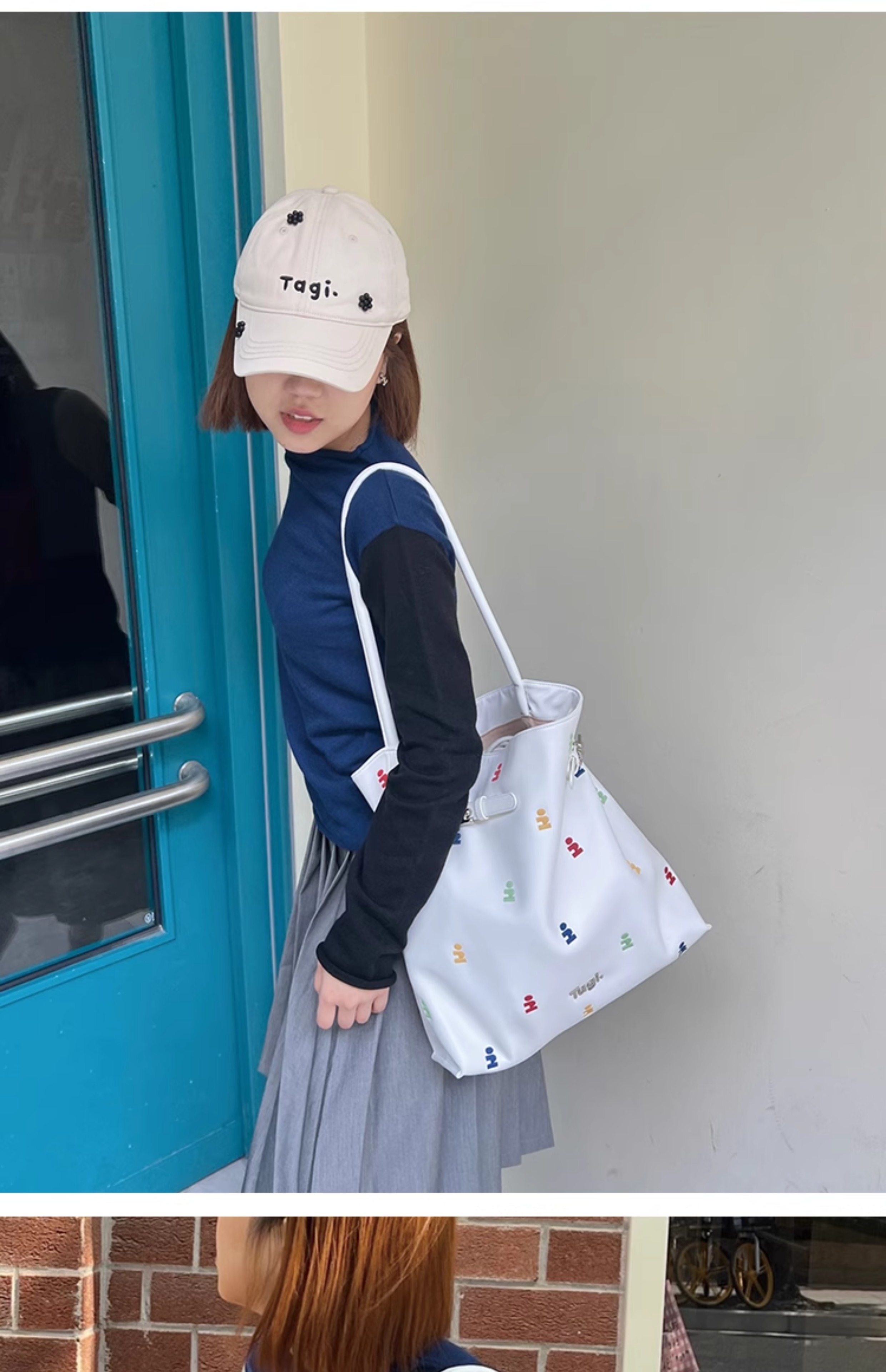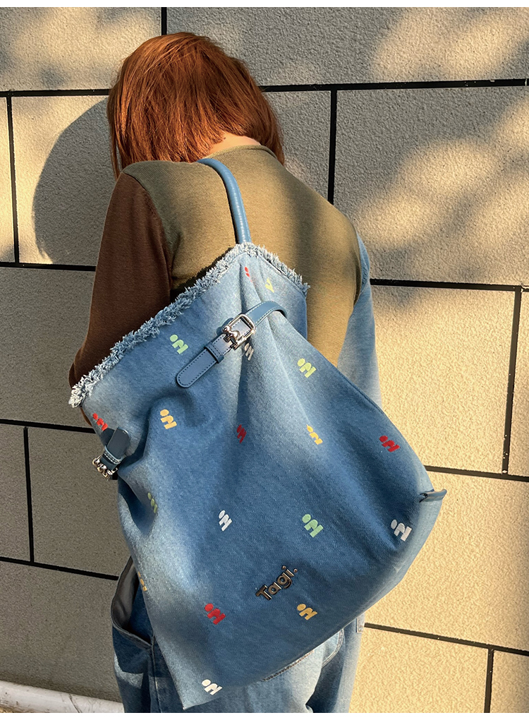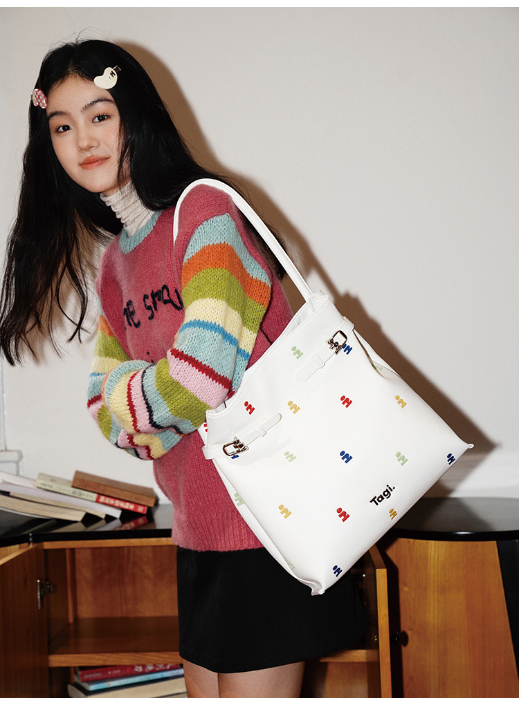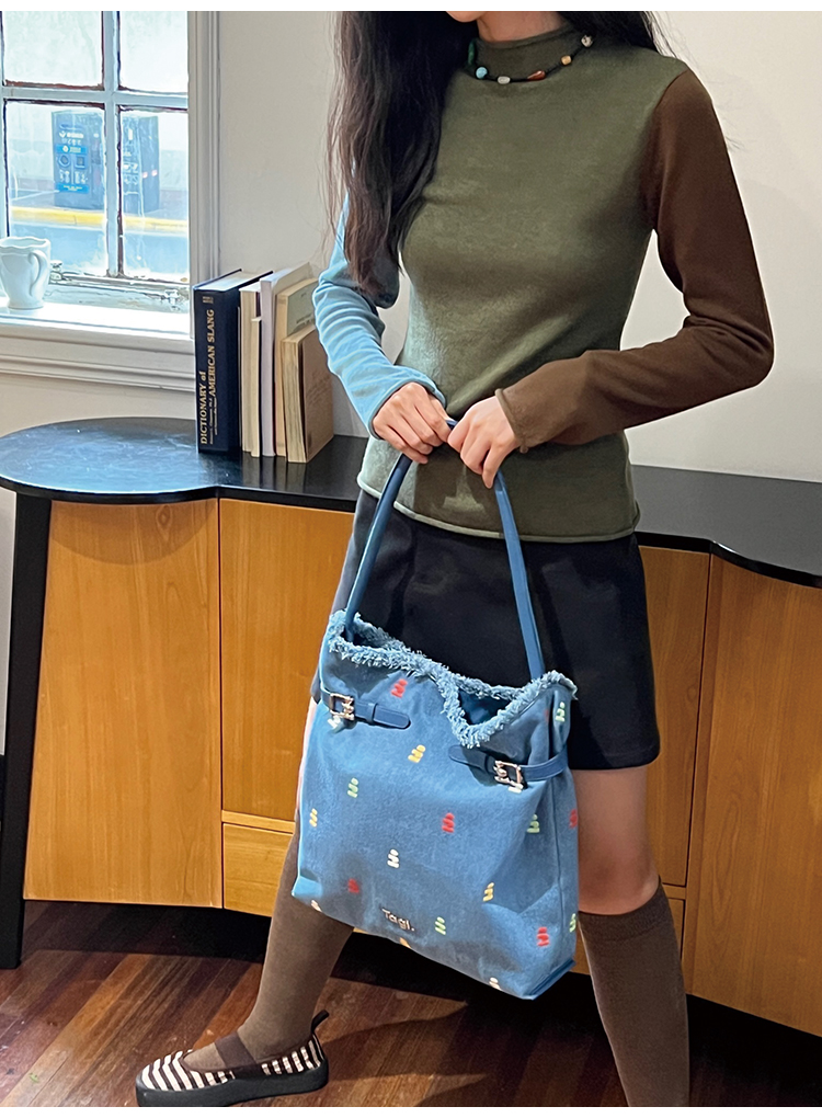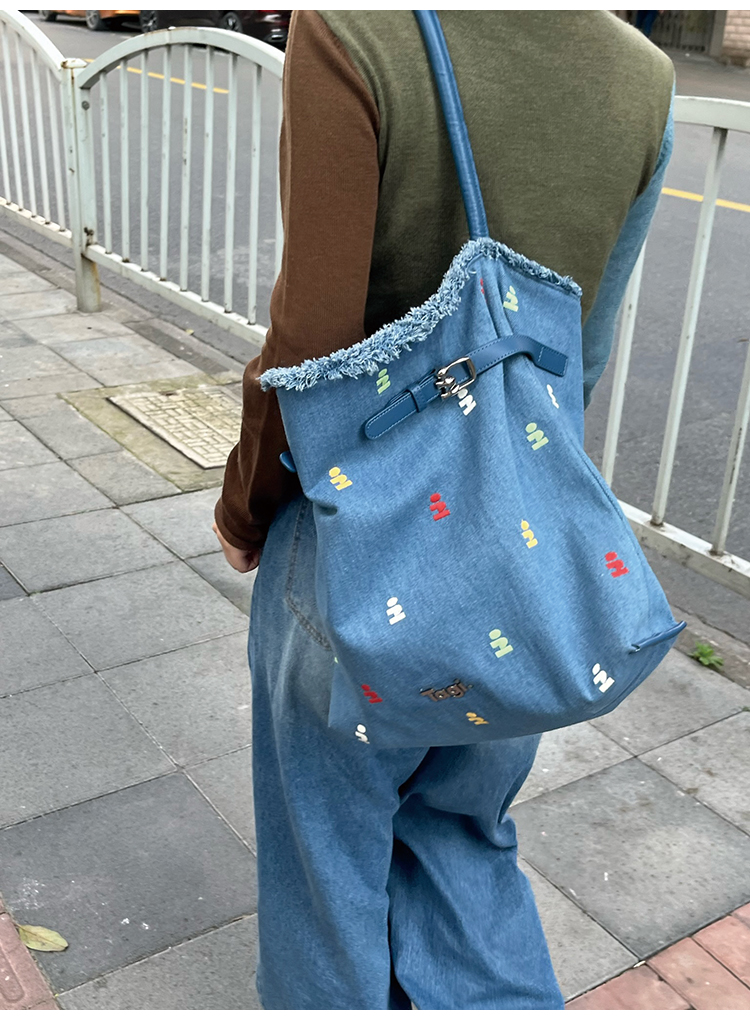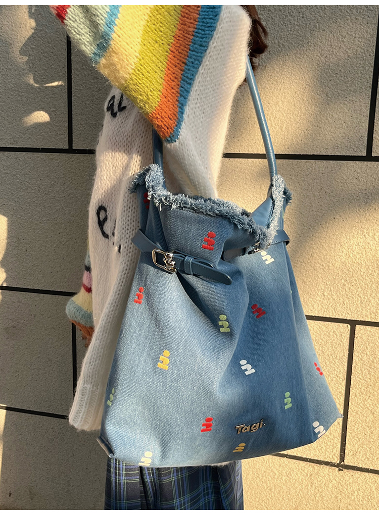 Tagi. "I" imagination straw bag canvas hobo leather large tote handbag