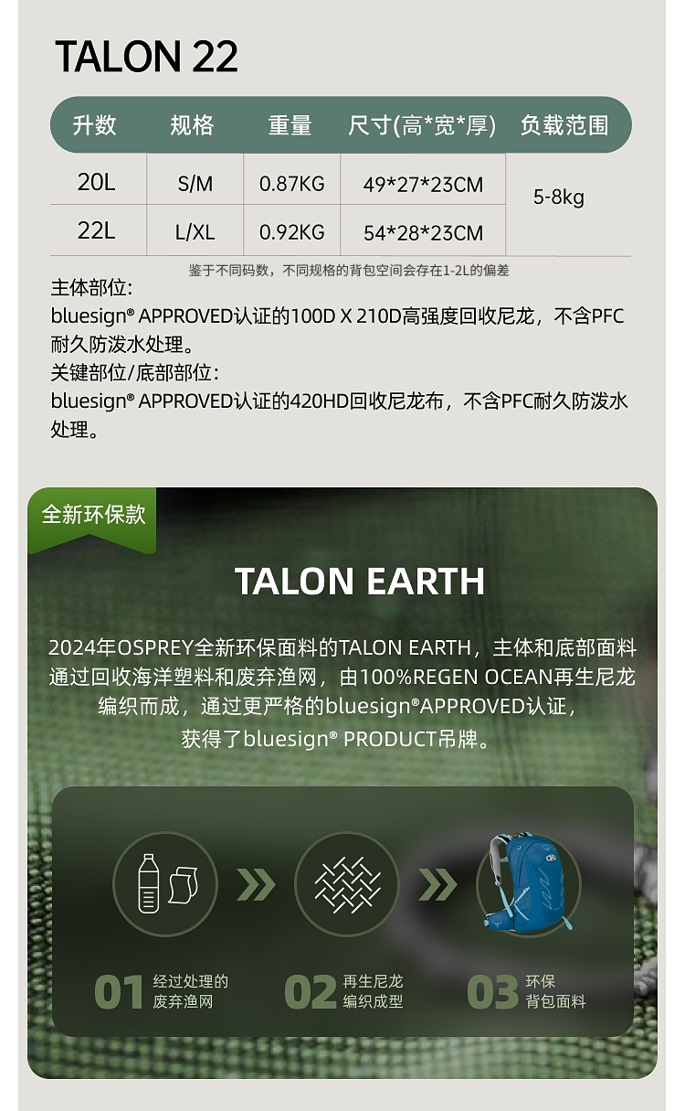 OSPREY Talon22 Talon 22 Hiking travel backpack men's hiking multi-functional Environmental-Friendly backpack Eagle