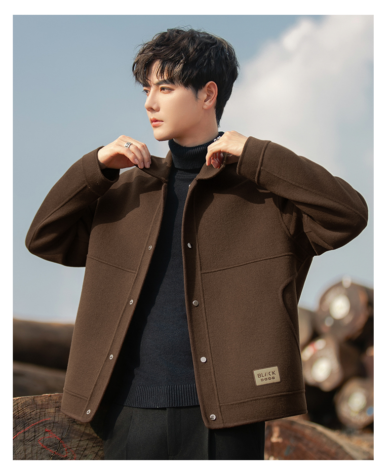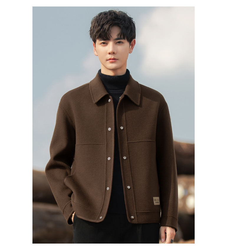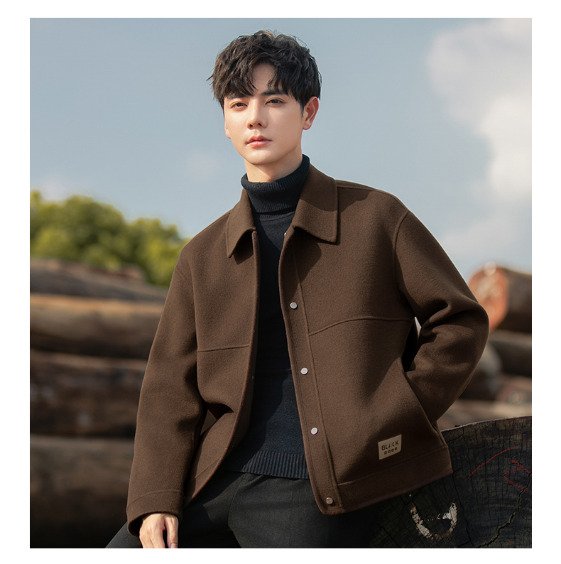 2025 New Spring and Autumn Woolen Coat for Men, Double-Sided Wool Overcoat, Short Woolen Jacket, Men's Winter Clothing, Trendy Fleece