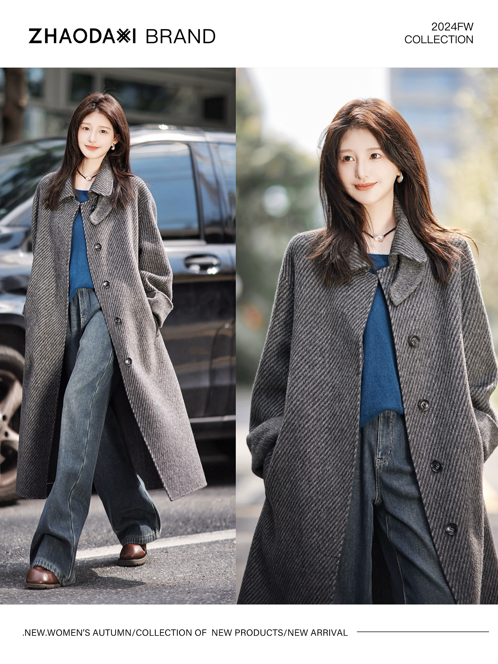 宽松H版长款大衣,上身洒脱自在,自有一种优雅氛围