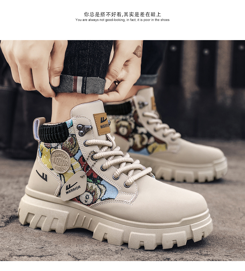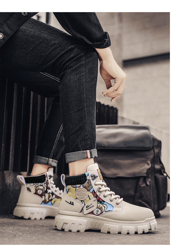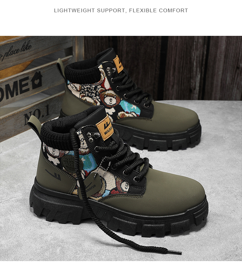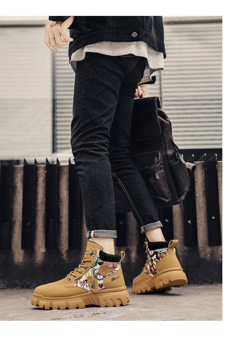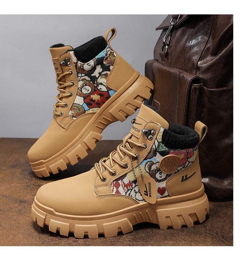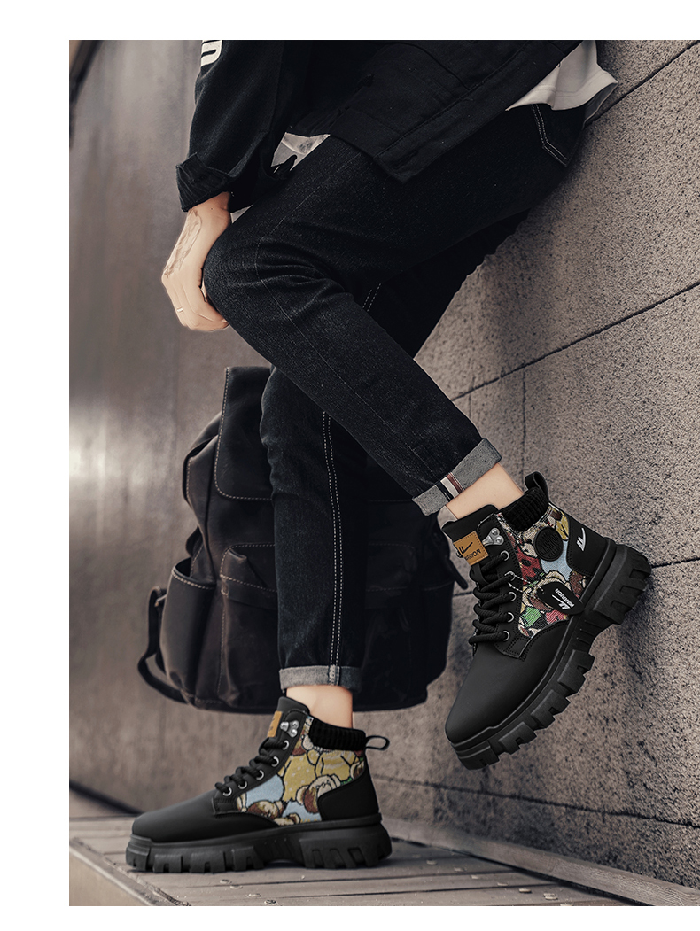Pull-Back Martin Boots High-Top Men's Shoes 2025 New Autumn Fleece-Lined Thickened Warm Cotton Shoes Youth Work Trendy Shoes