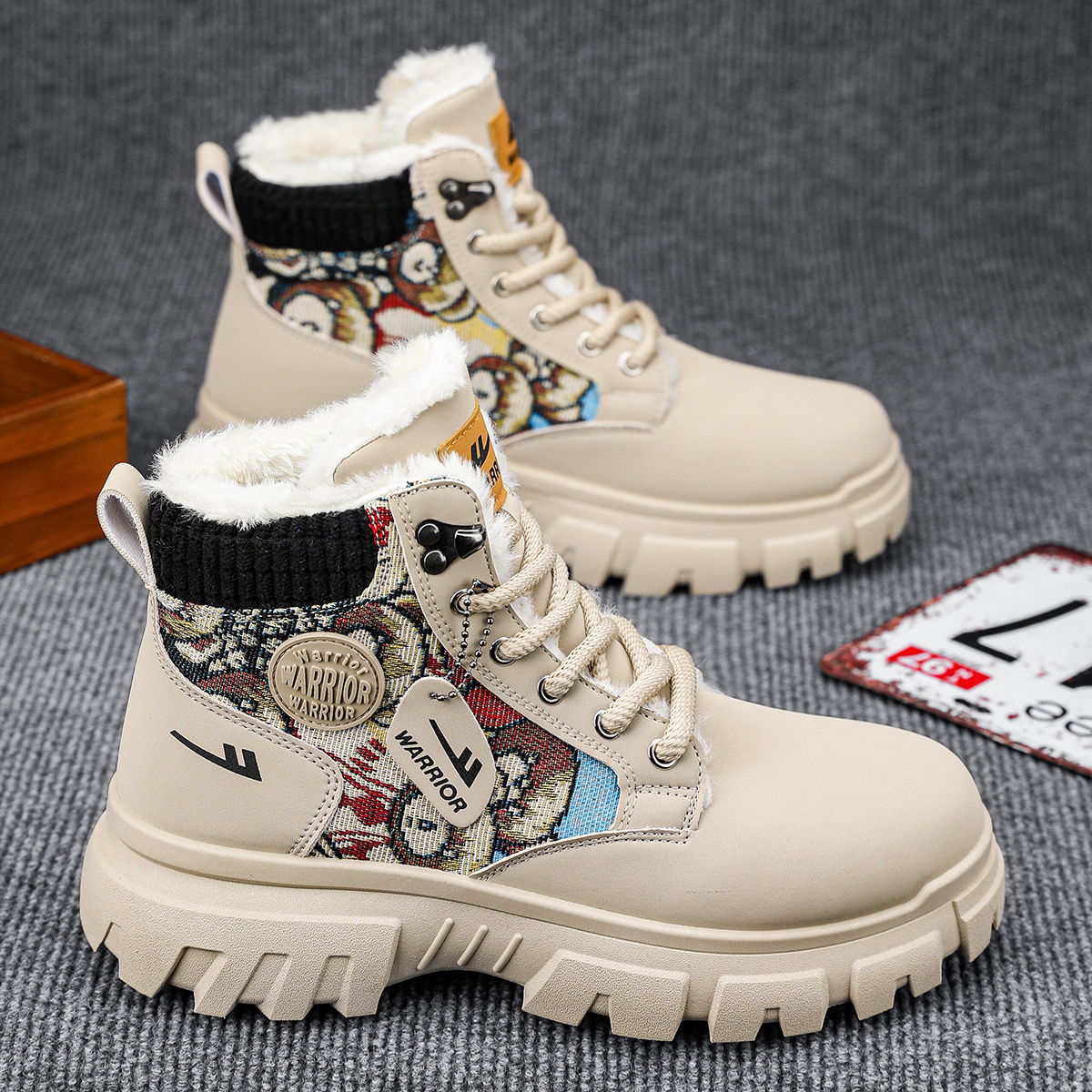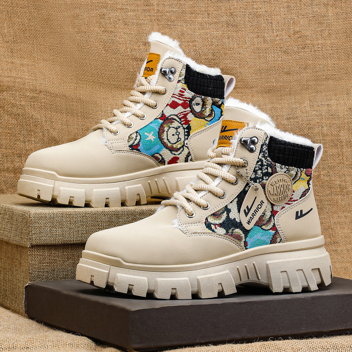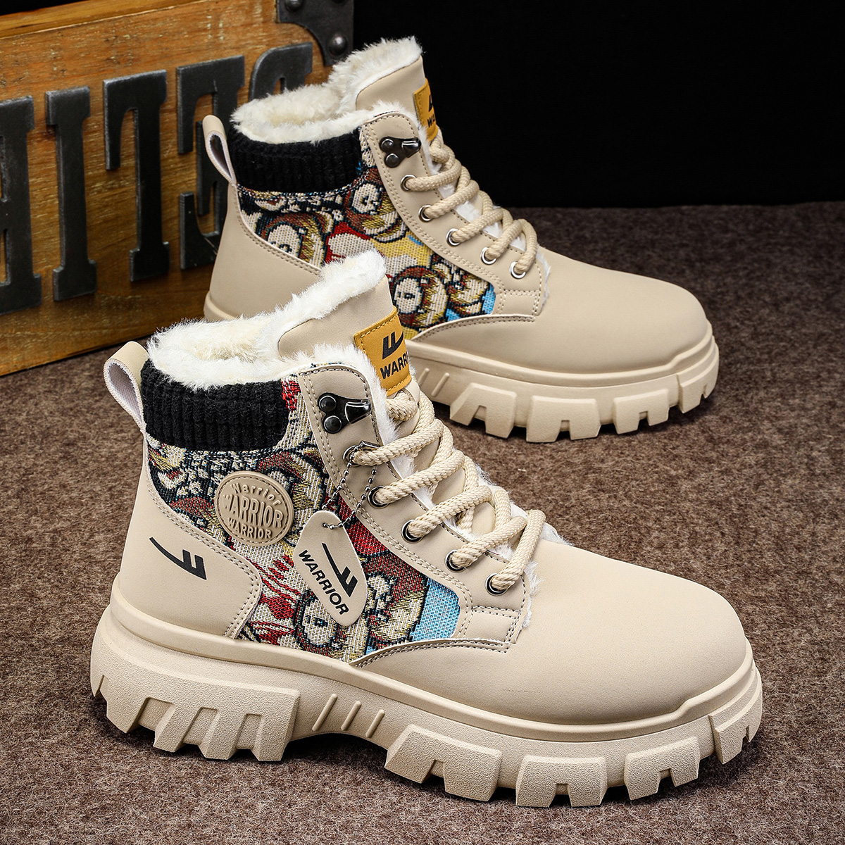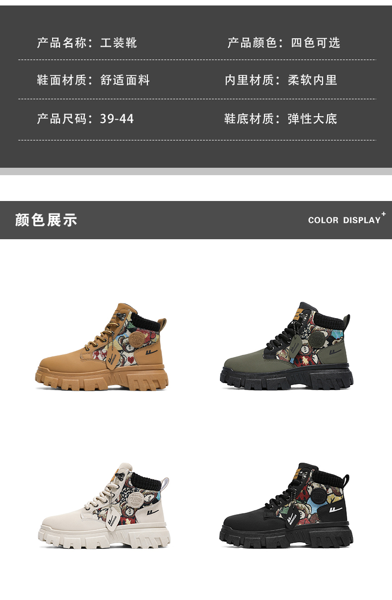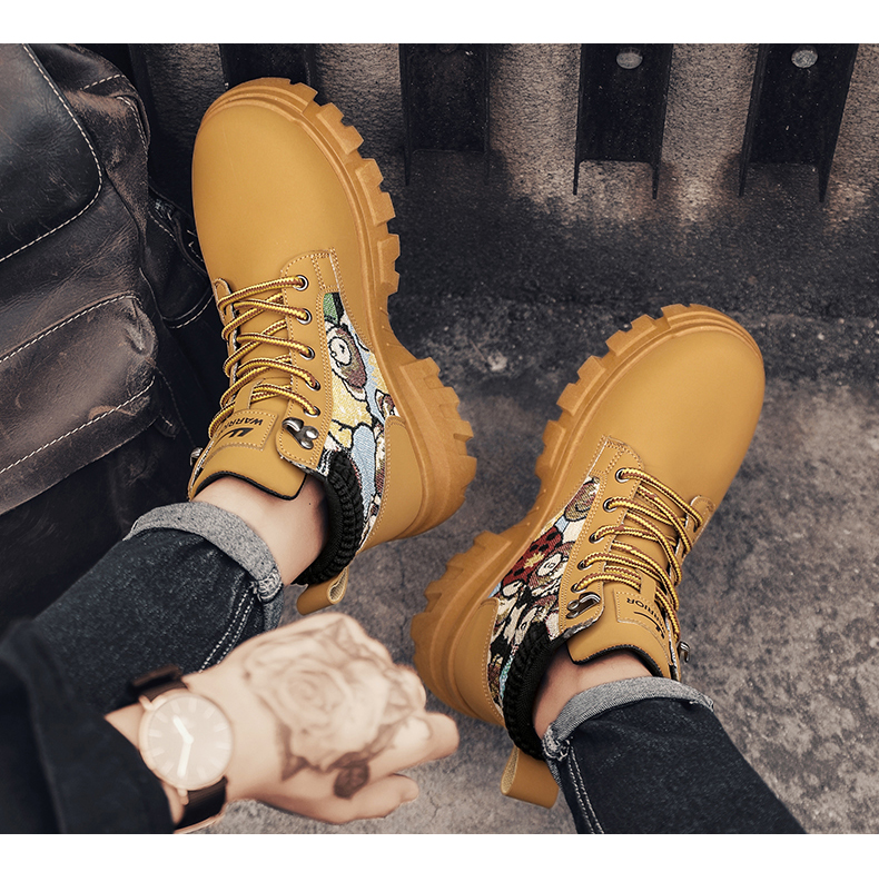 Pull-Back Martin Boots High-Top Men's Shoes 2025 New Autumn Fleece-Lined Thickened Warm Cotton Shoes Youth Work Trendy Shoes