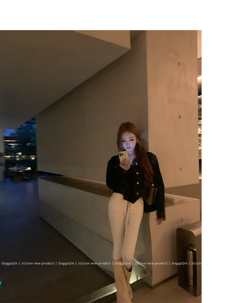 门襟和袖子做了同比例的抽绳设计(内搭的皮绳是PU皮)