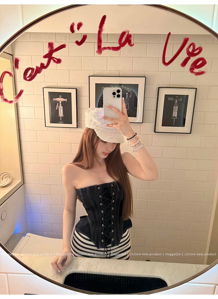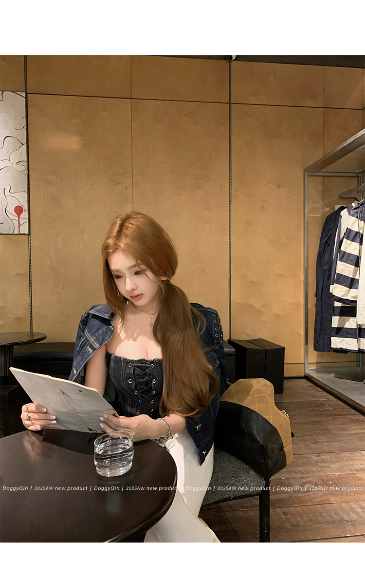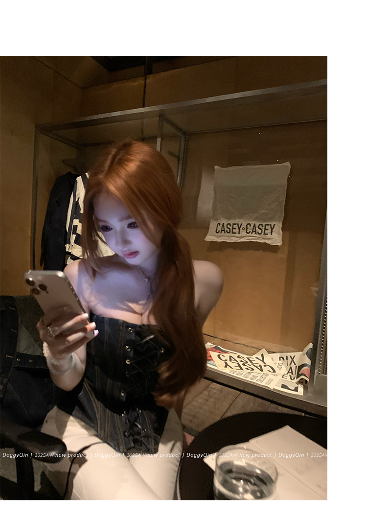 内搭做了塑腰牛仔抹胸 巧妙贴合人体曲线 能够完美包裹胸部