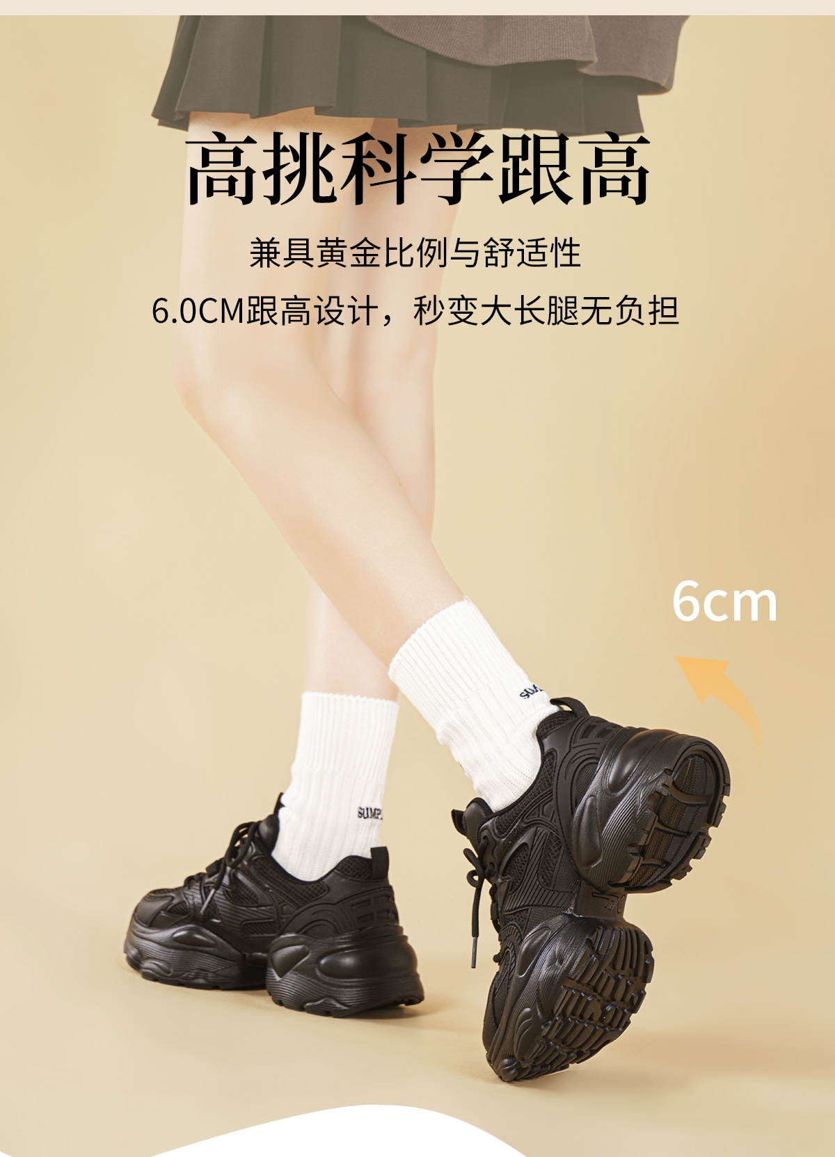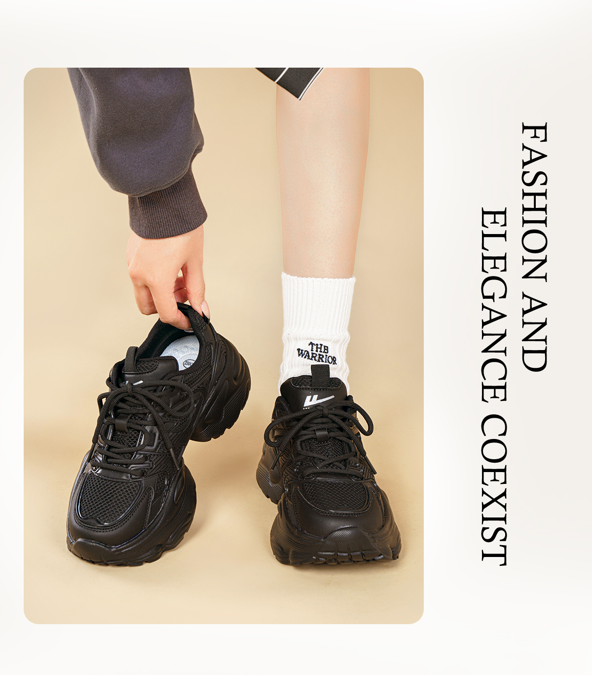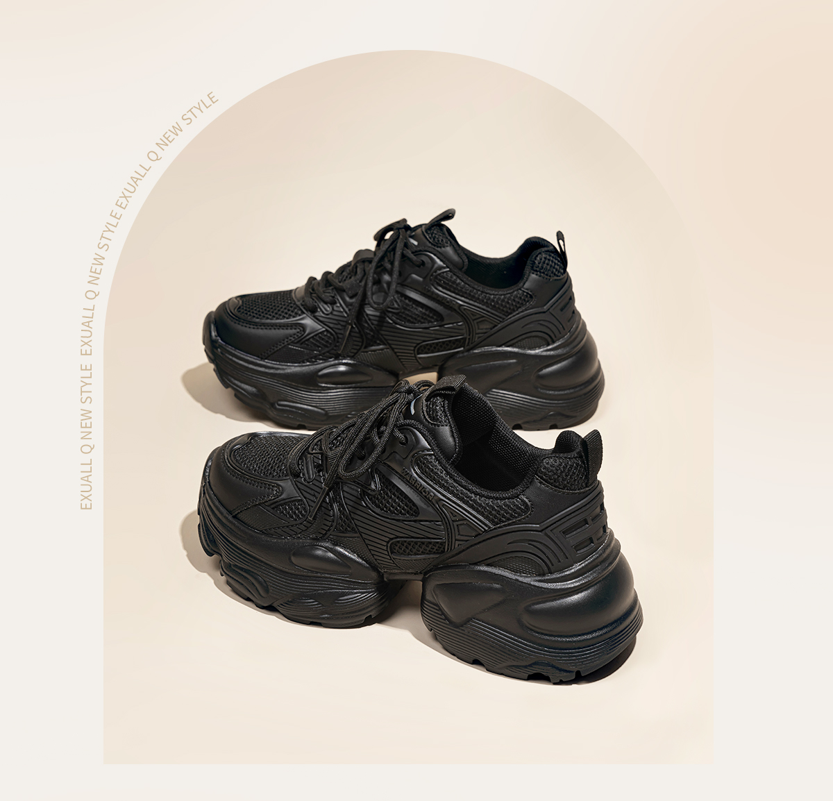 Hui Li Official Flagship Store Black Dad Shoes for Women 2025 Autumn Hot-Selling Height-Increasing Thick-Soled Casual Sports Shoes