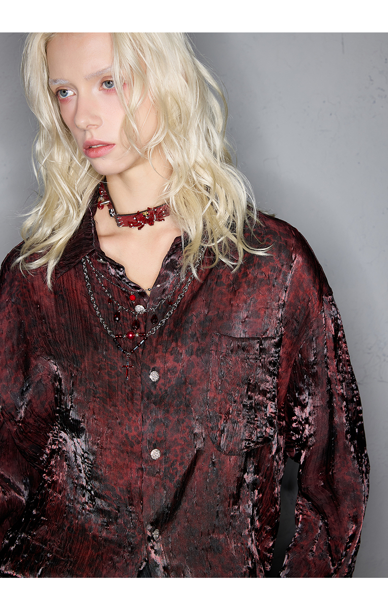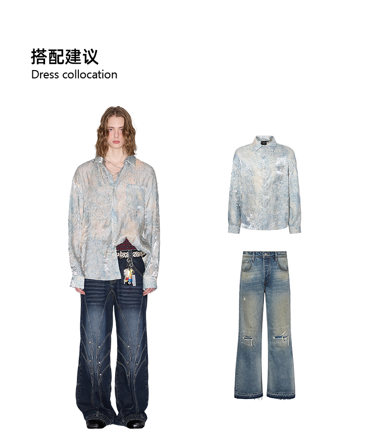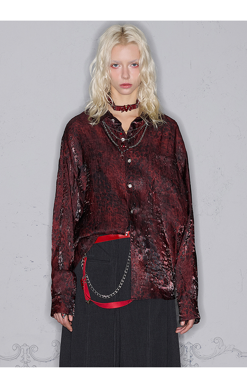 [Ziyu Same Model] Rocawear Glossy Wrinkle Texture Draping Men's and Women's Leopard Print Lapel Long sleeves Shirt Tide