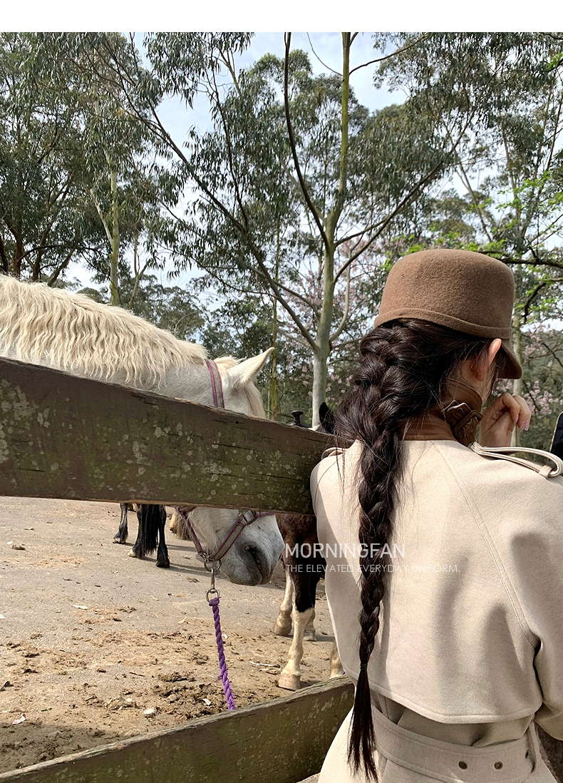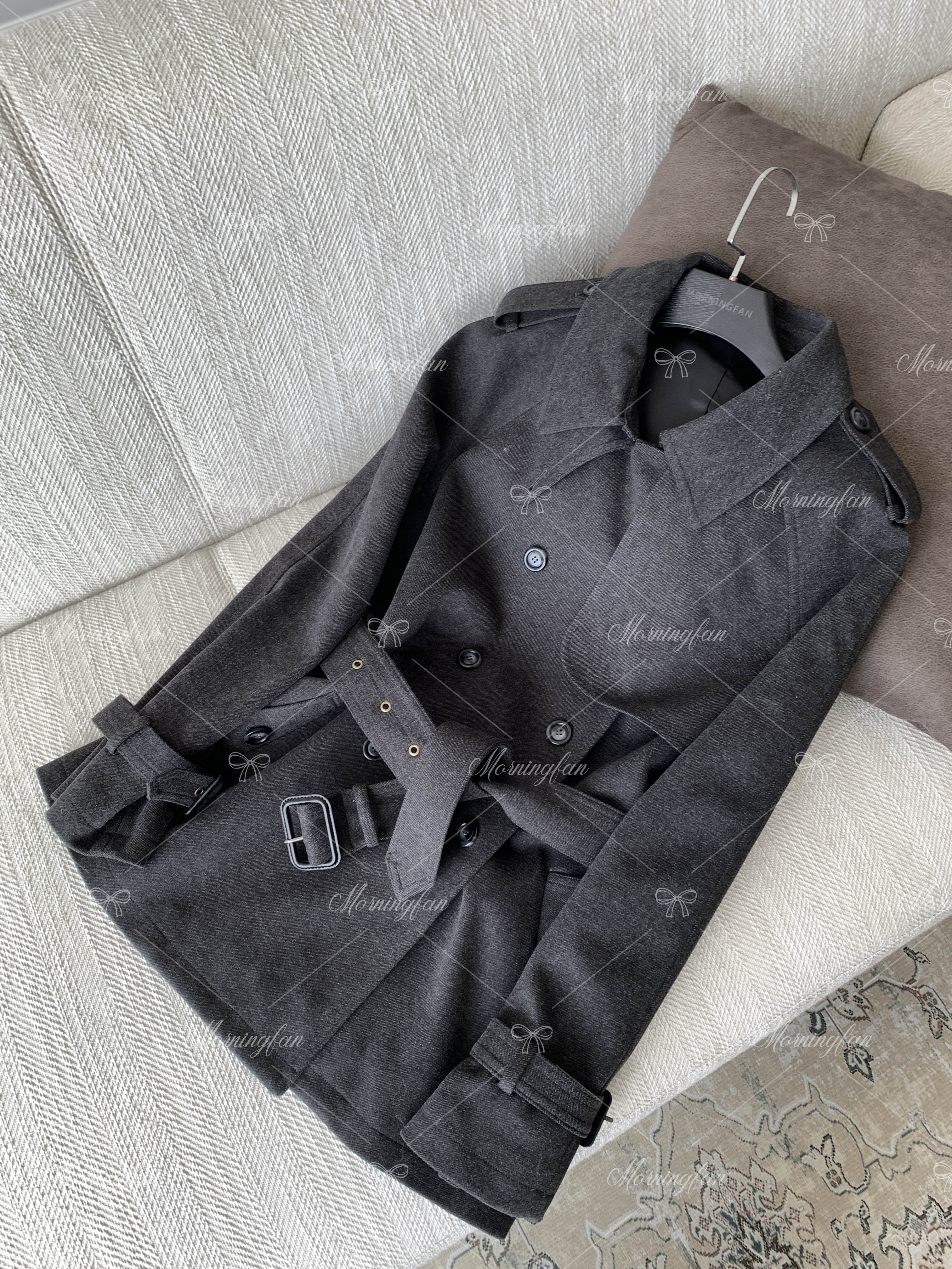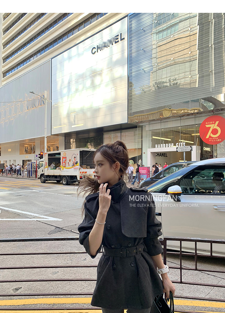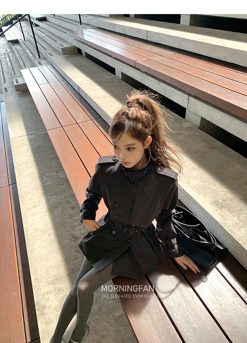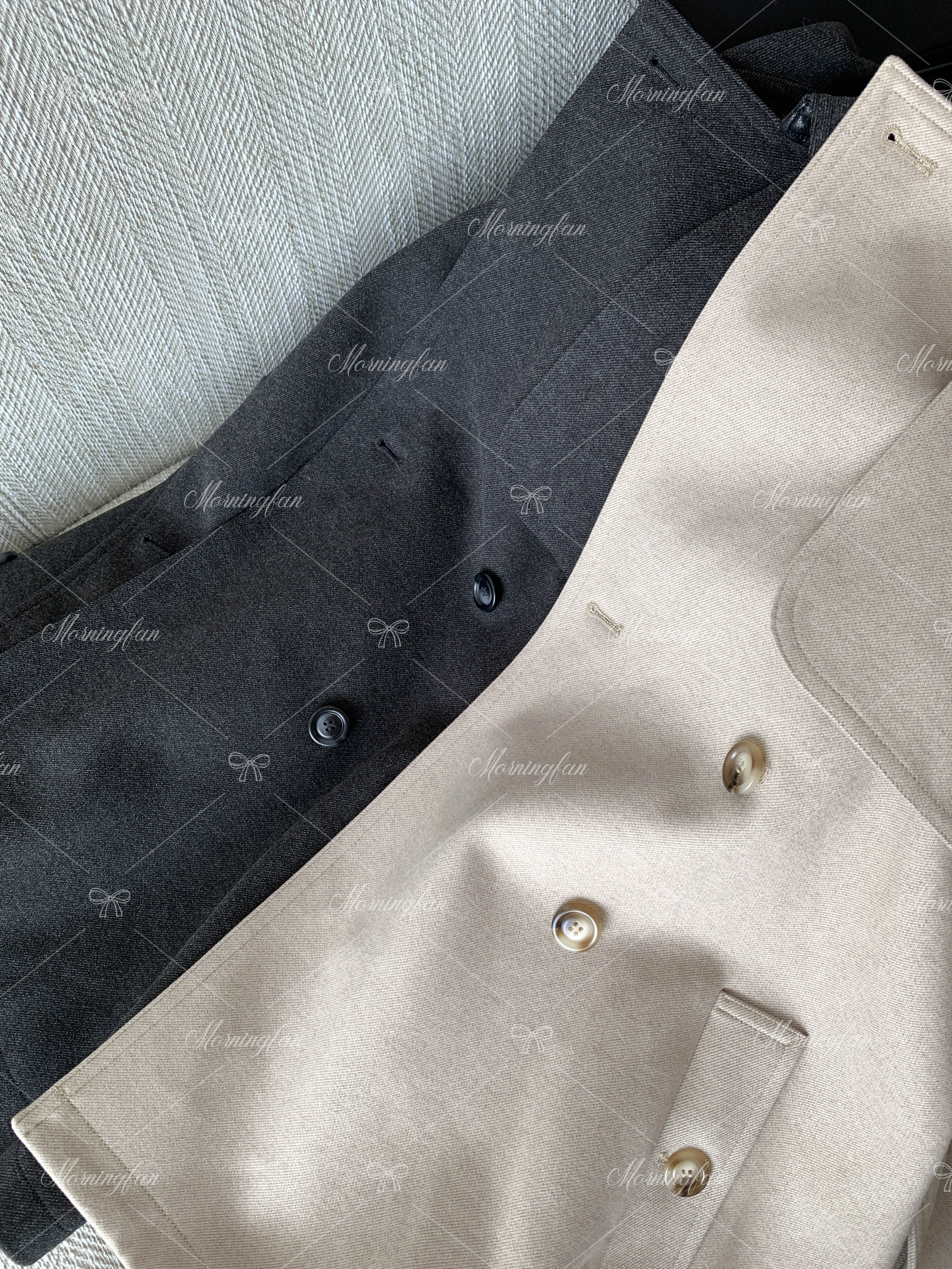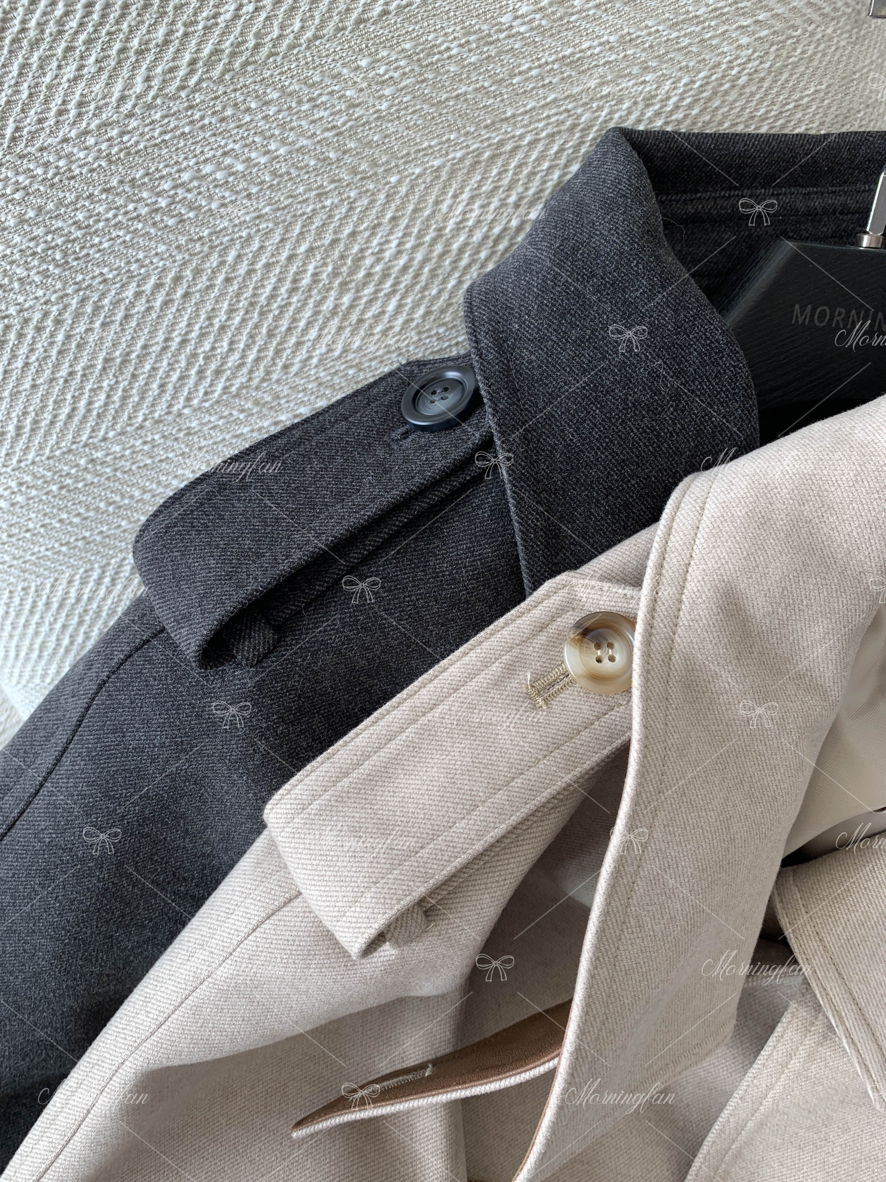 单侧胸前加了挡片 这个设计经常在风衣上见到 时髦又有造型