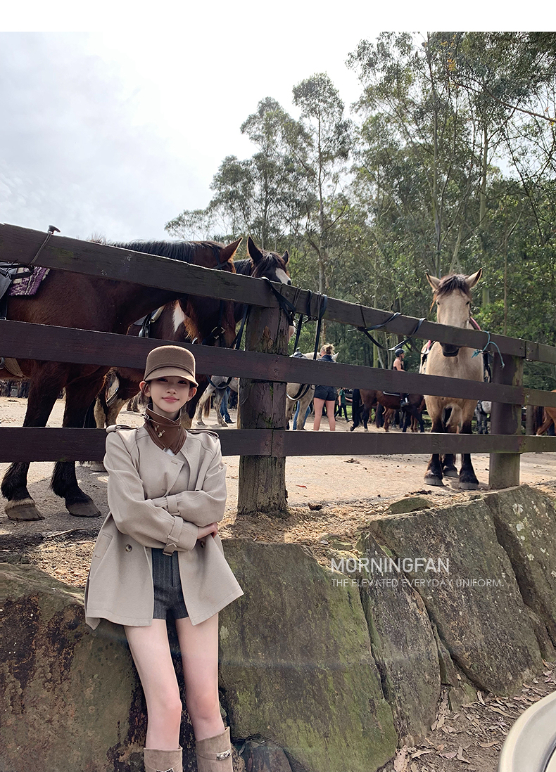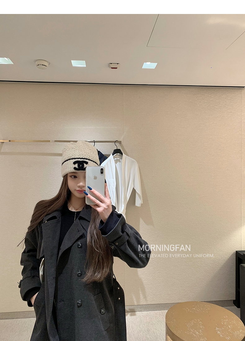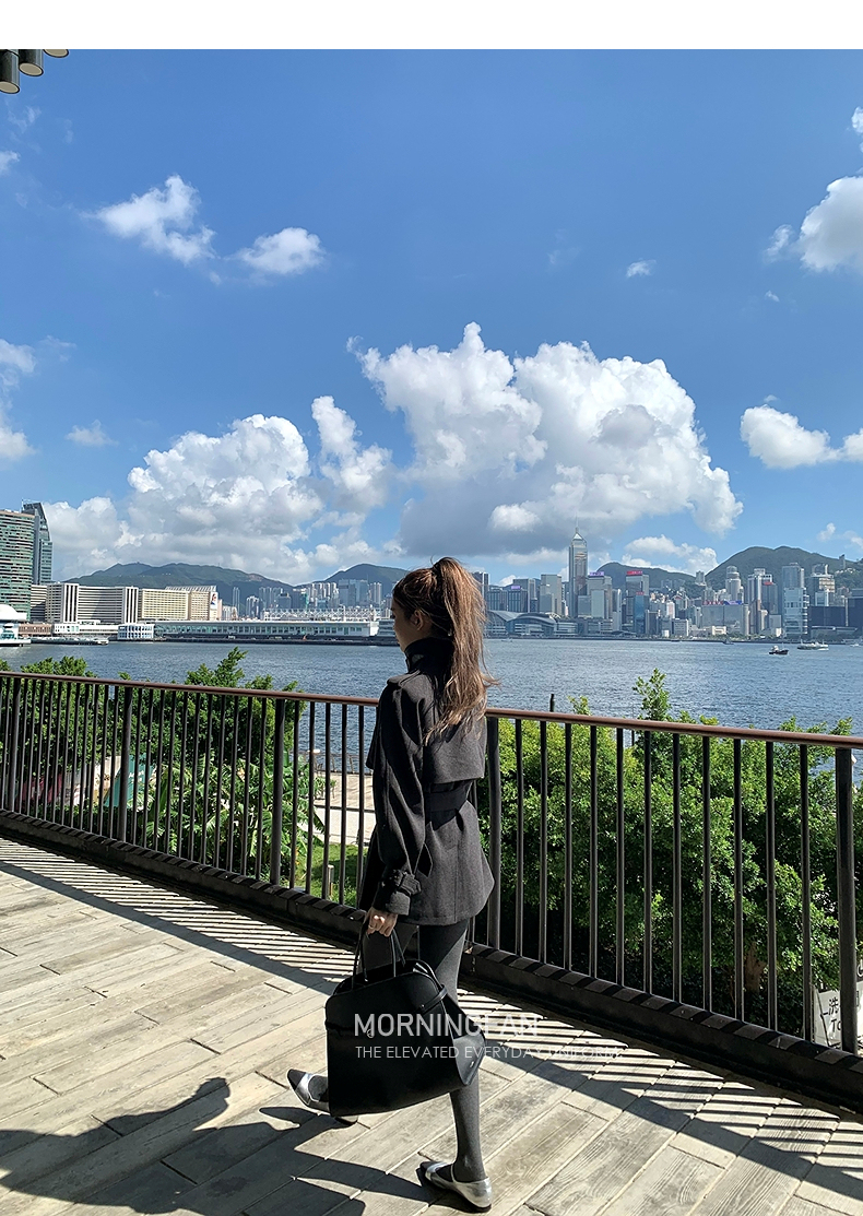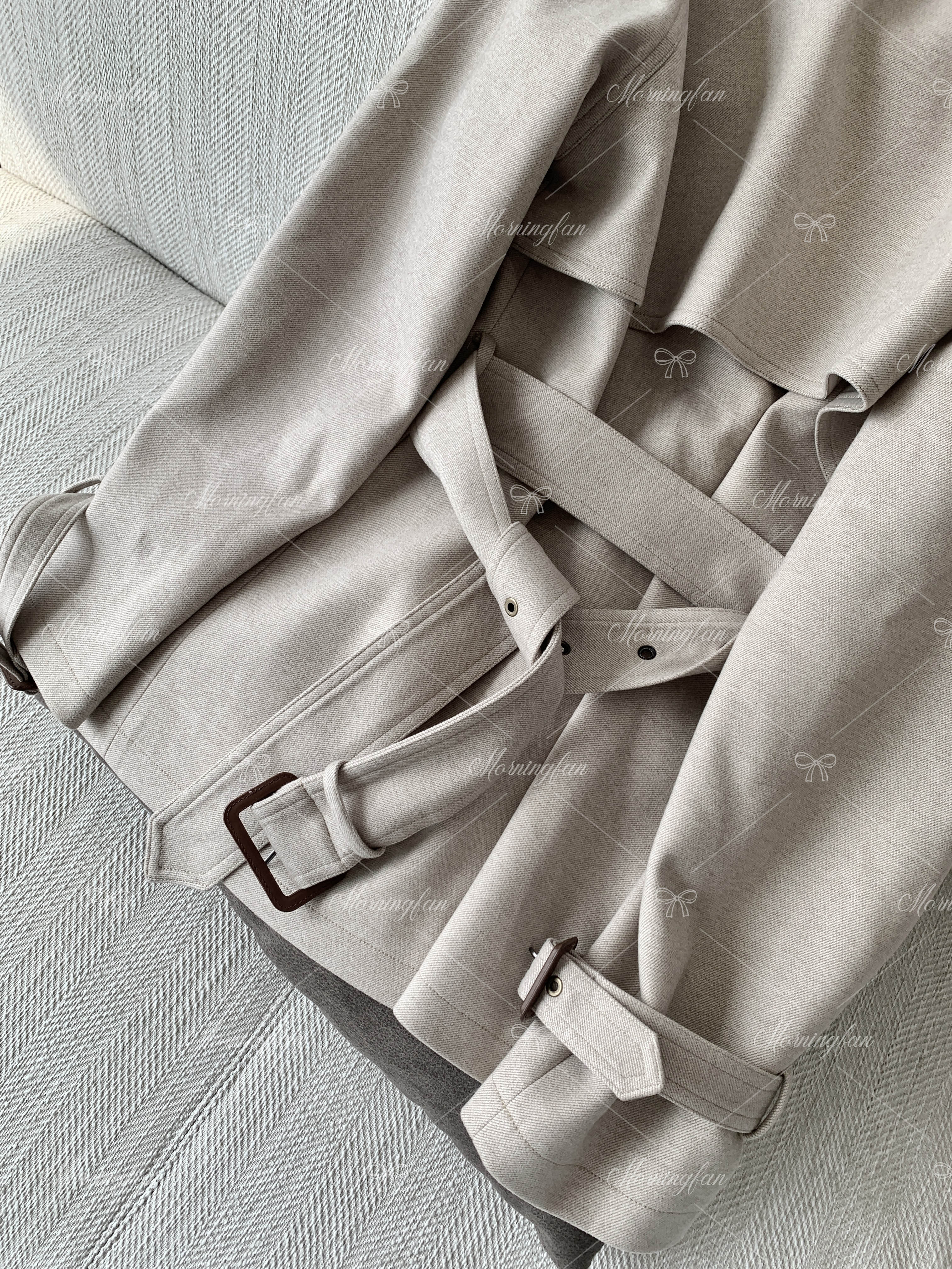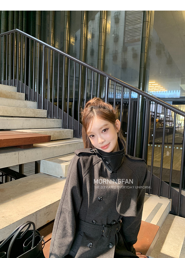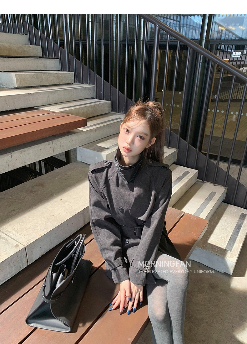 单侧胸前加了挡片 这个设计经常在风衣上见到 时髦又有造型