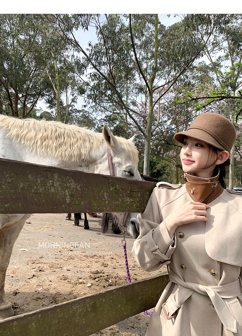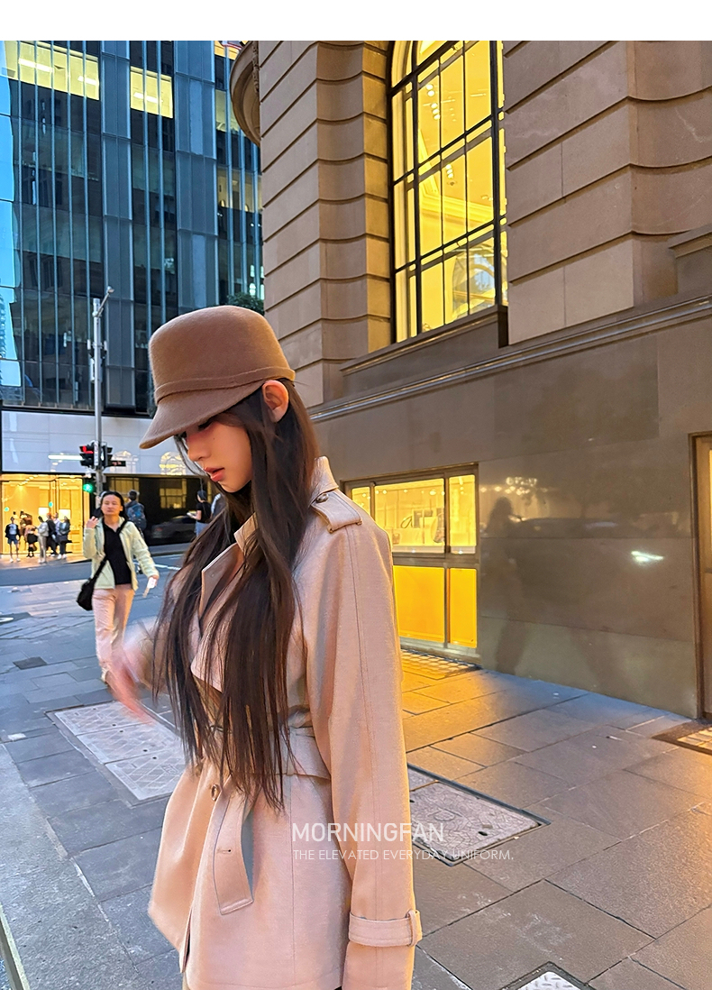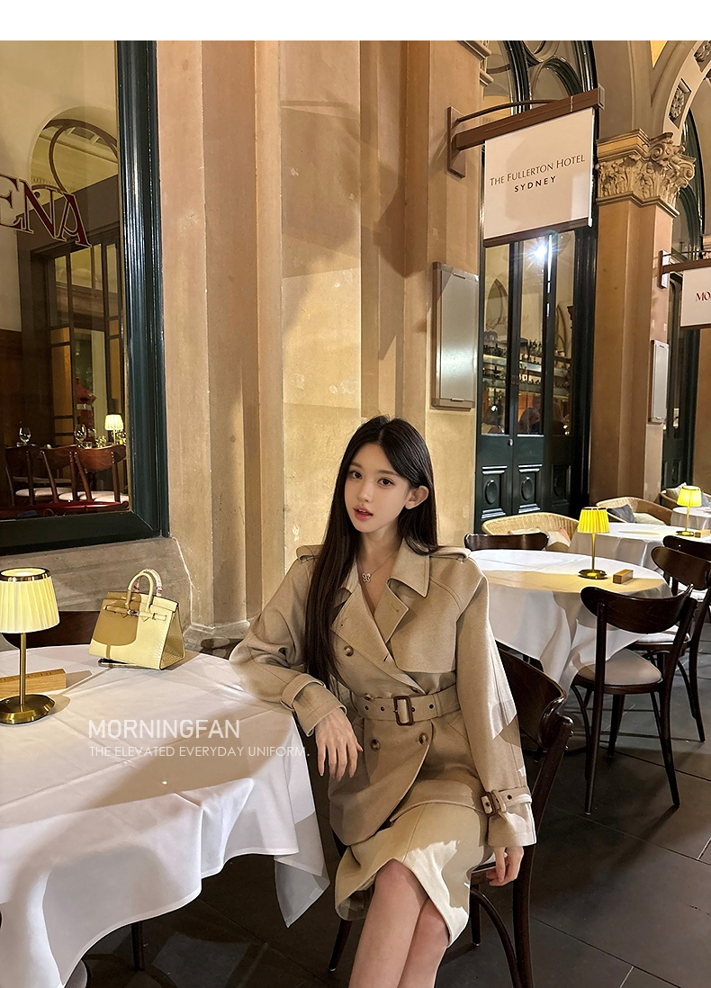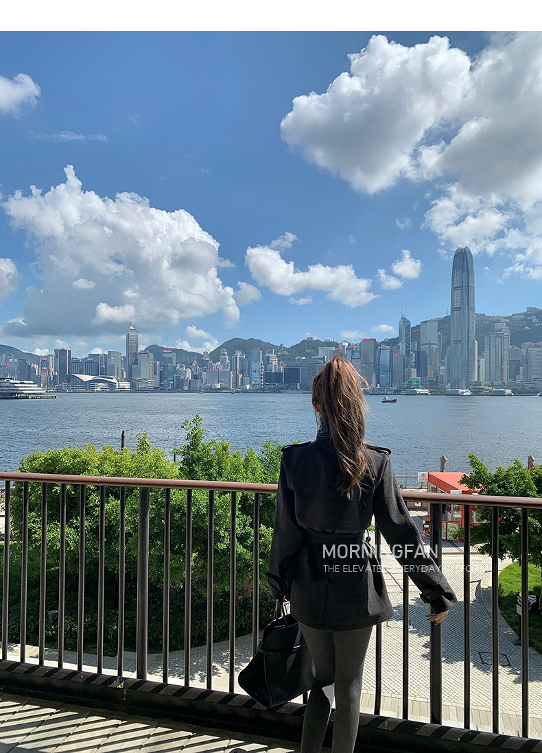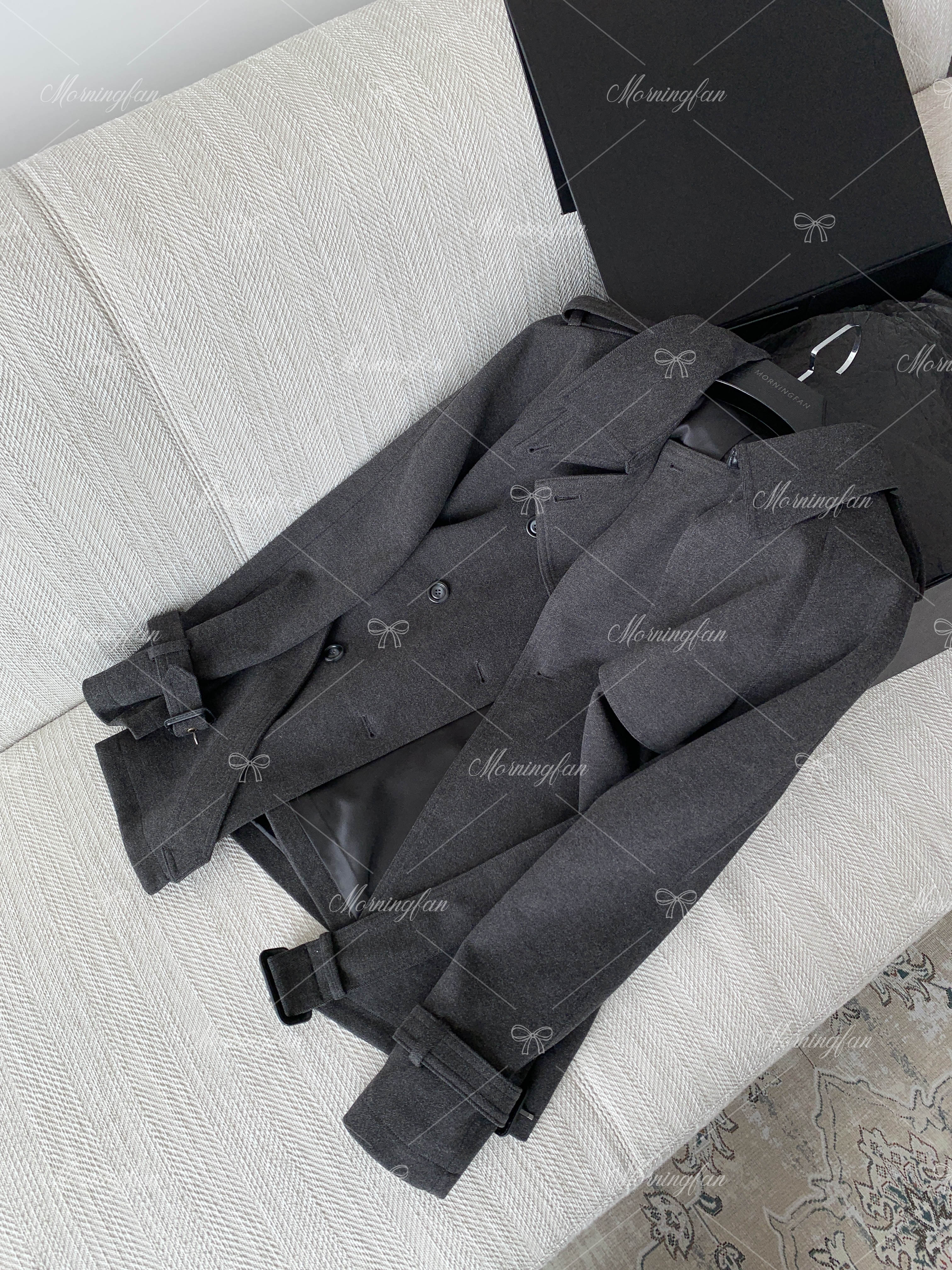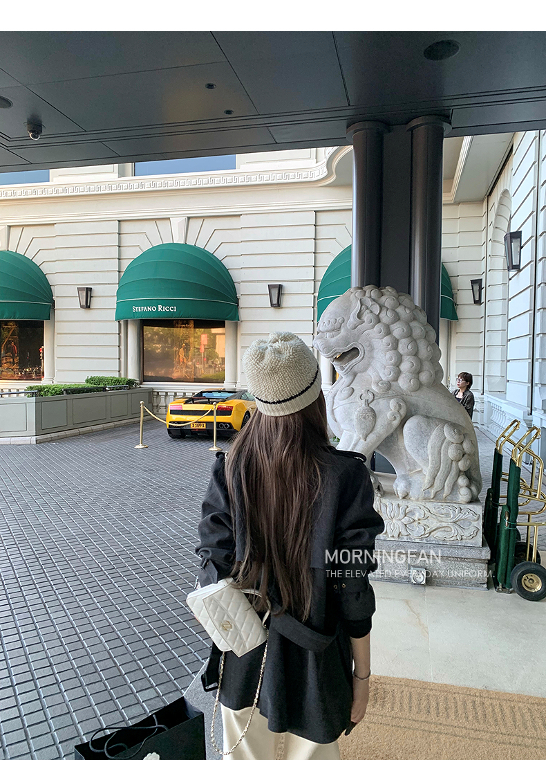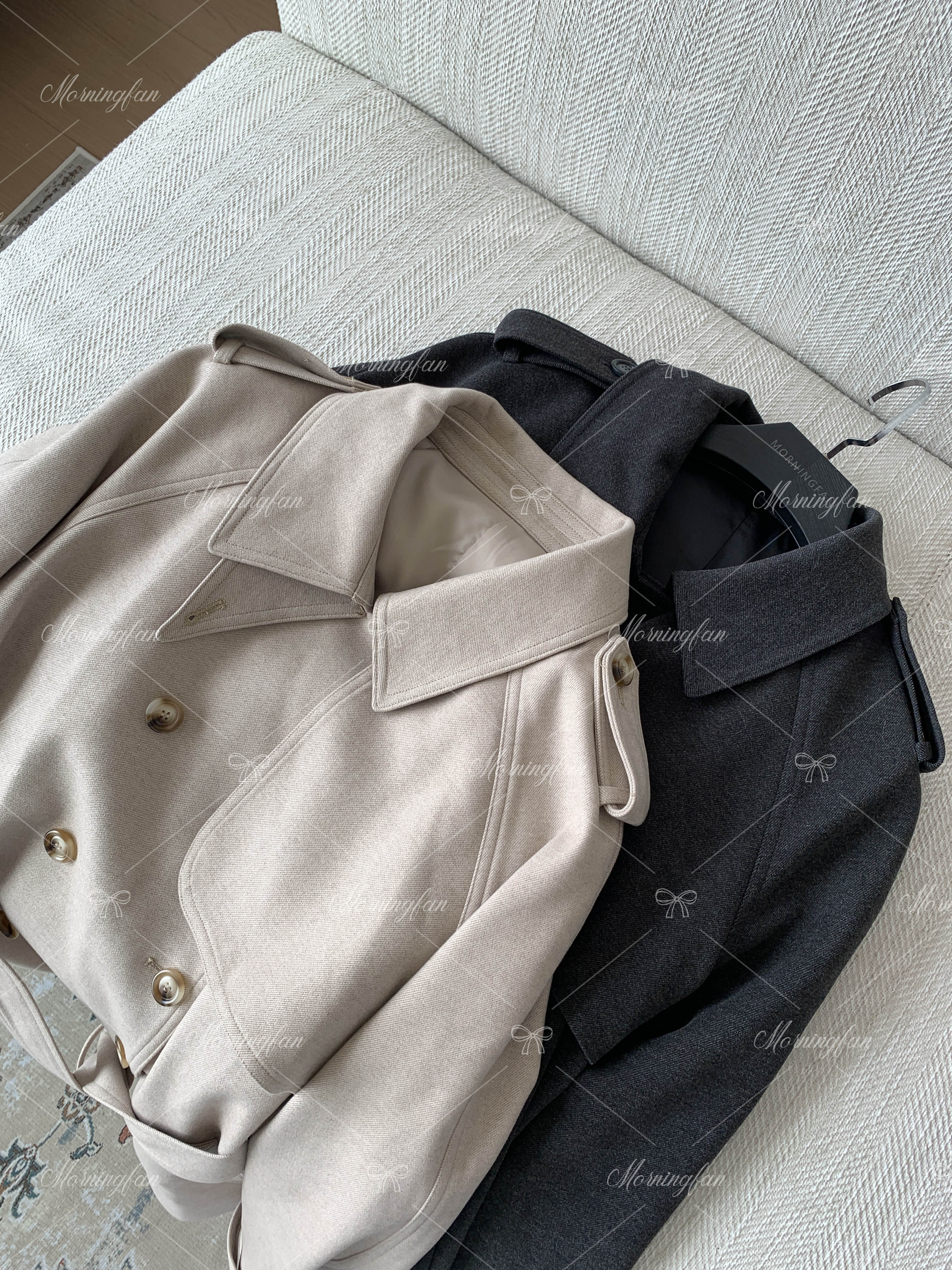单侧胸前加了挡片 这个设计经常在风衣上见到 时髦又有造型