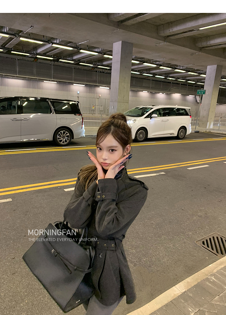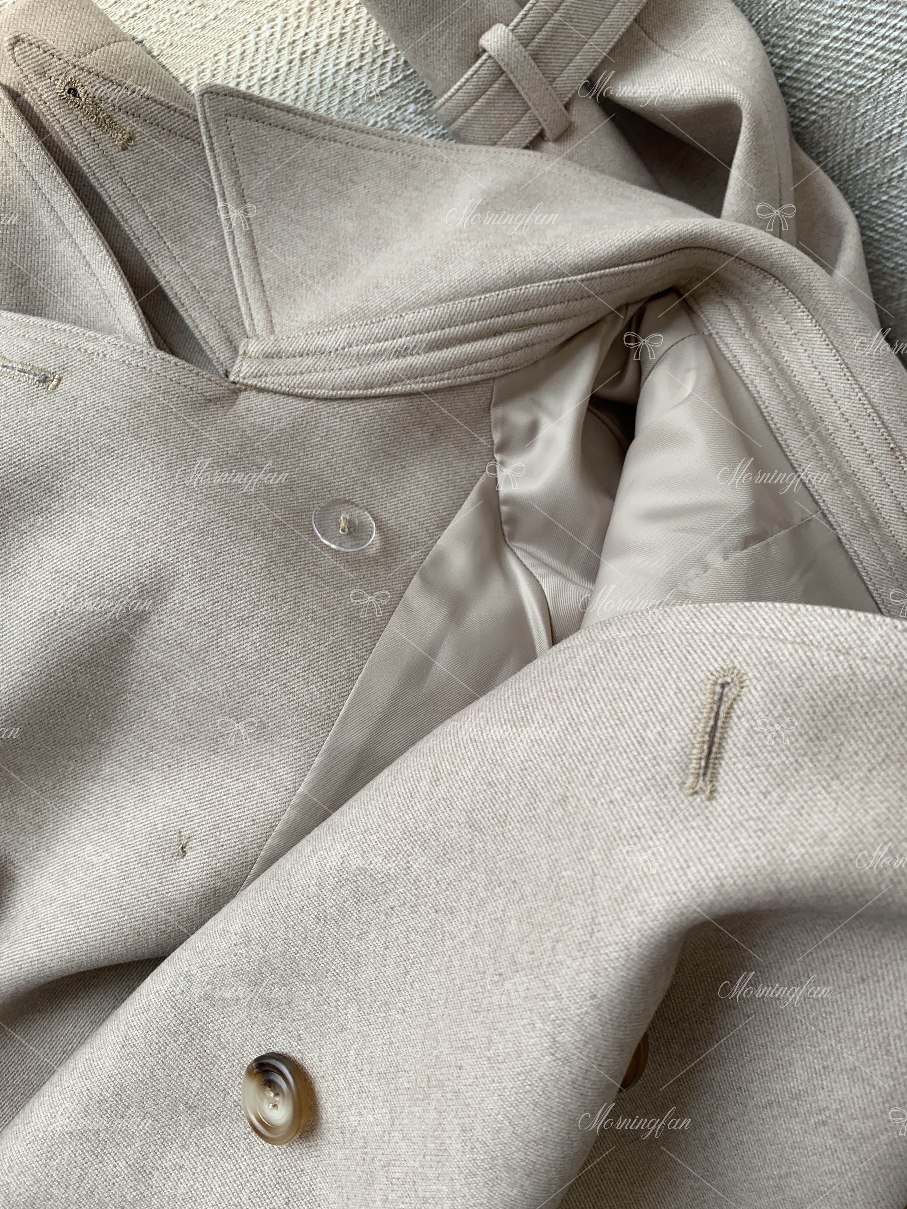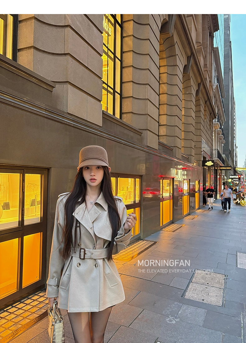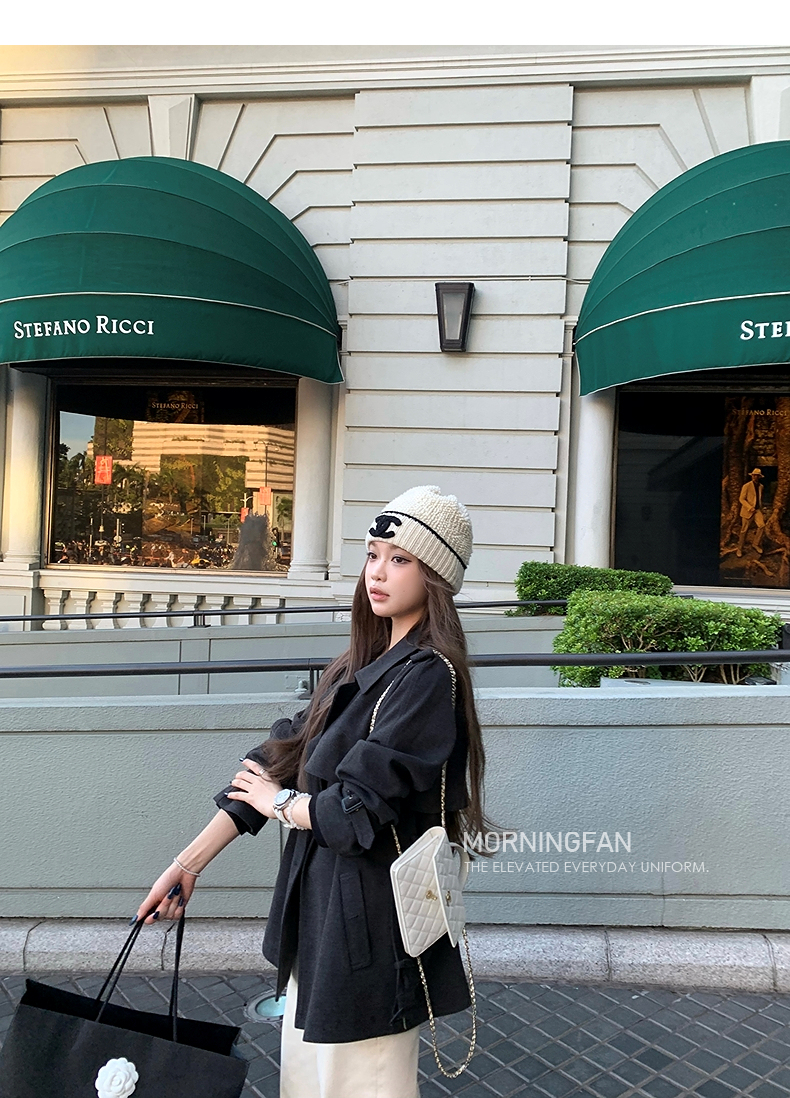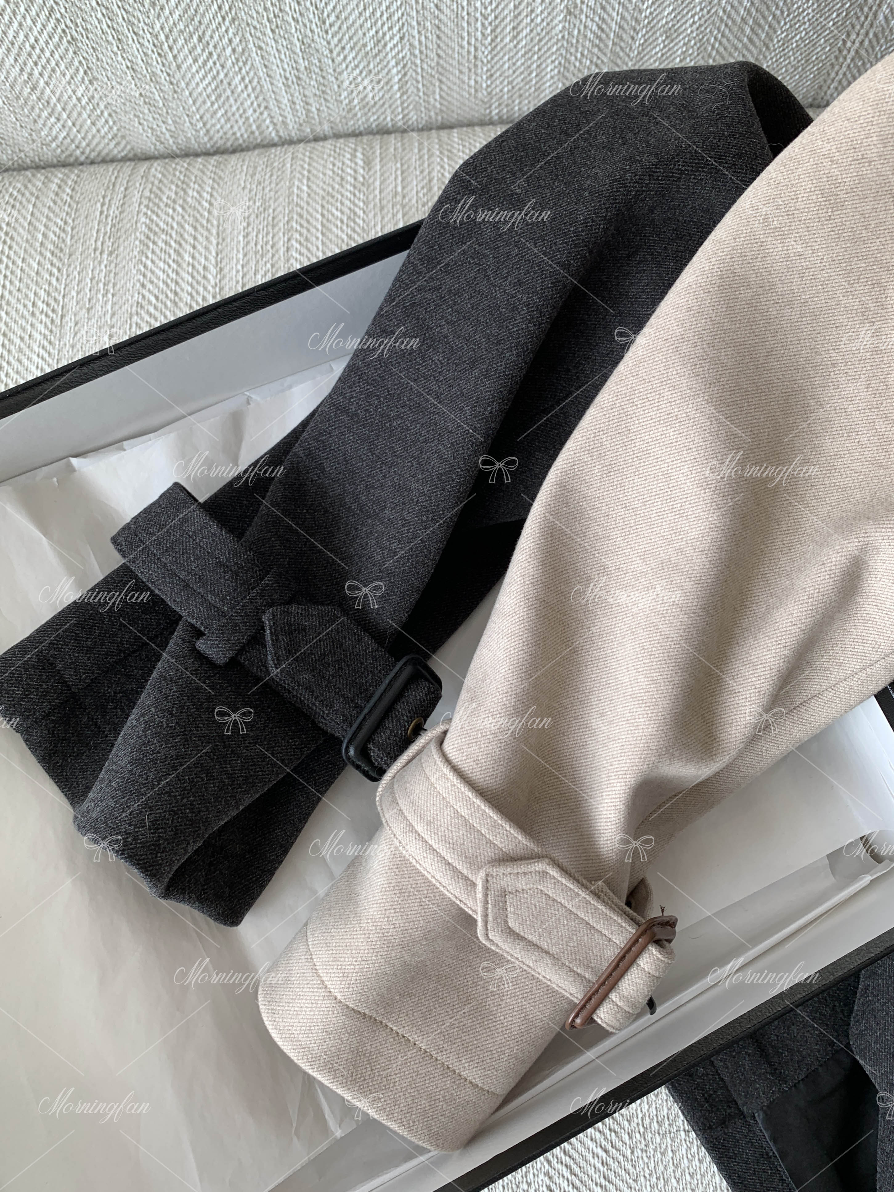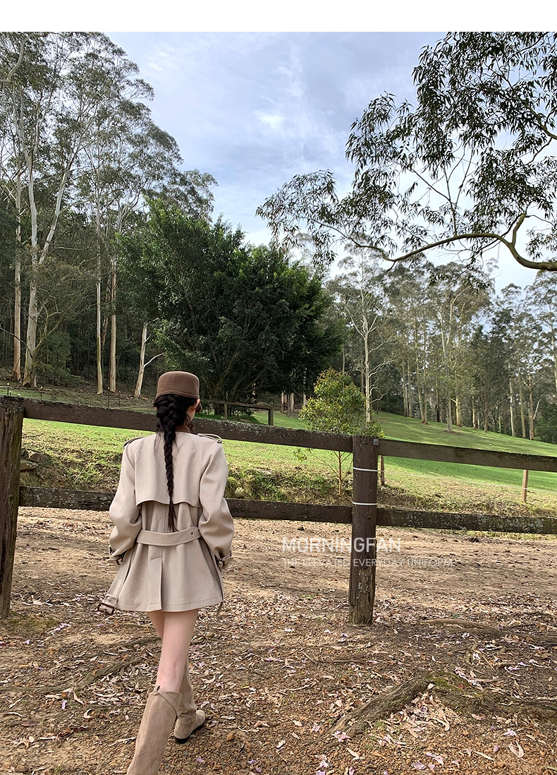 单侧胸前加了挡片 这个设计经常在风衣上见到 时髦又有造型