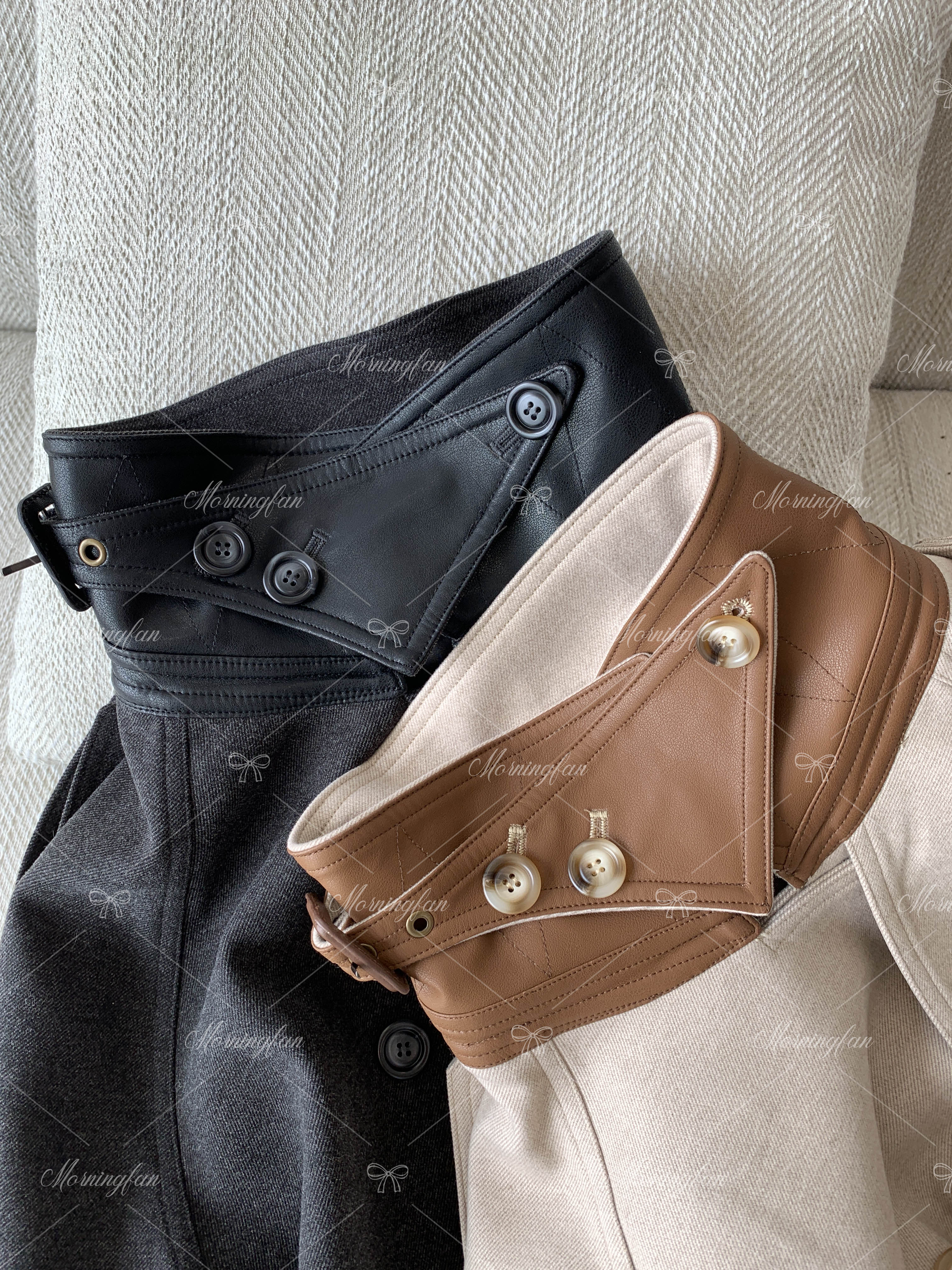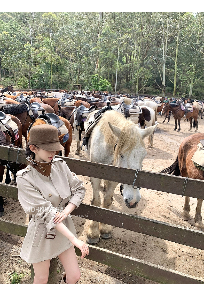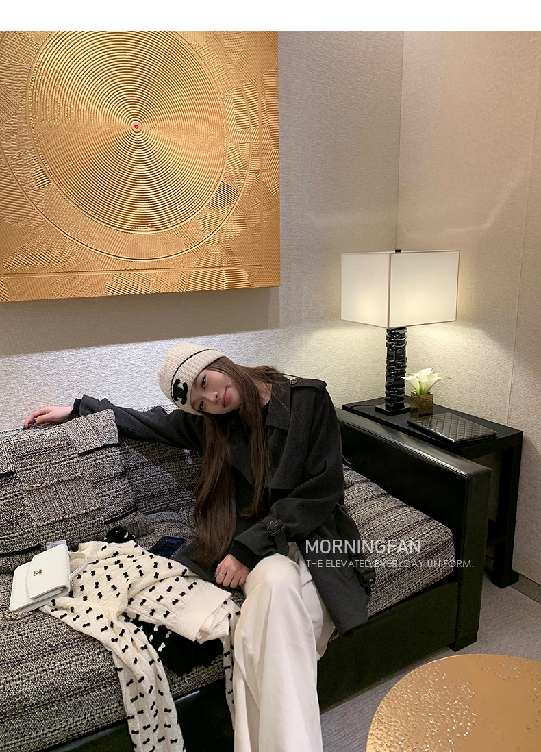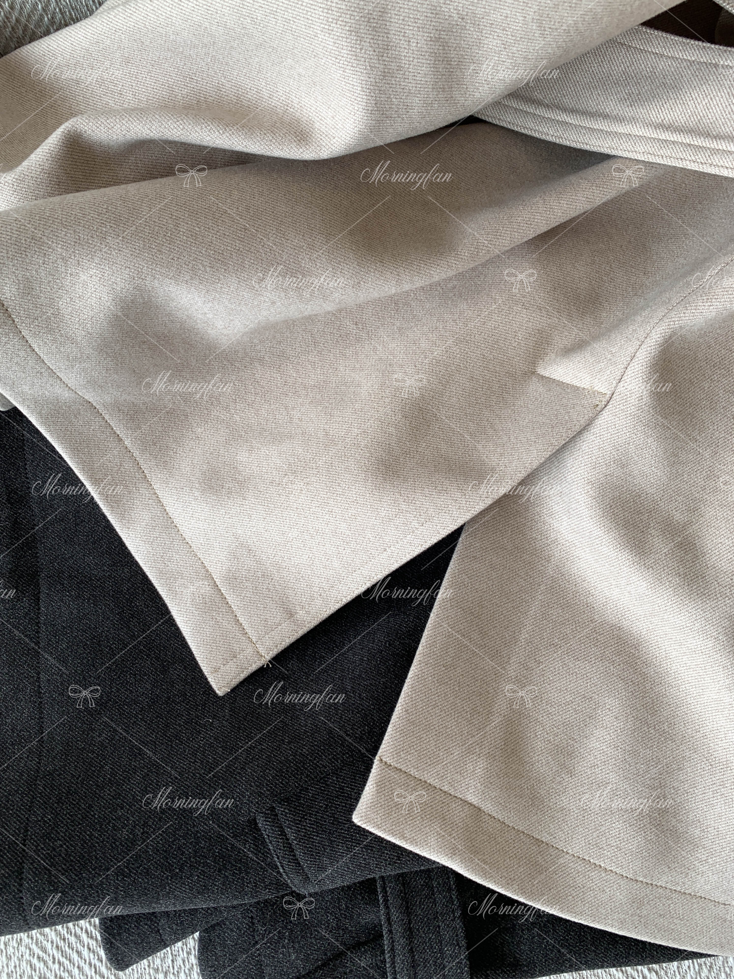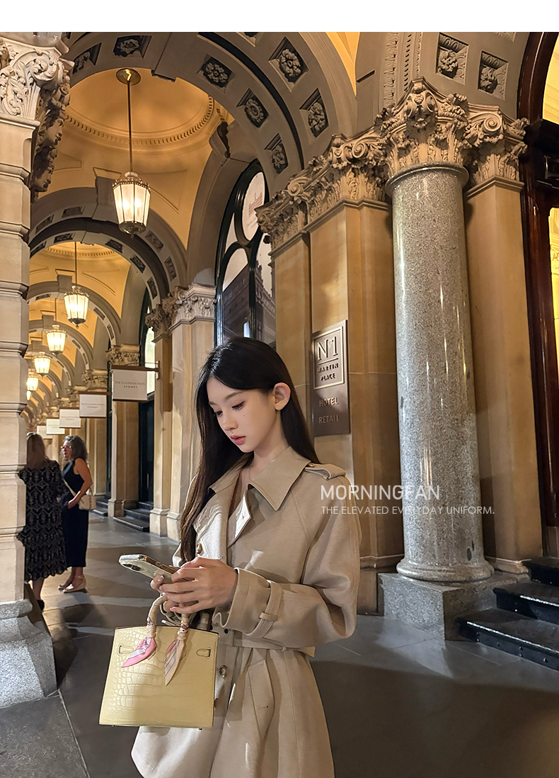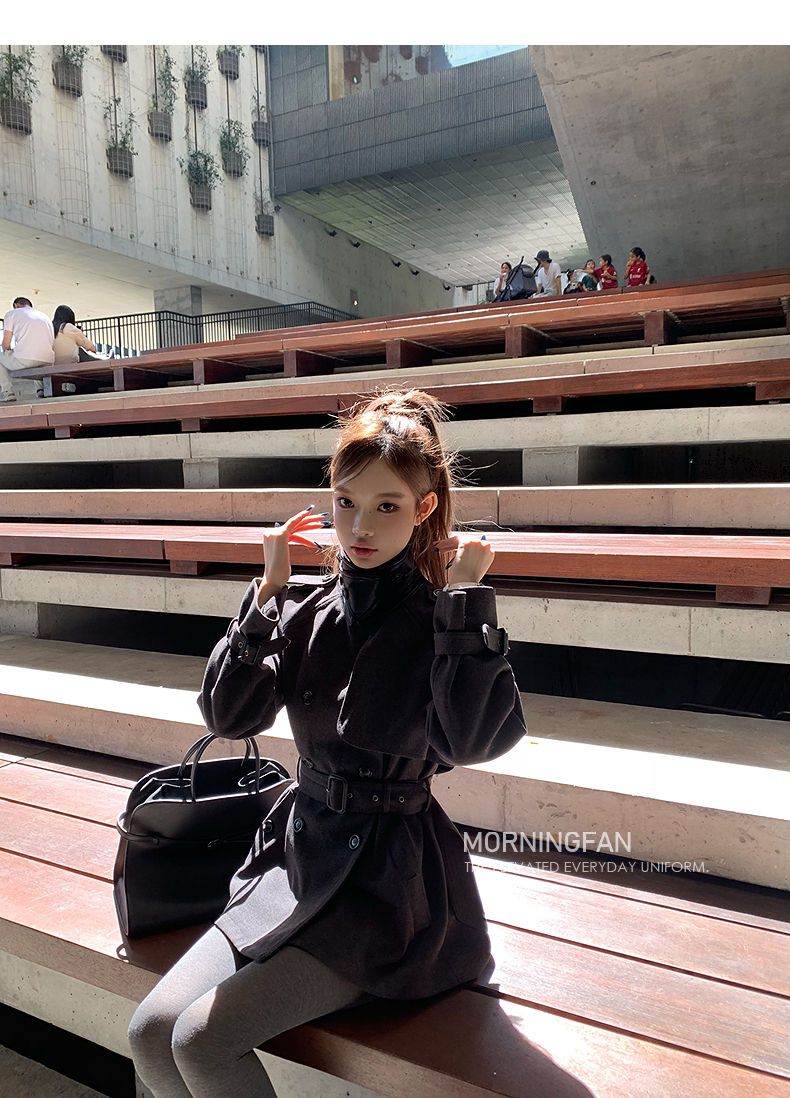 单侧胸前加了挡片 这个设计经常在风衣上见到 时髦又有造型