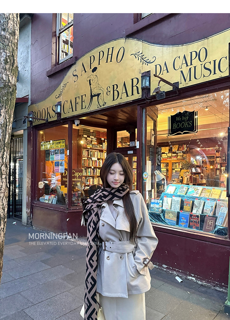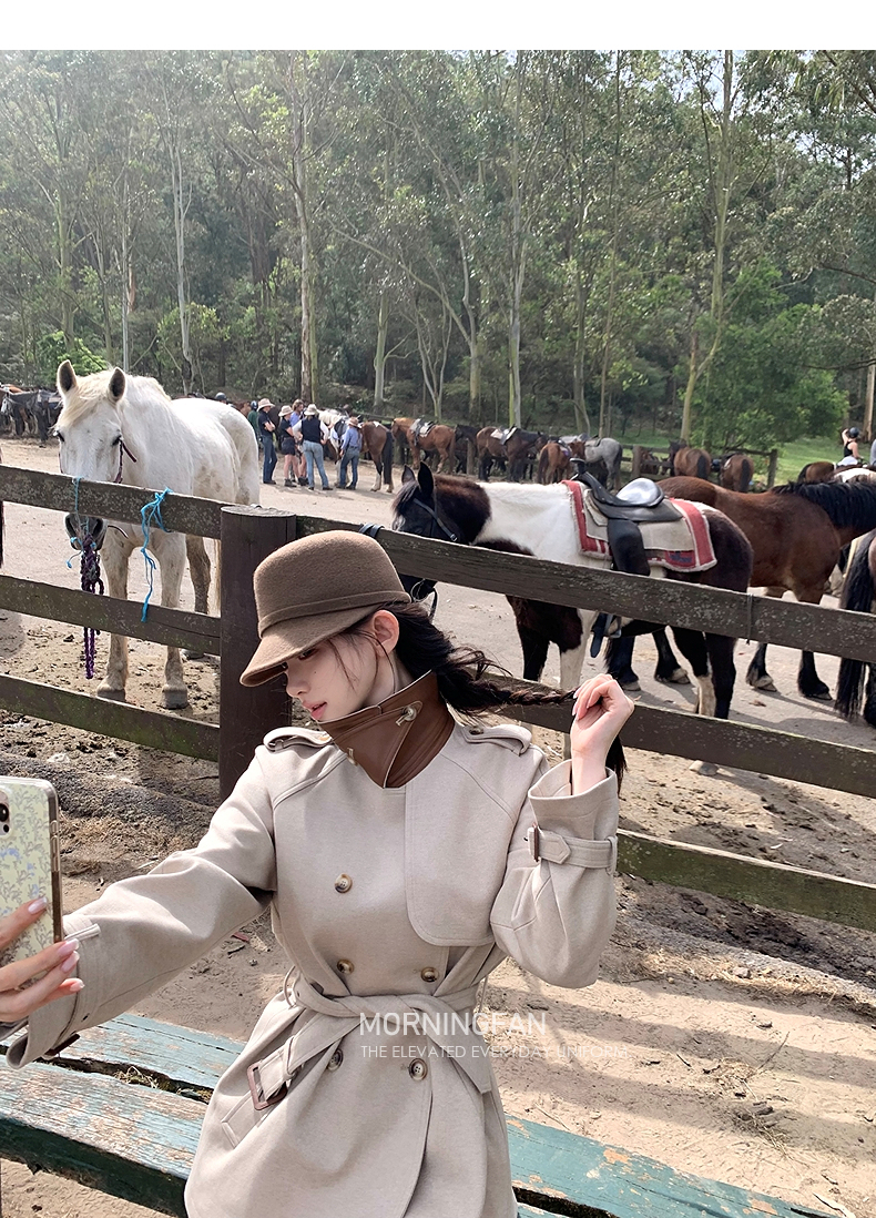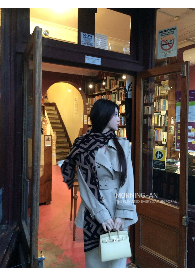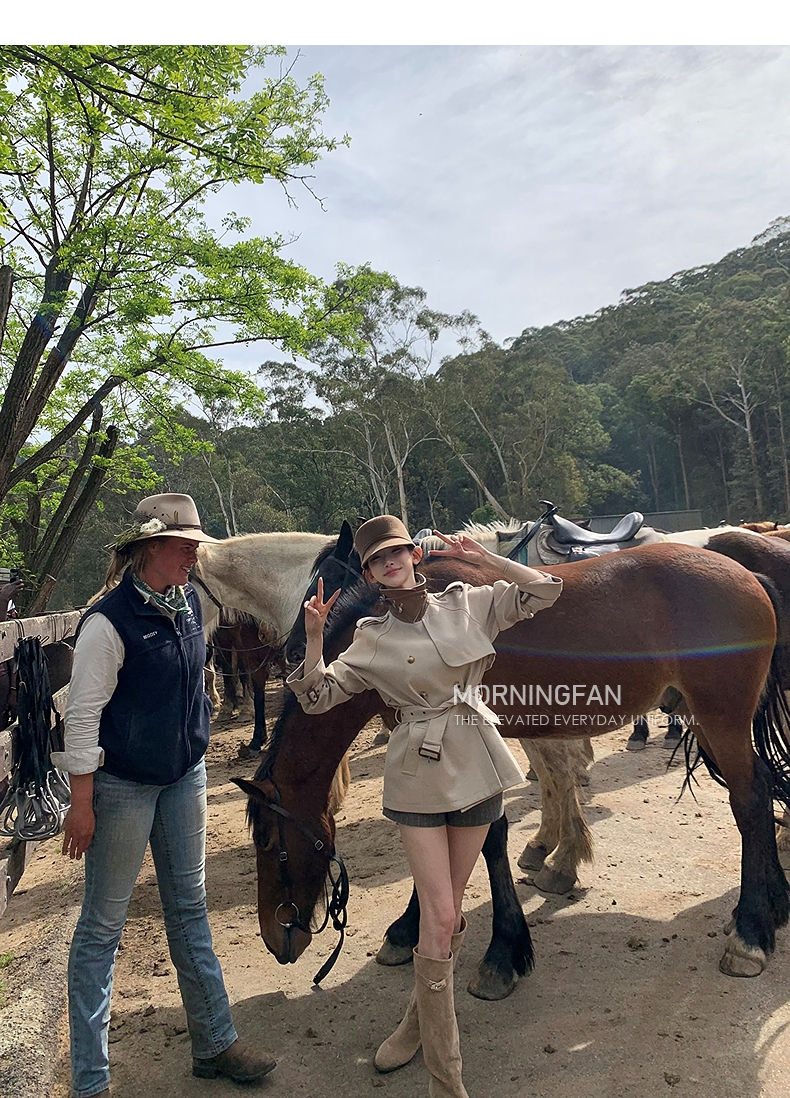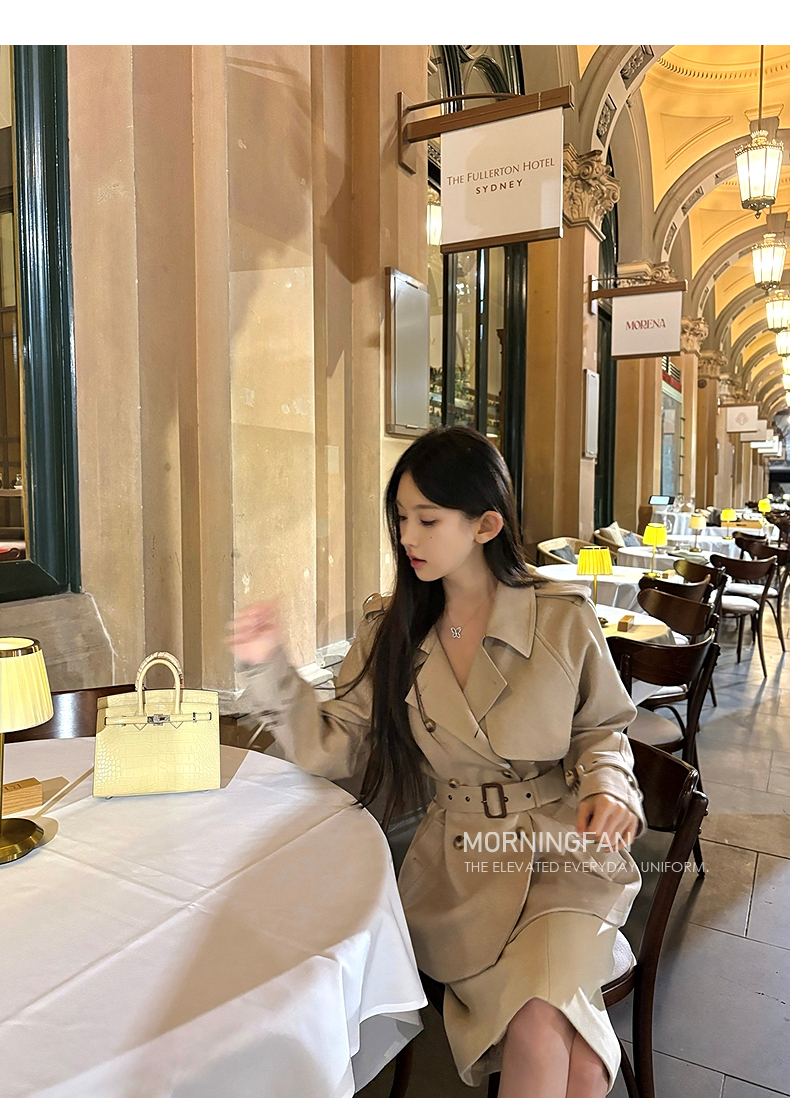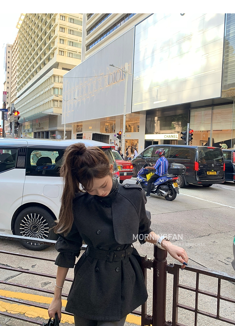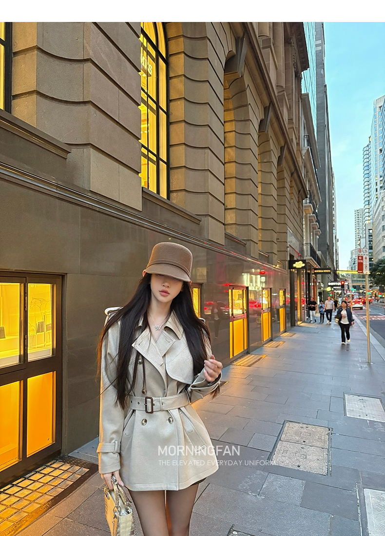 单侧胸前加了挡片 这个设计经常在风衣上见到 时髦又有造型