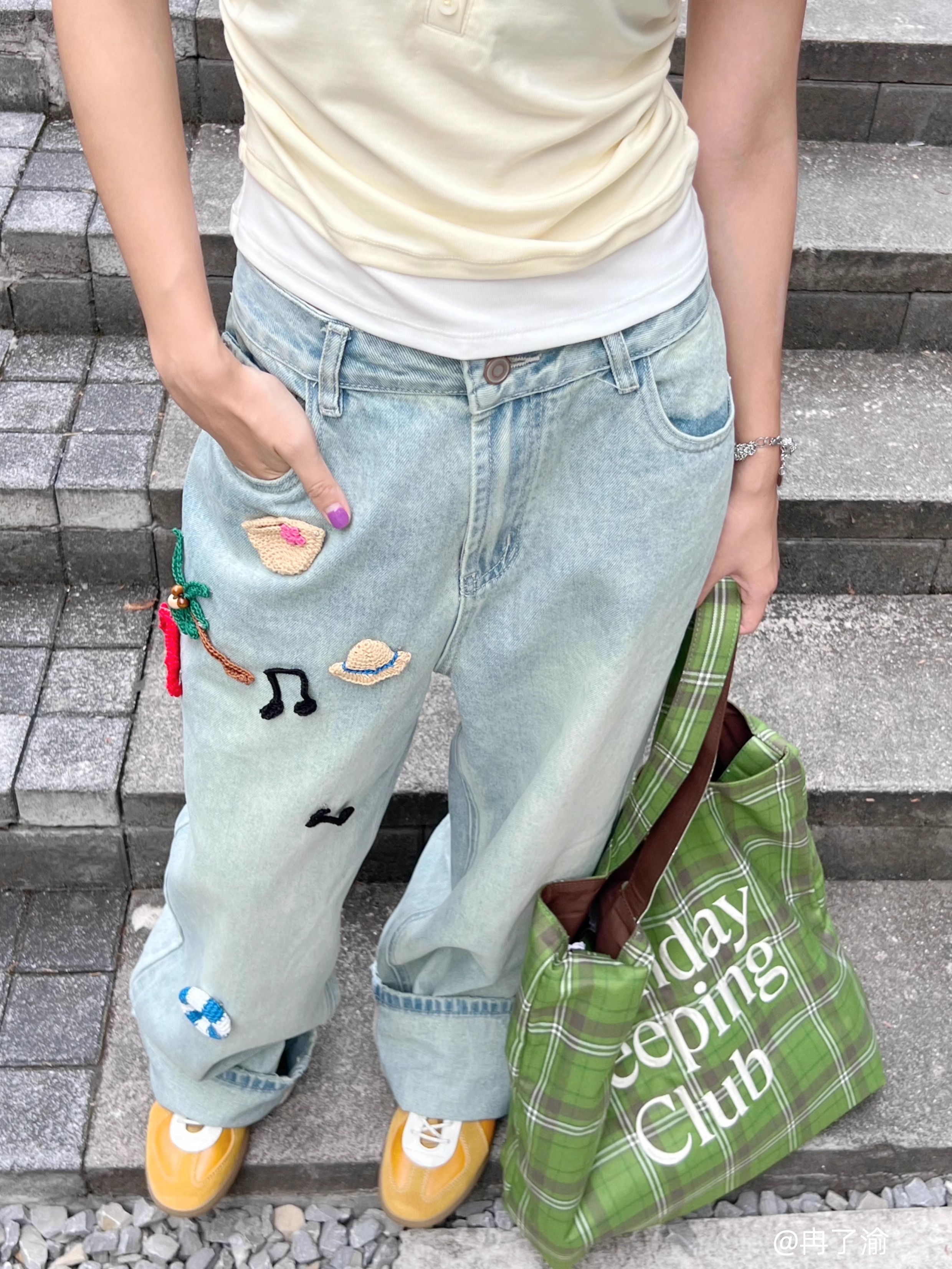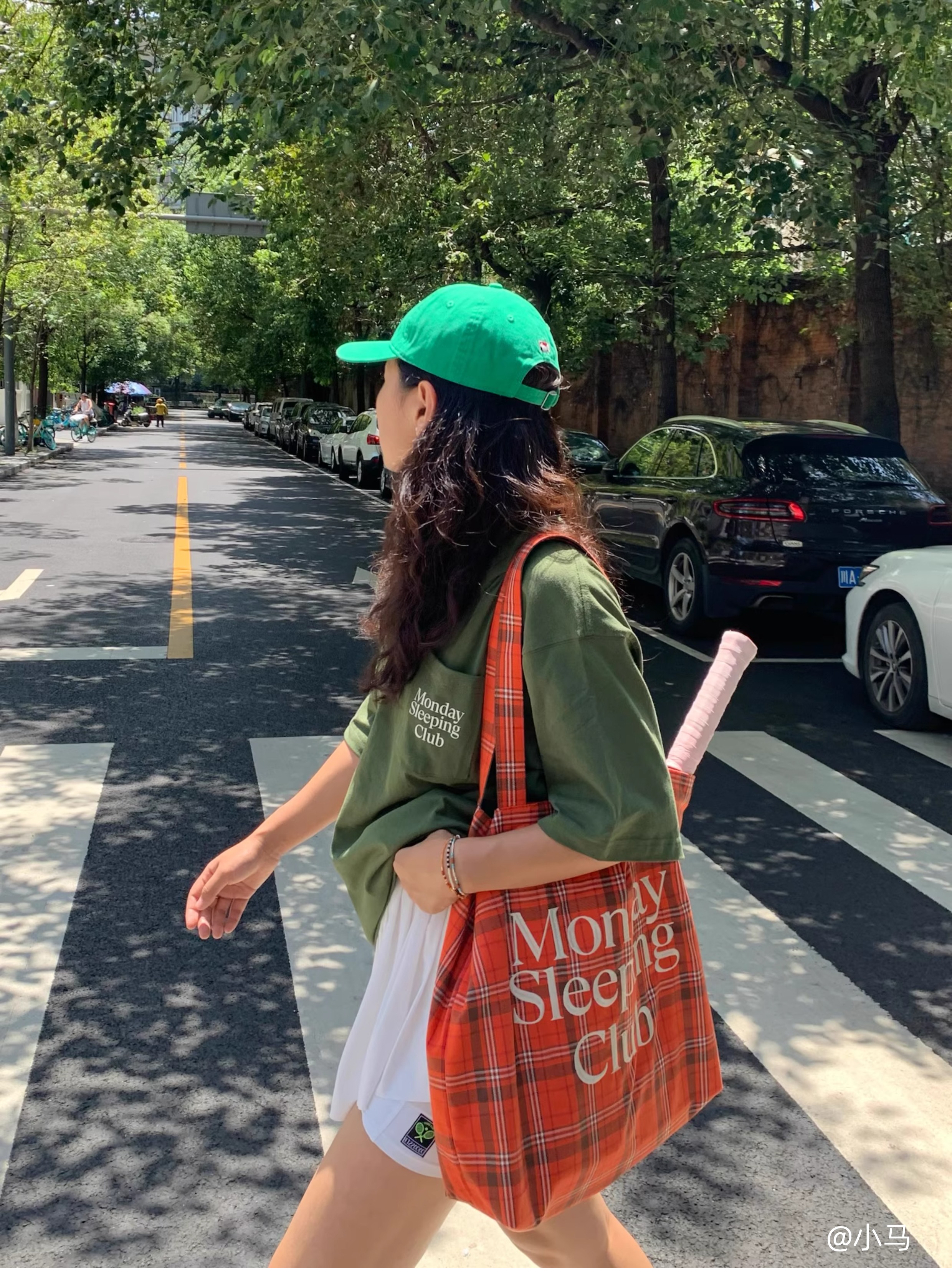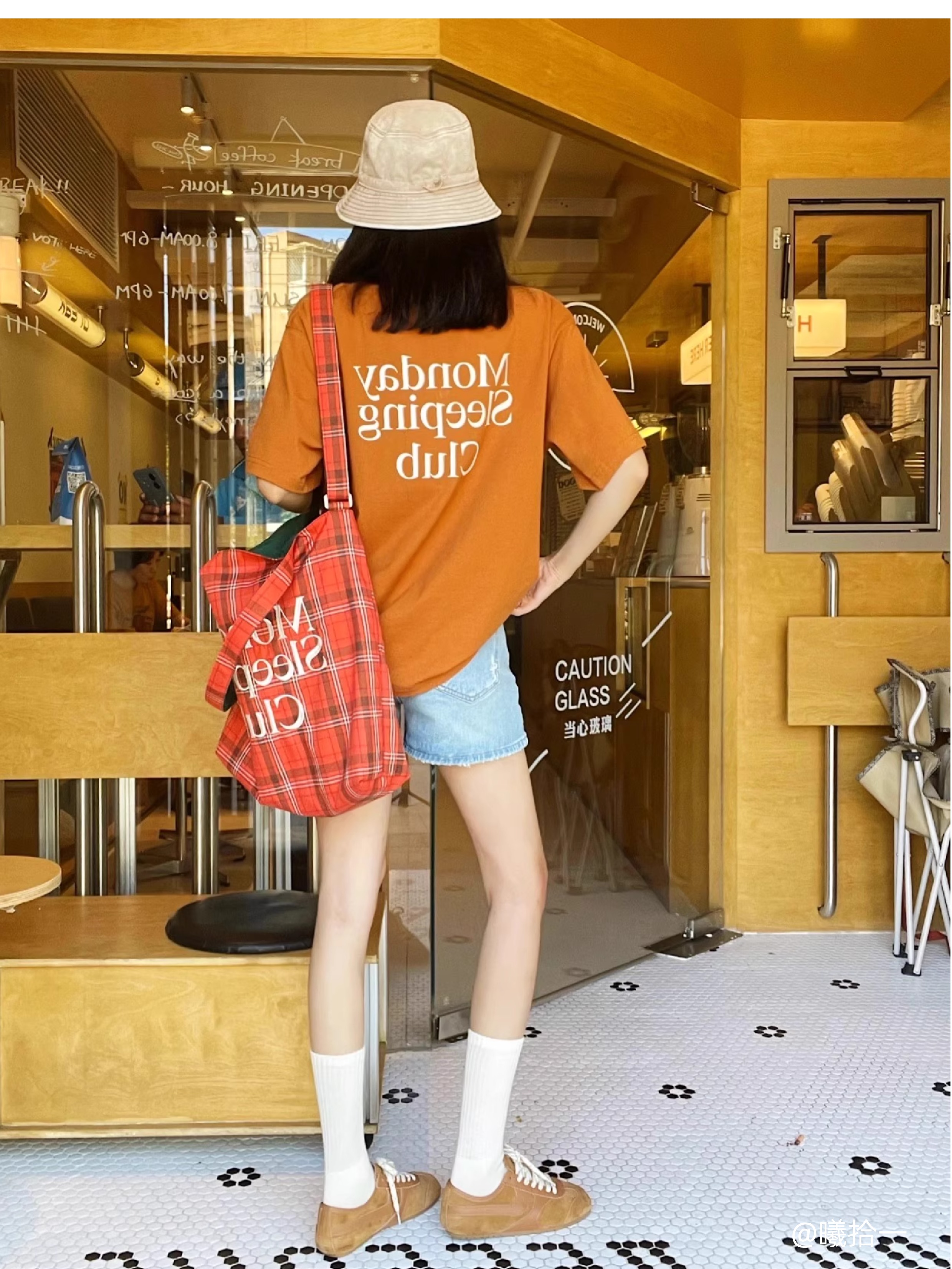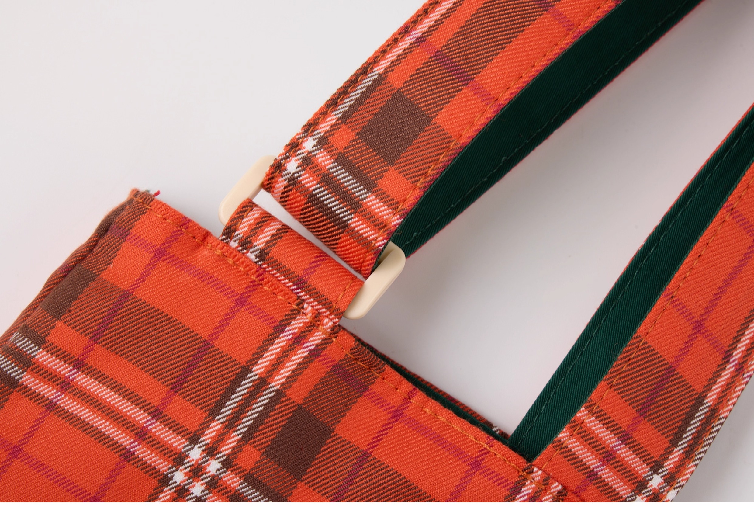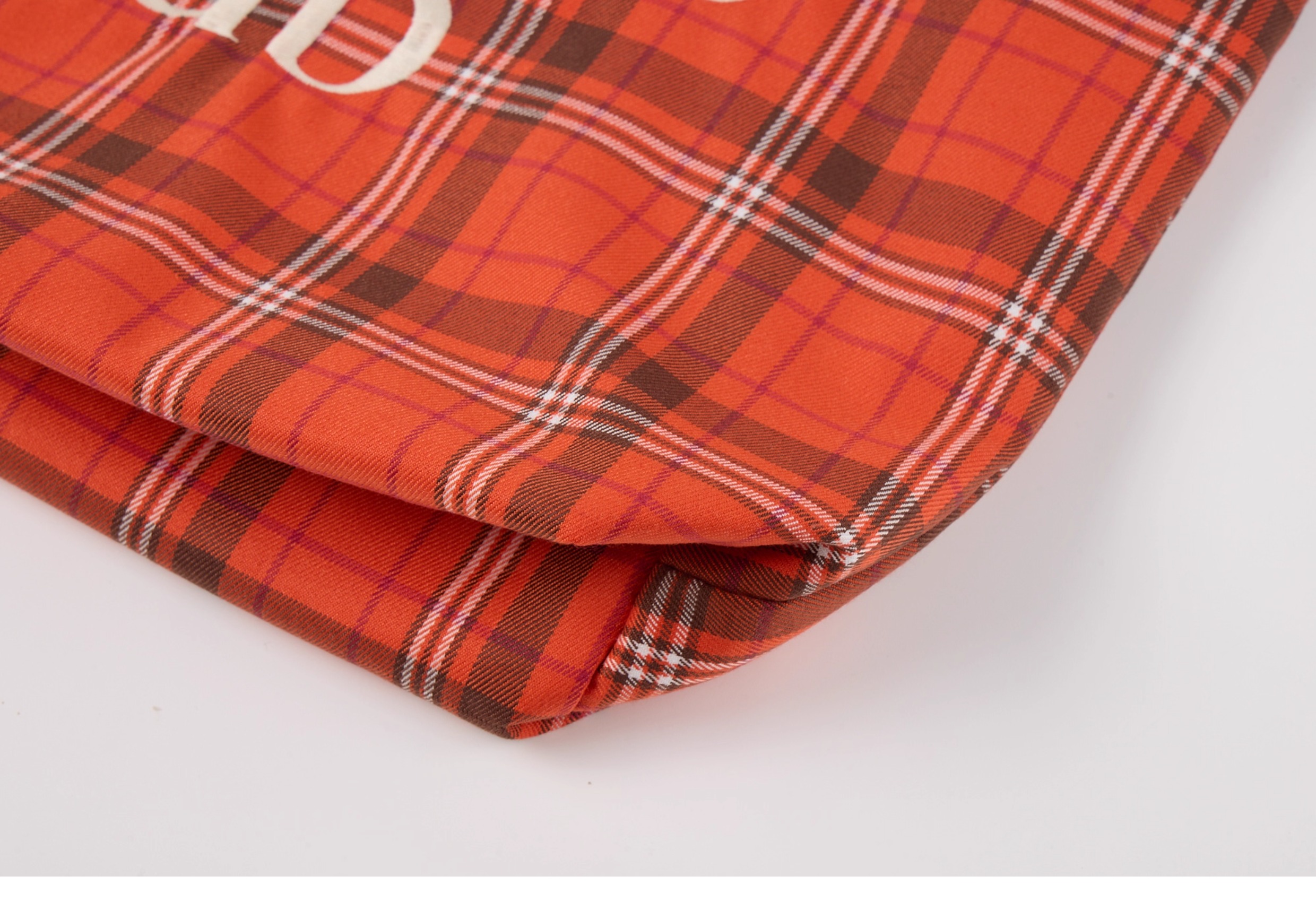 Mondaysleepingclub Standard Font Embroidered Plaid Contrast Tote Bag