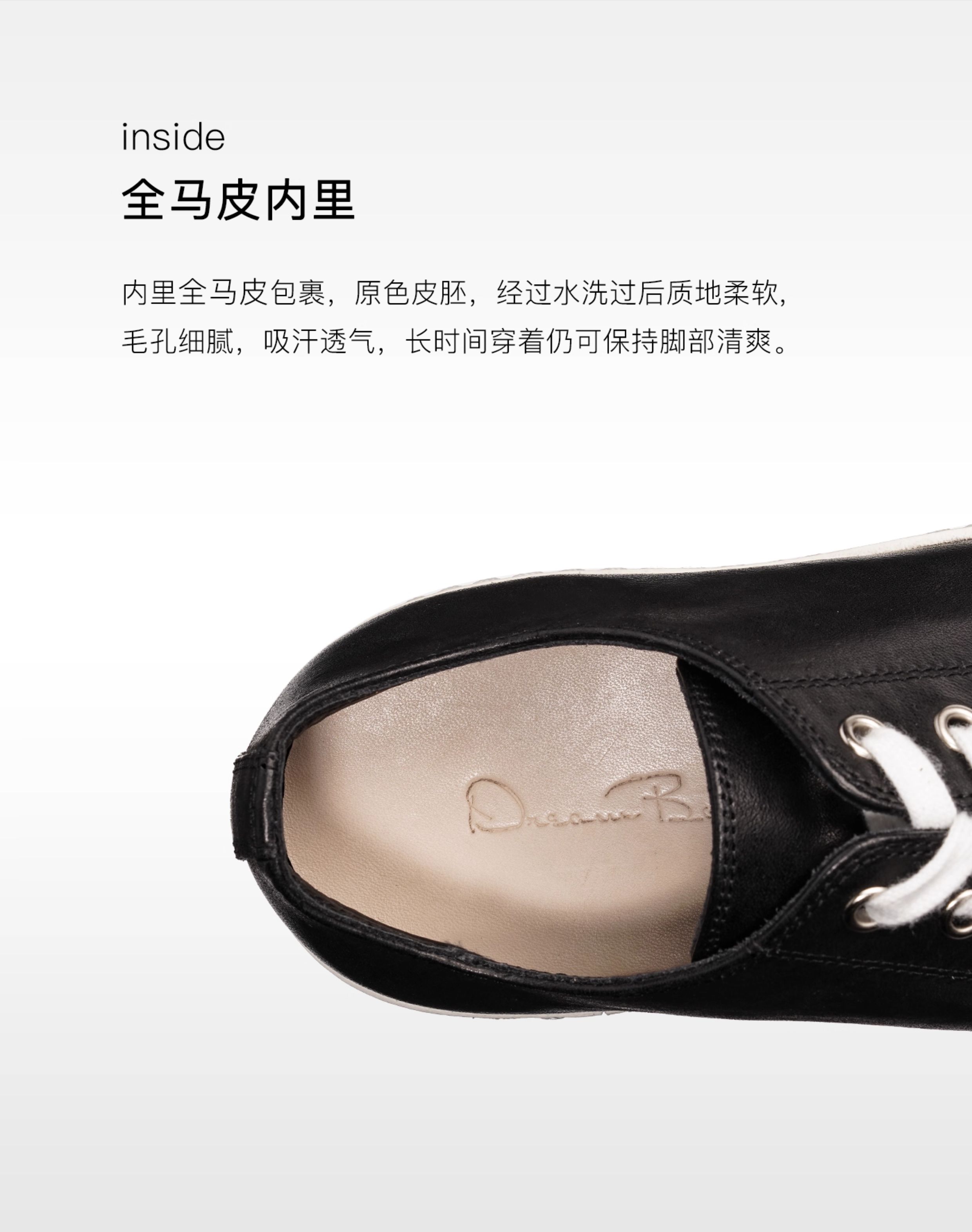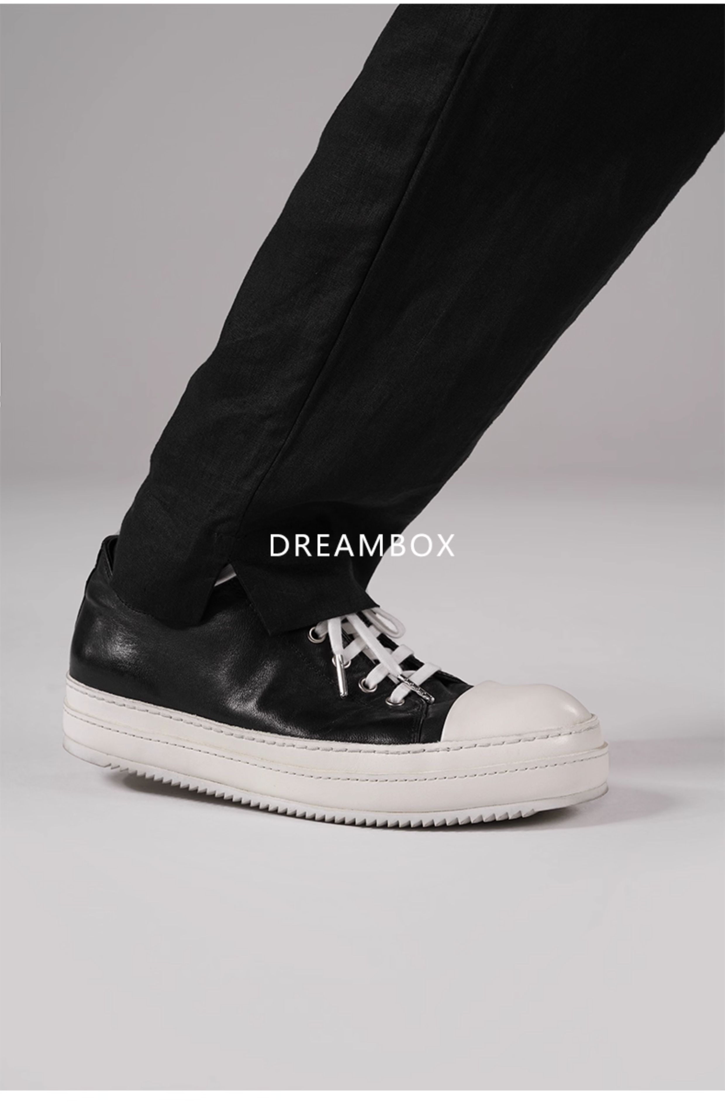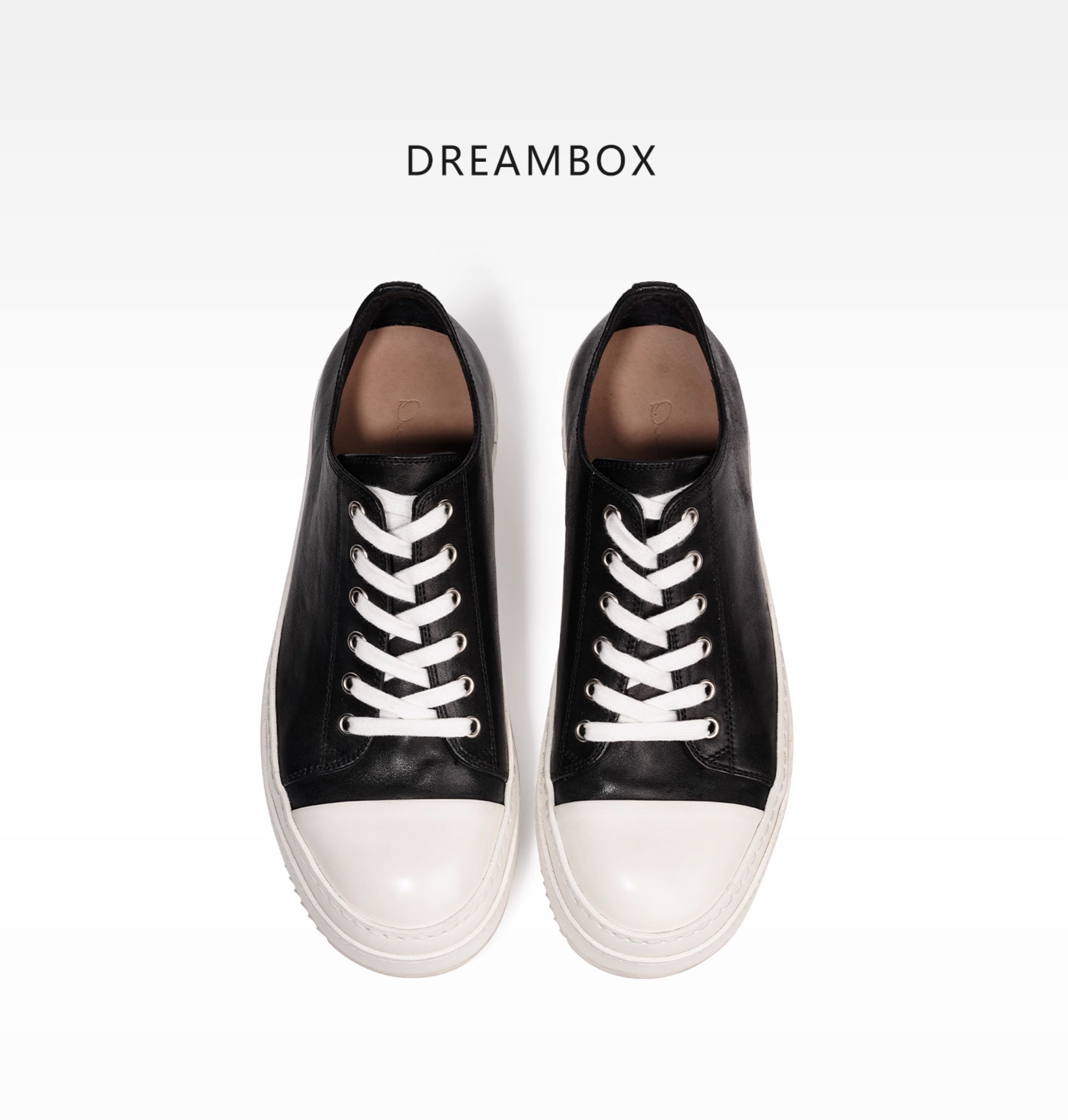 Dreambox Junbo Vibram Washed Horse Leather Casual Sneakers Classy Handmade Thick-Soled Height-Increasing British Style Men's Shoes