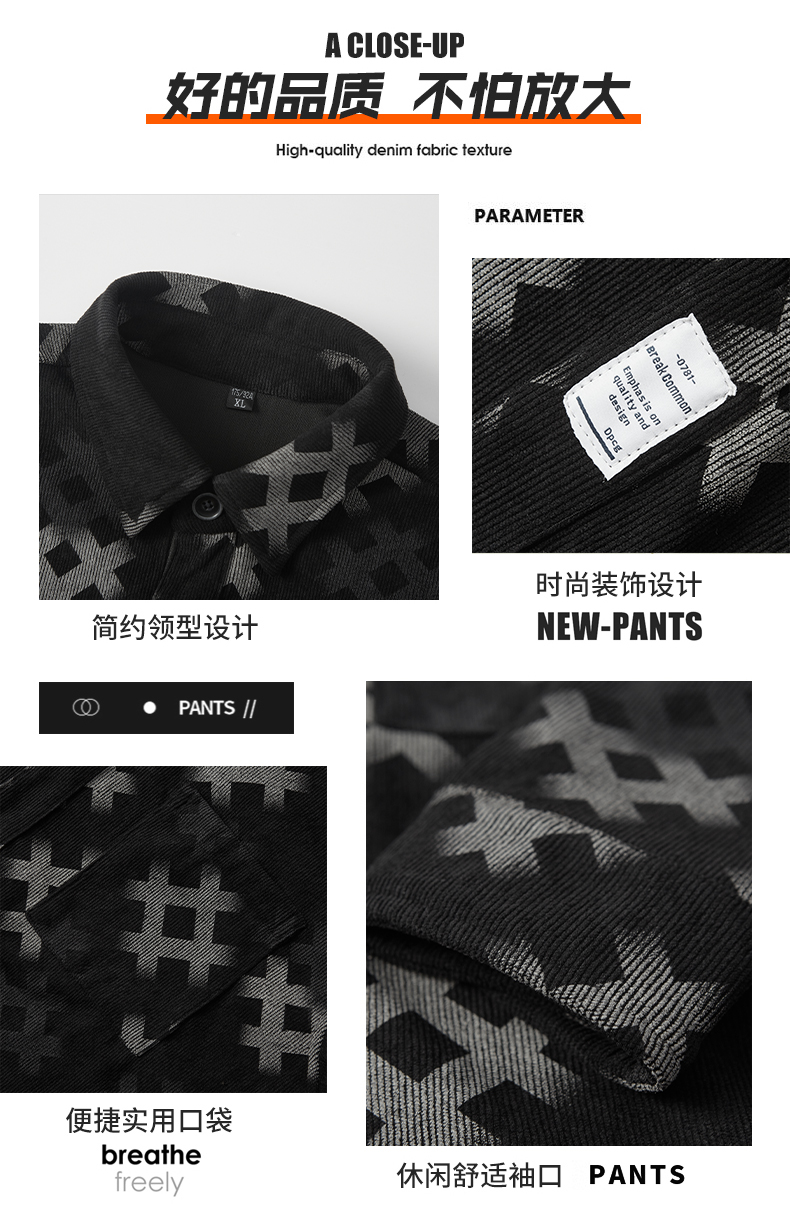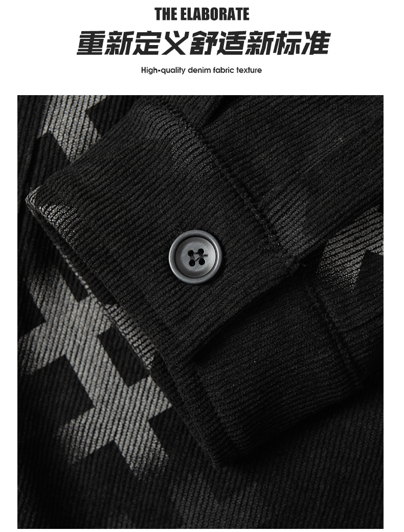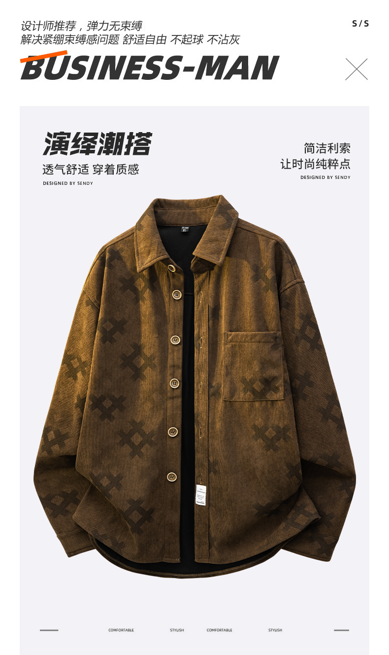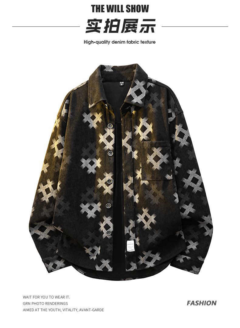 Wassup Line Trendy American-Style Long-Sleeved Shirt Set for Men, Retro Style, Loose Casual Two-Piece Set for Autumn