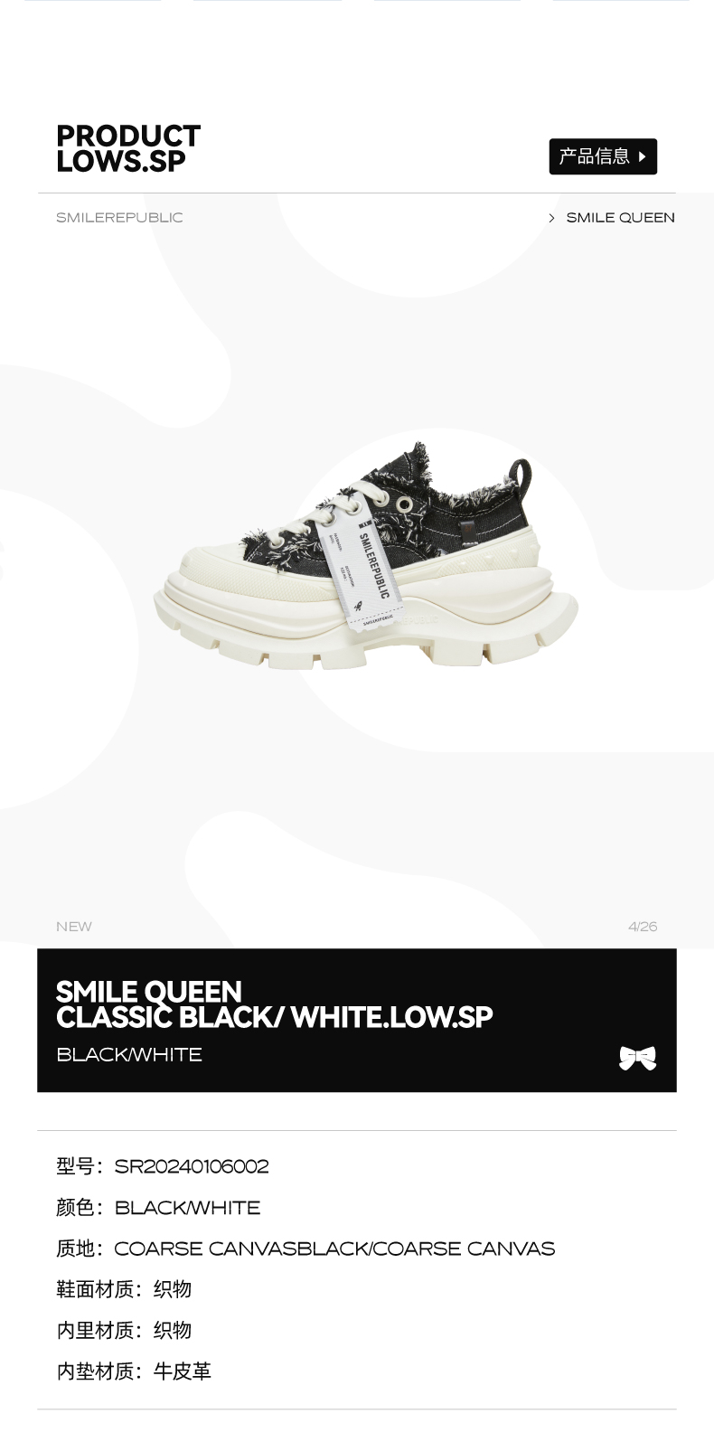 [Double 11] smilerpublic Classic Low Ankle Open Laugh 2.0 Thick Sole Height Canvas Shoes Torre Shoes
