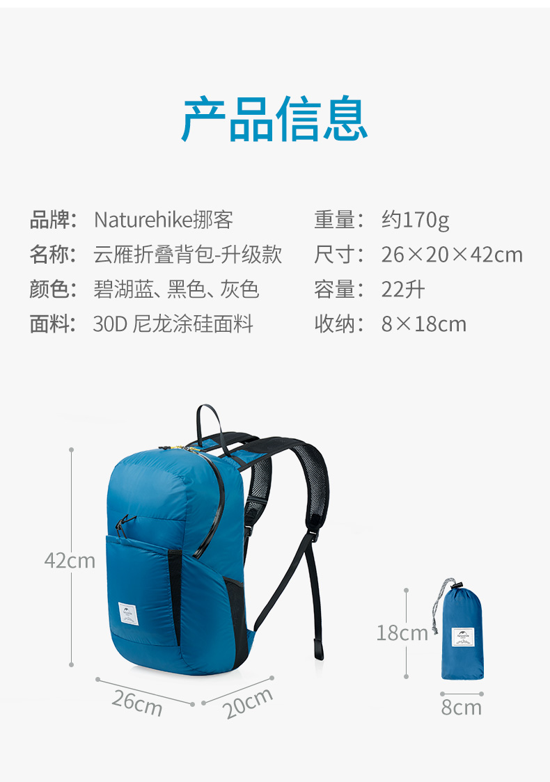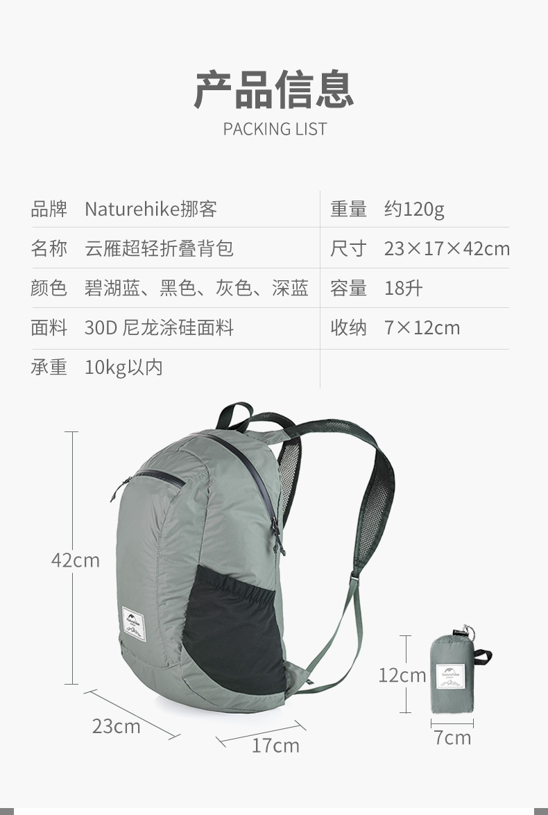 Nh Nook Foldable Backpack for Men and Women, Portable Storage, Ultra-Light Waterproof Travel Bag, Pocket Bag, Hiking Skin Bag