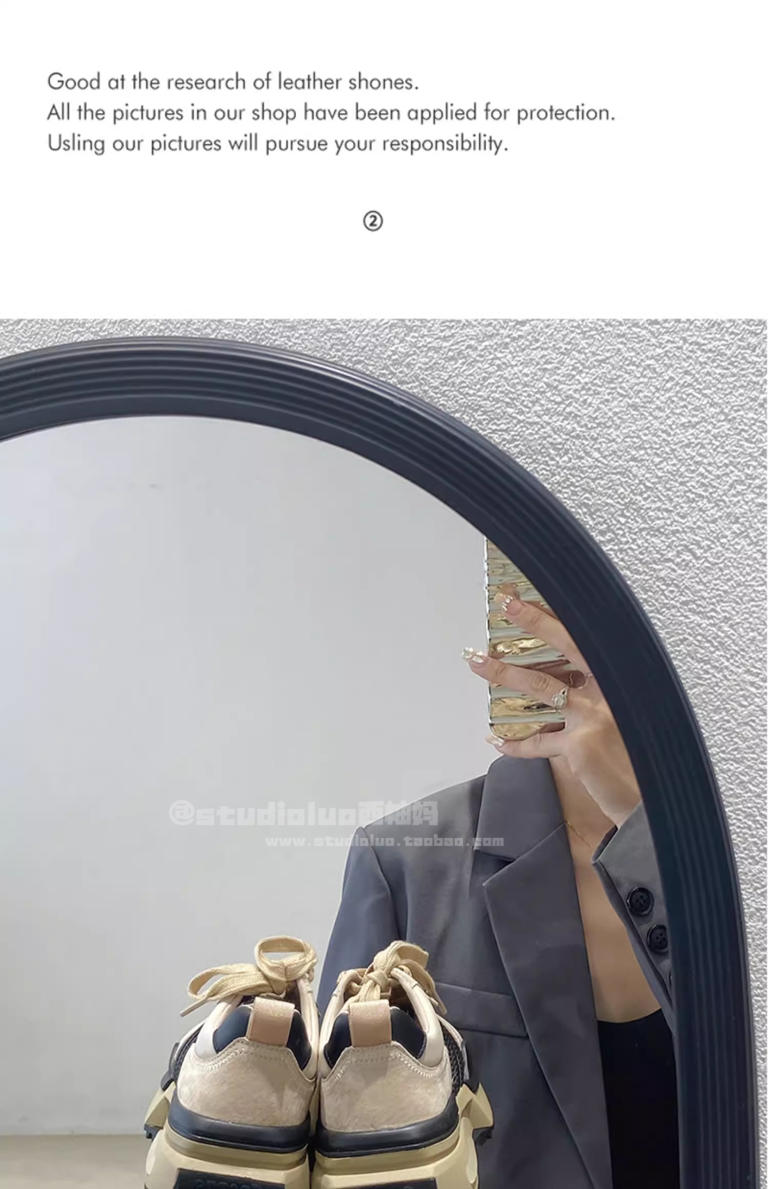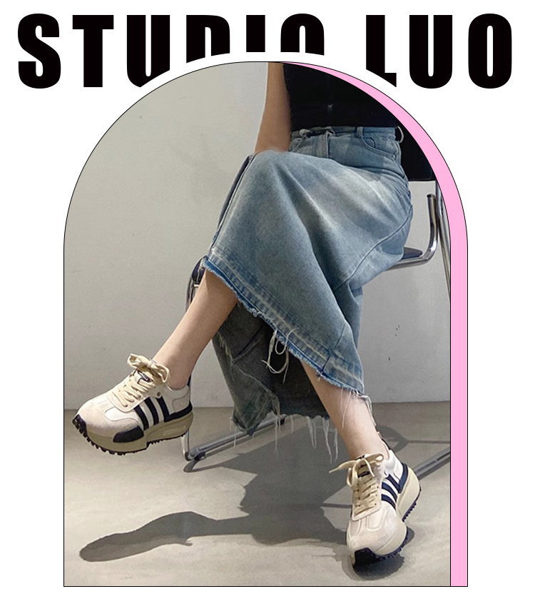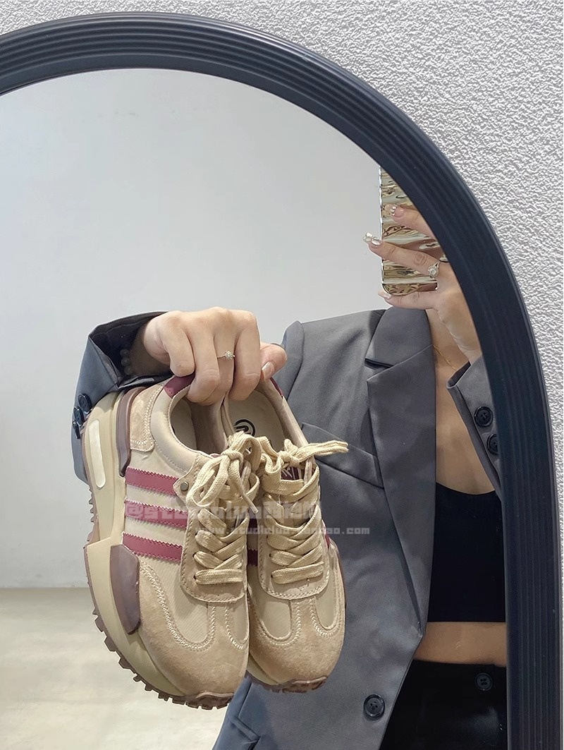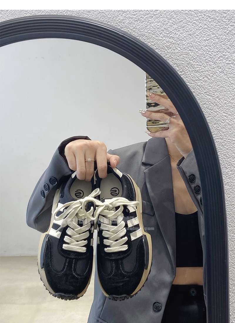 Hong Kong Genuine Leather Casual Sports Shoes for Women, 2025 Spring and Autumn New Color-Block Versatile Lace-Up Thick-Soled Dad Shoes