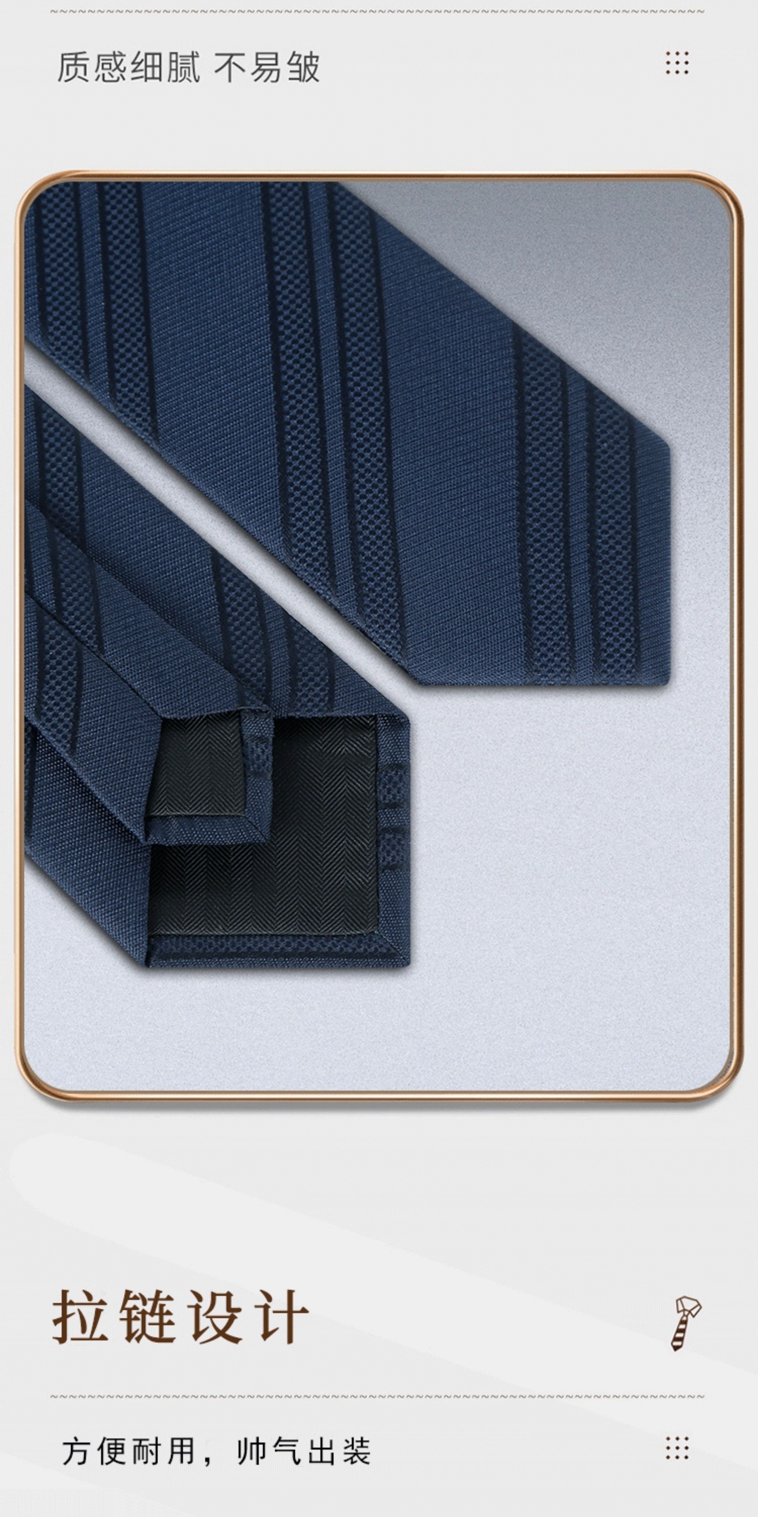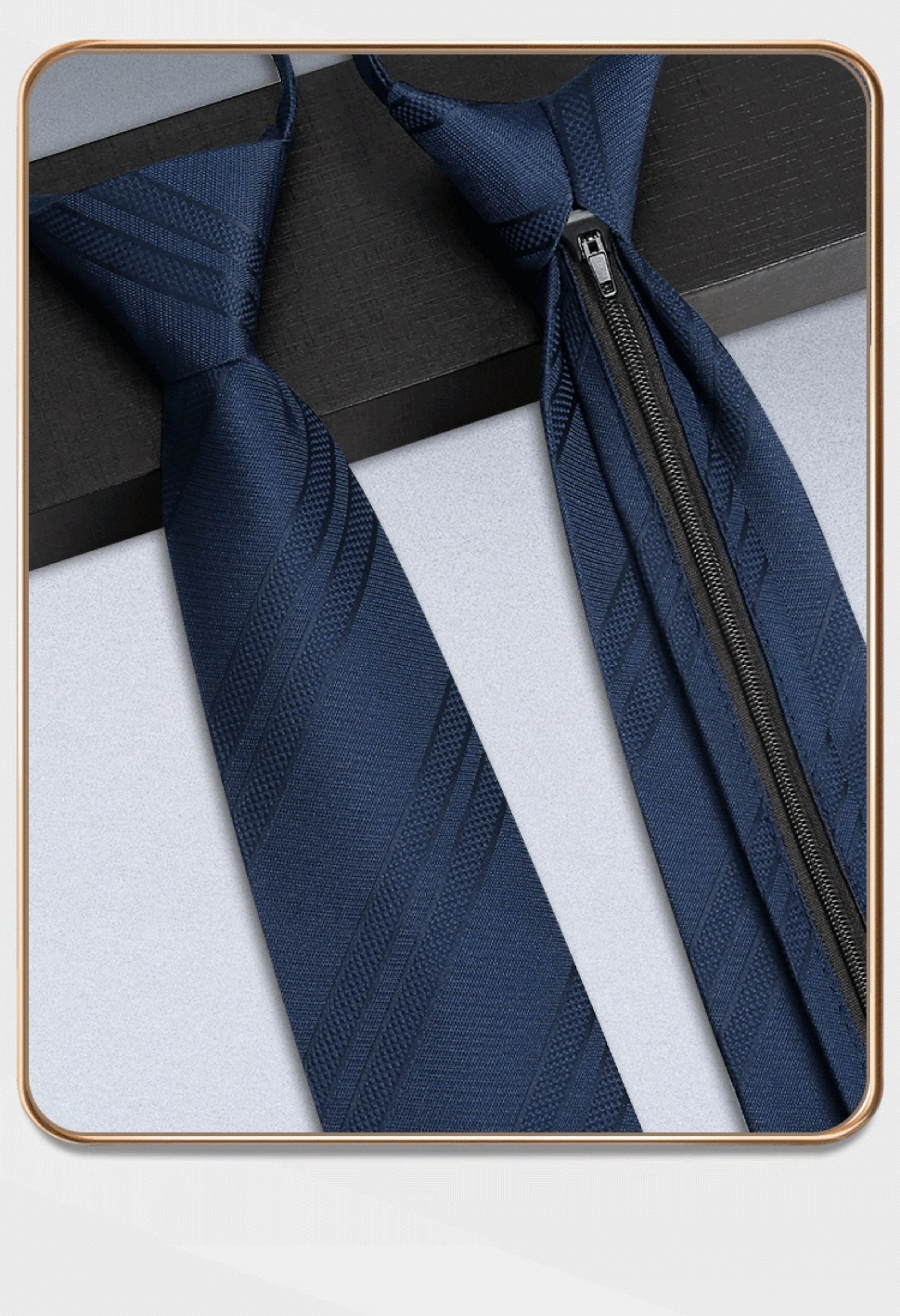 Dark Blue Striped Tie, No Need to Tie, Men's Formal Business Zipper Style, Lazy Professional High-End Easy-To-Pull, with a Sense of Sophistication