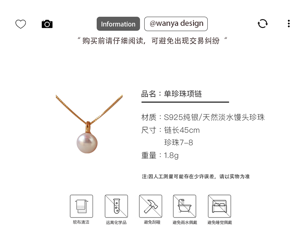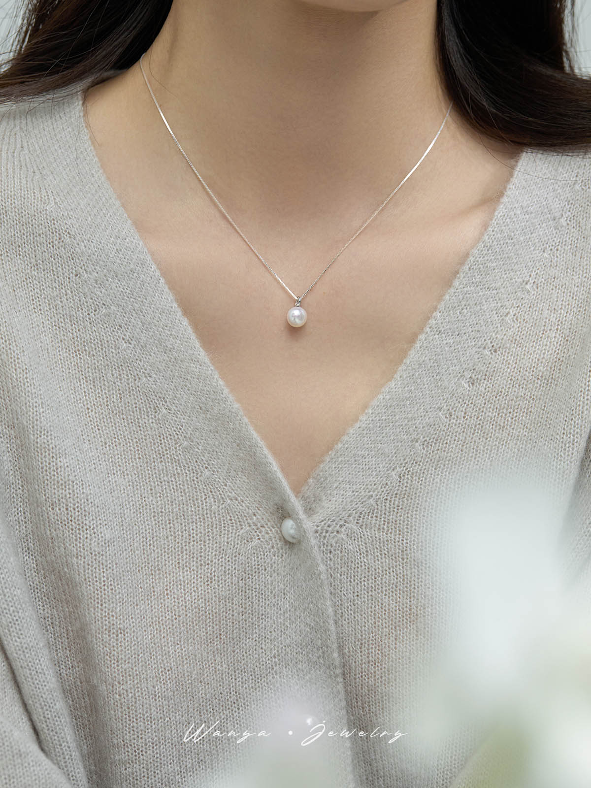 Rare Single 6A Grade Natural Freshwater Pearl Pendant S925 Sterling Silver Necklace for Women, Light Luxury and High-End Clavicle Chain