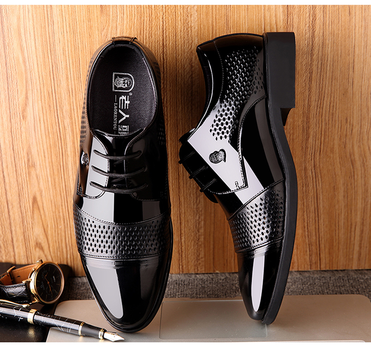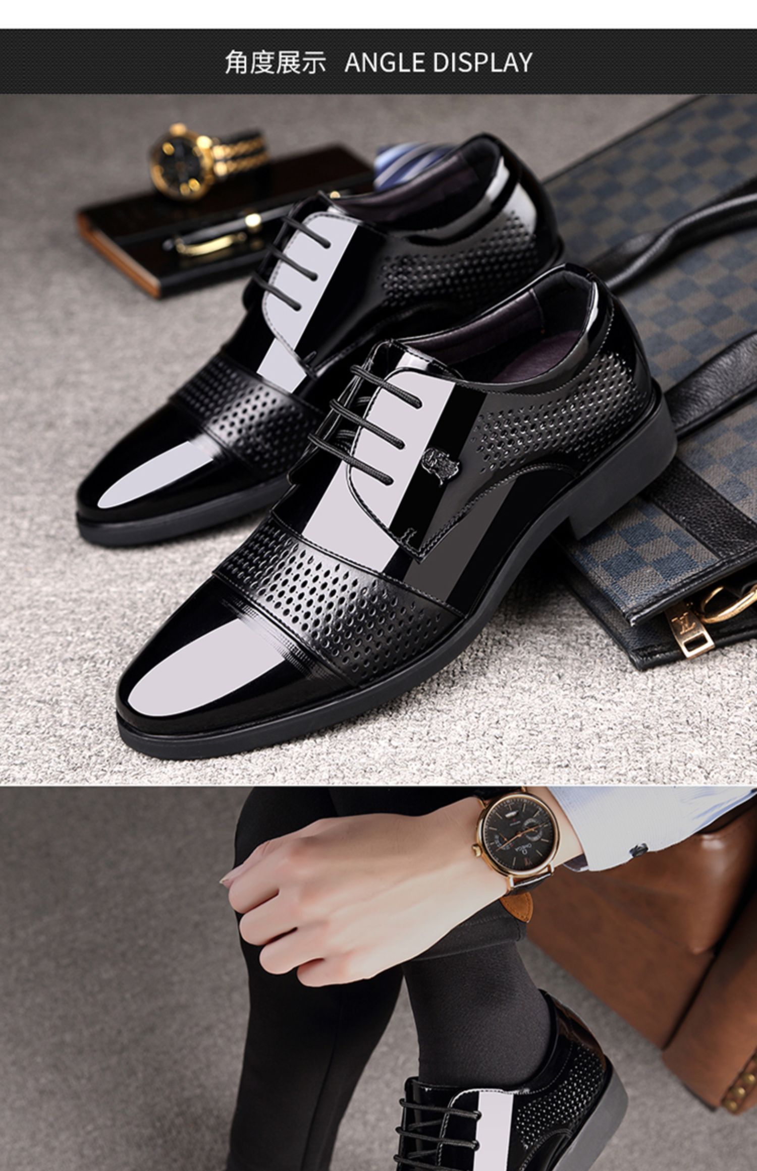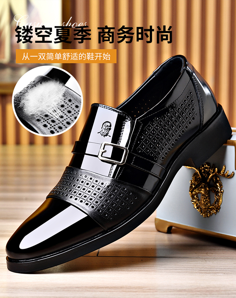 Men's Leather Shoes with Hollow Design for the Elderly, Breathable Summer British Business Formal Leather Shoes, Genuine Leather Perforated Shoes, Men's Leather Sandals