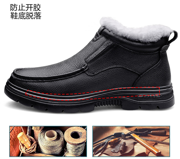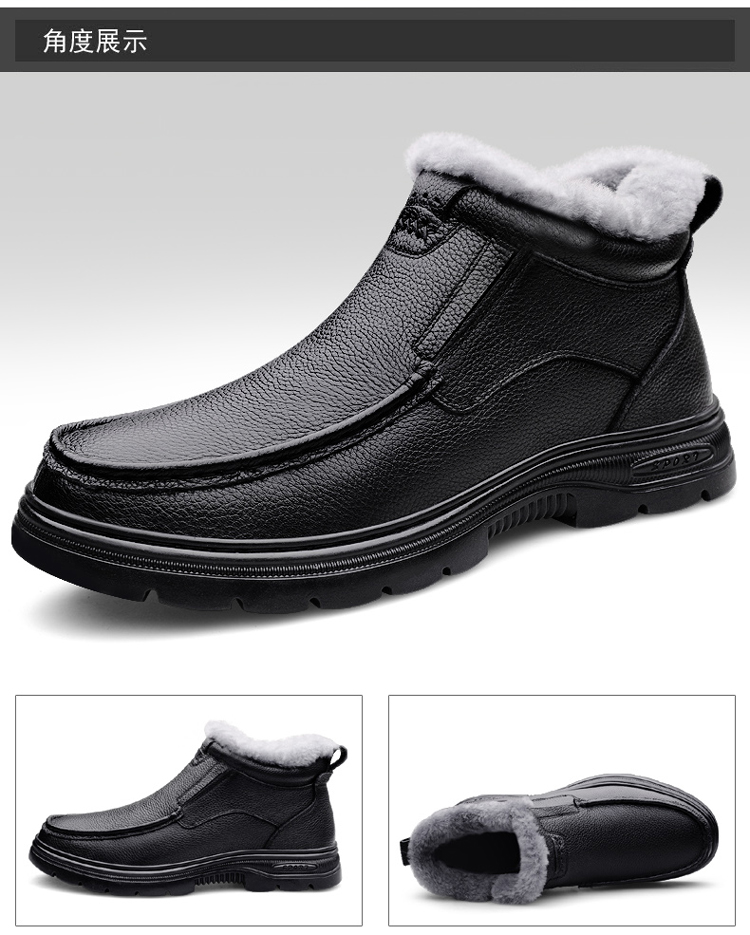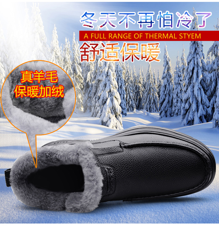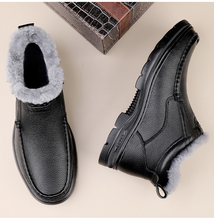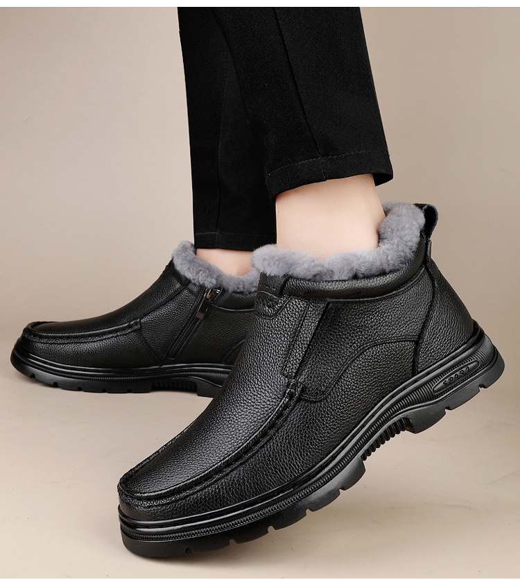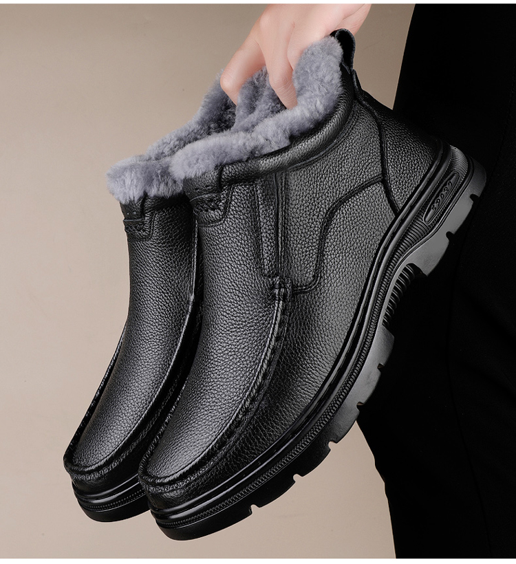 Woodpecker Men's Shoes Winter Business Genuine Leather High-Top Leather Shoes Men's Wool Fleece-Lined Warm Short Leather Boots Dad's Cotton Shoes
