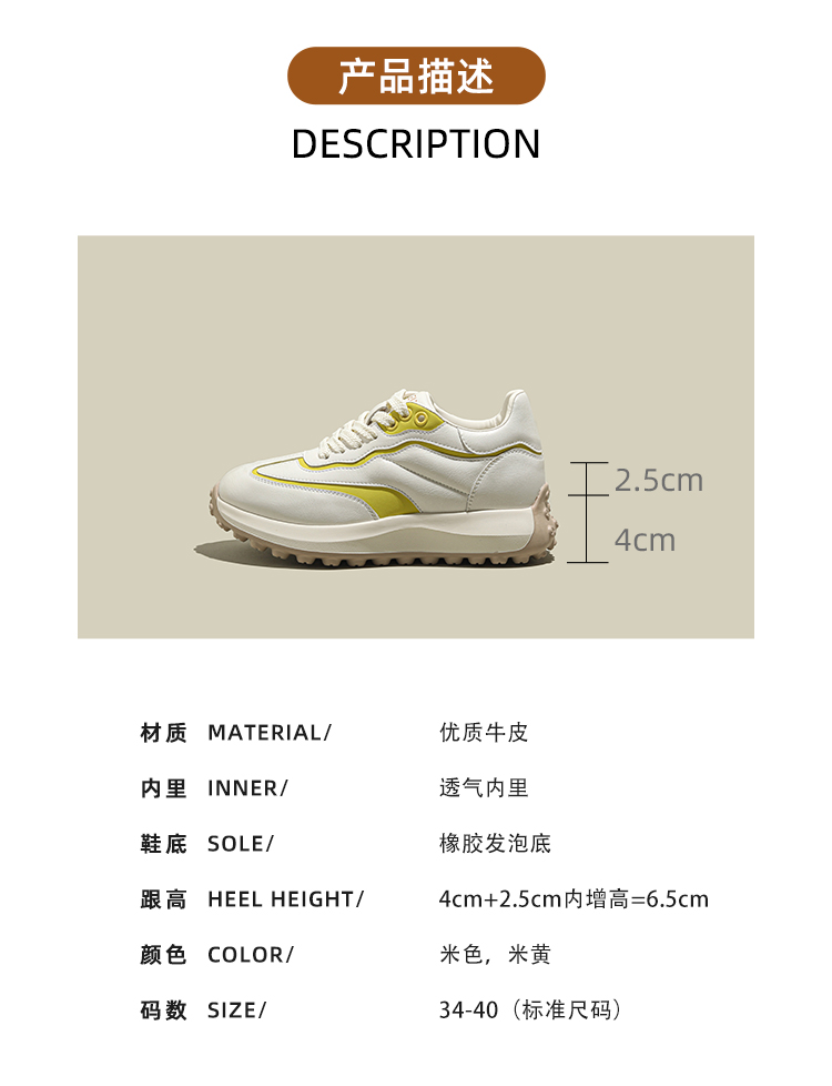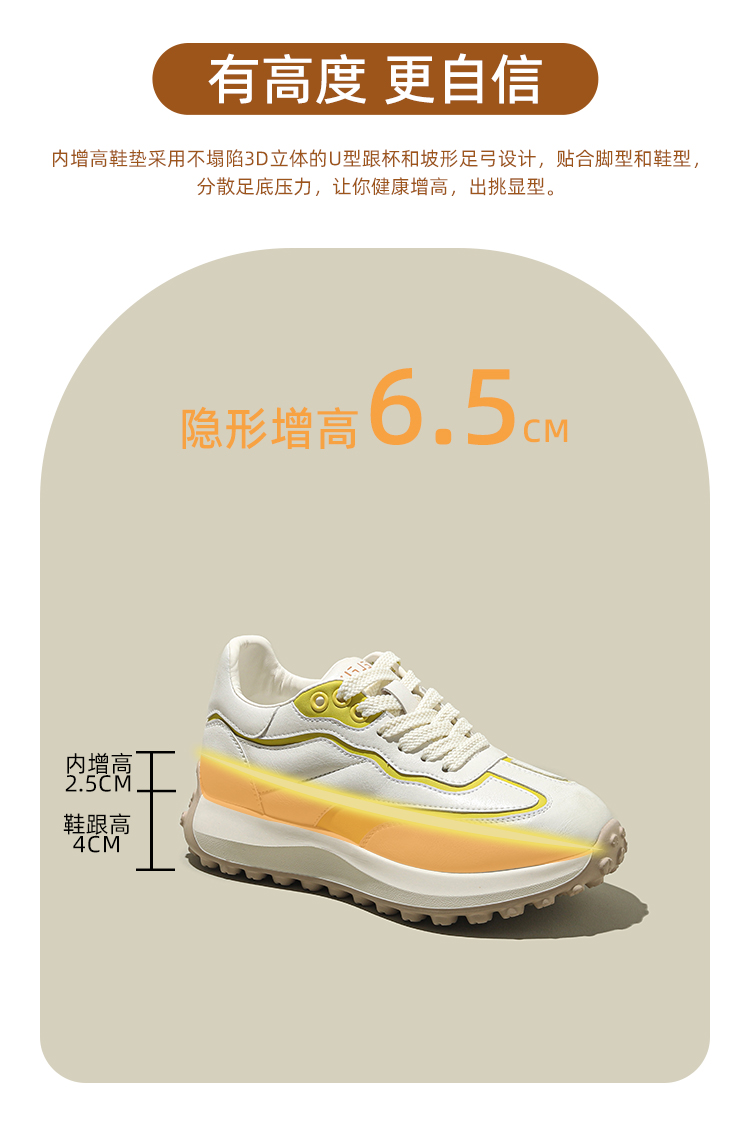 Platform Height-Increasing Sneakers for Women, 2025 Spring New Versatile White Shoes, Casual Sports Dad Shoes