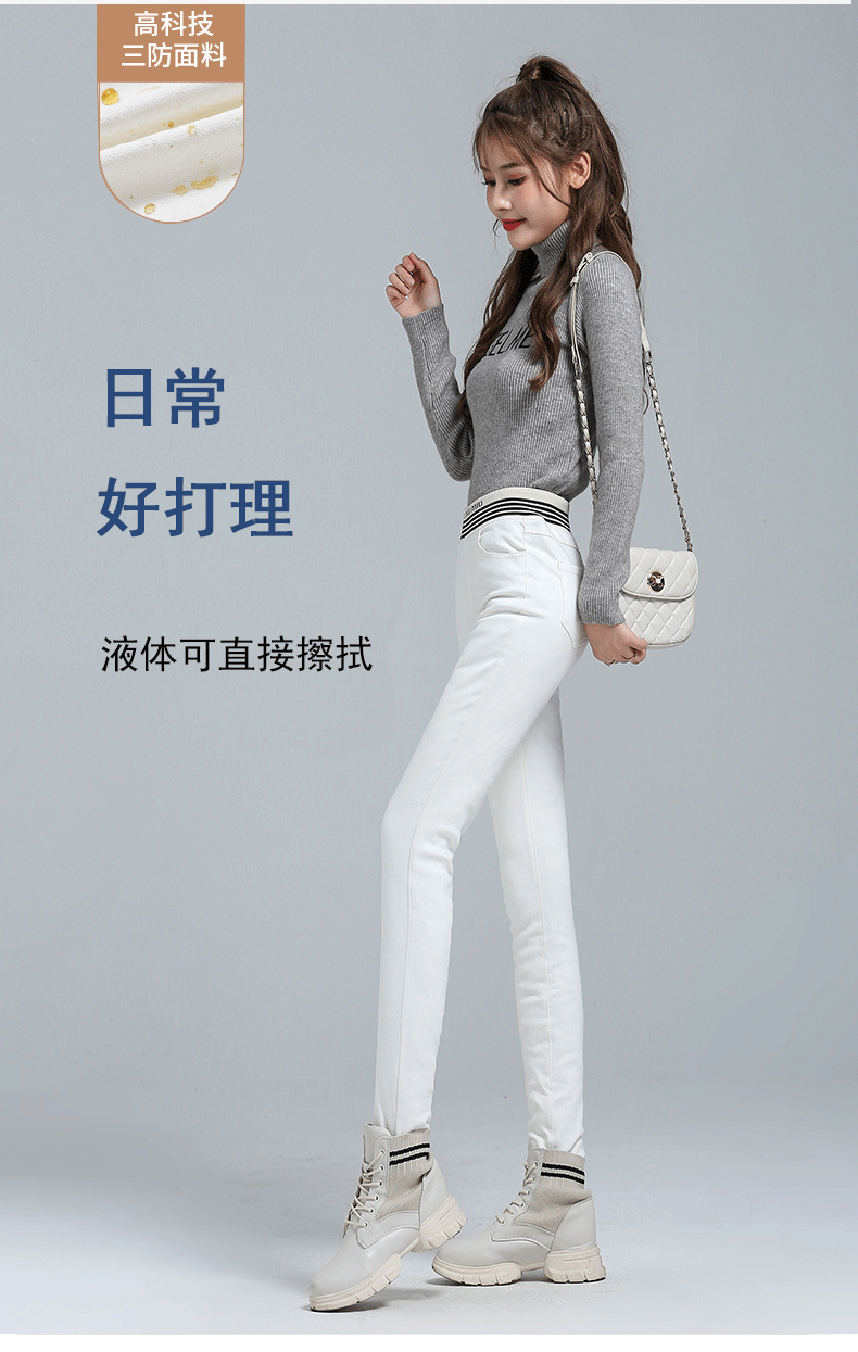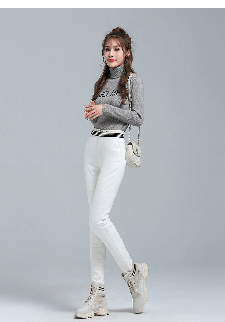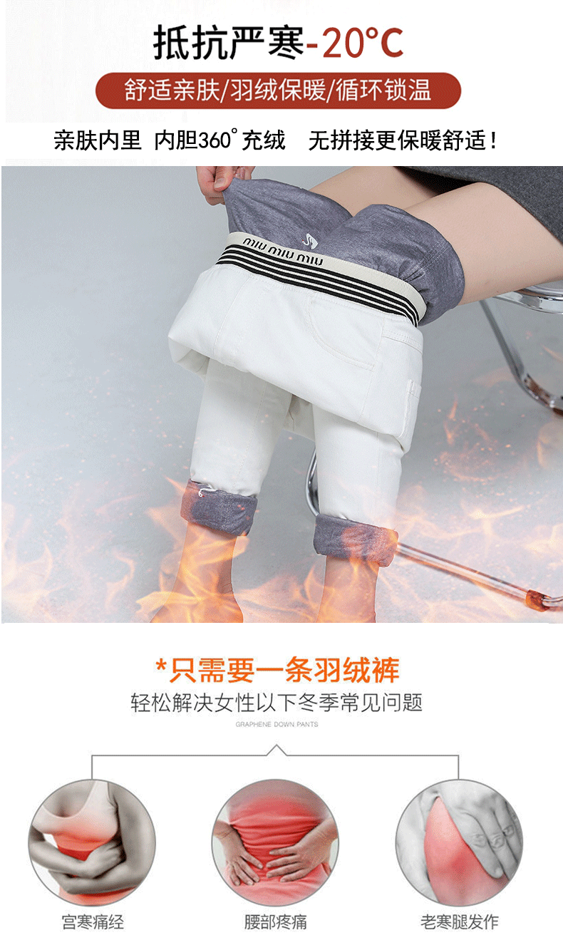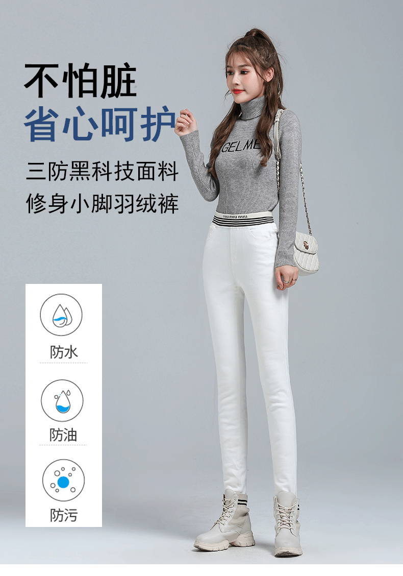 White Denim Down Pants Women's Outwear Winter high waist silm Slim Looking White Duck Down Heattech Skinny Jeans Pencil Pants Boots Pants