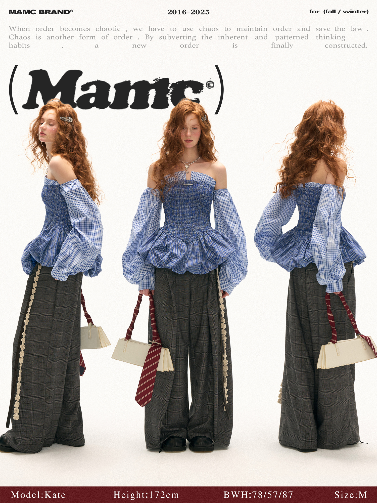 Mamc Striped Ruched Bandeau Bubble Dress, New Autumn Seaside Dress for Women, Blue High-End Patchwork Dress