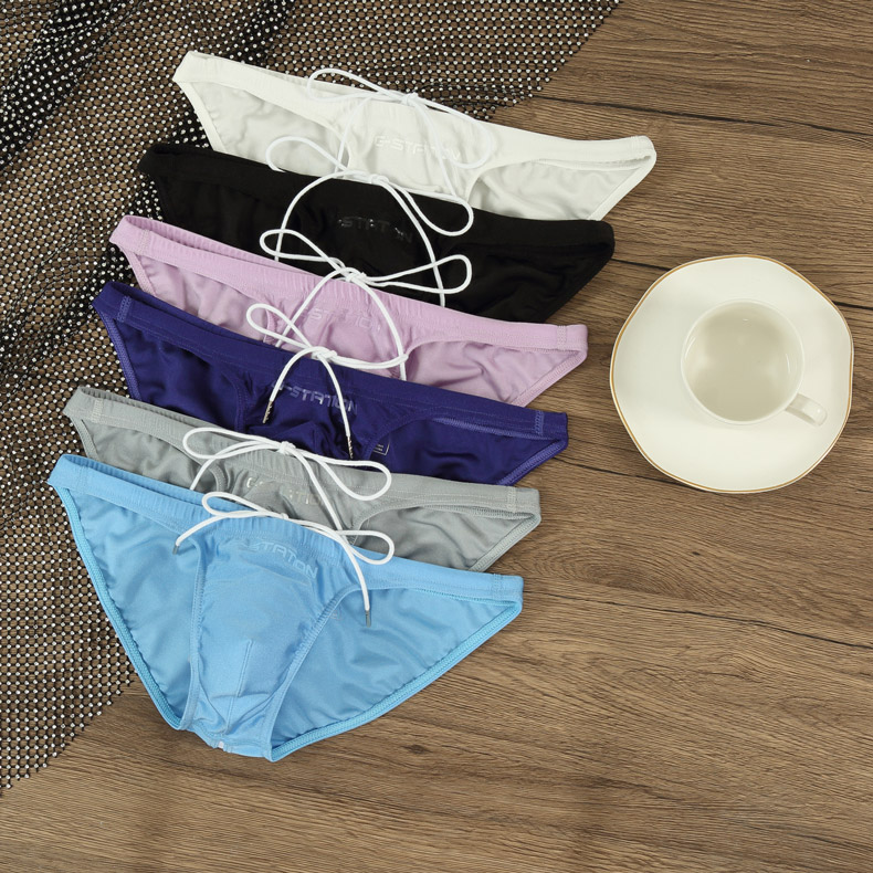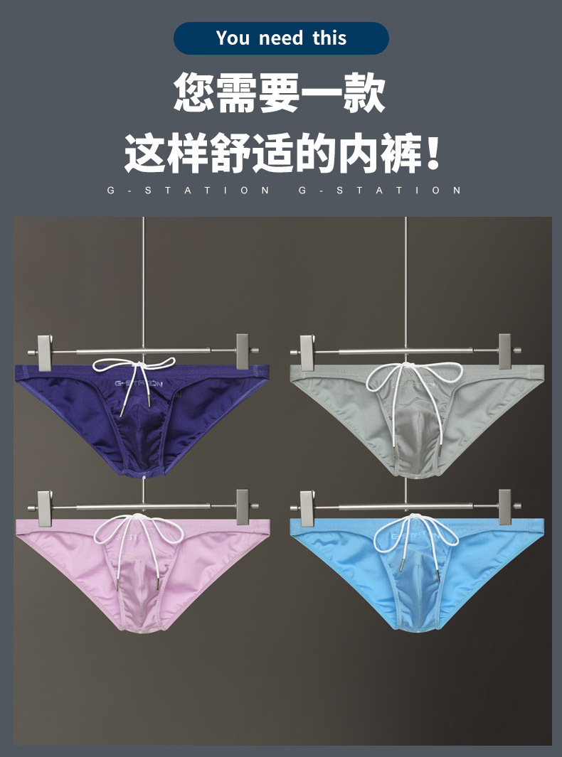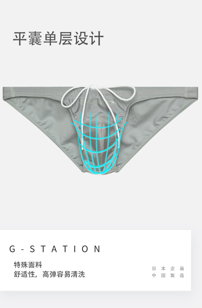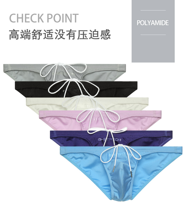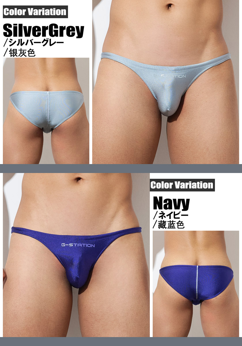 G-Station Comfortable Glossy Swim Trunks Fabric Sexy Bikini Men's Briefs Tight Single-Layer Pouch