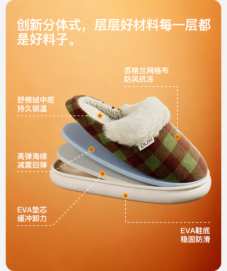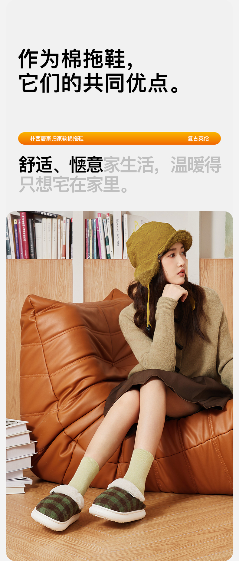 Puxi 2025 New Autumn and Winter Cotton Slippers for Men, Indoor Home Use, Non-Slip Soft Sole, Couple Plush Cotton Shoes for Women