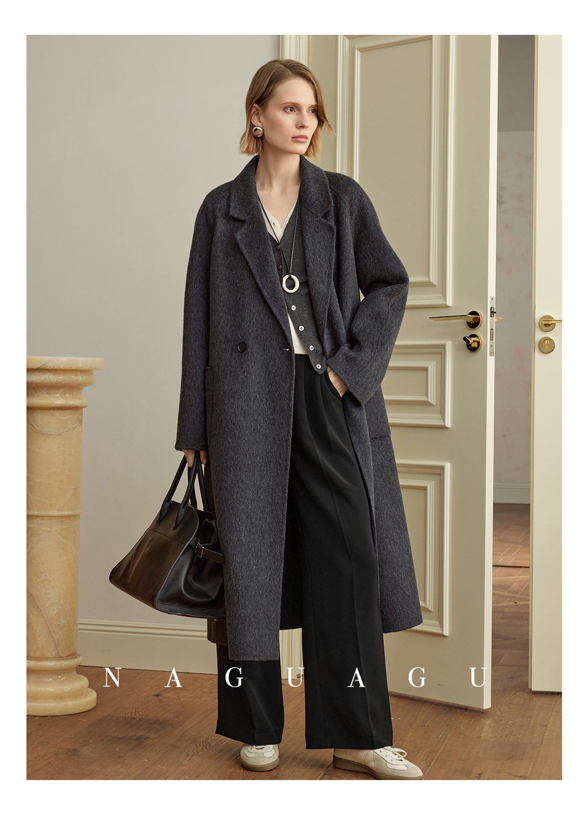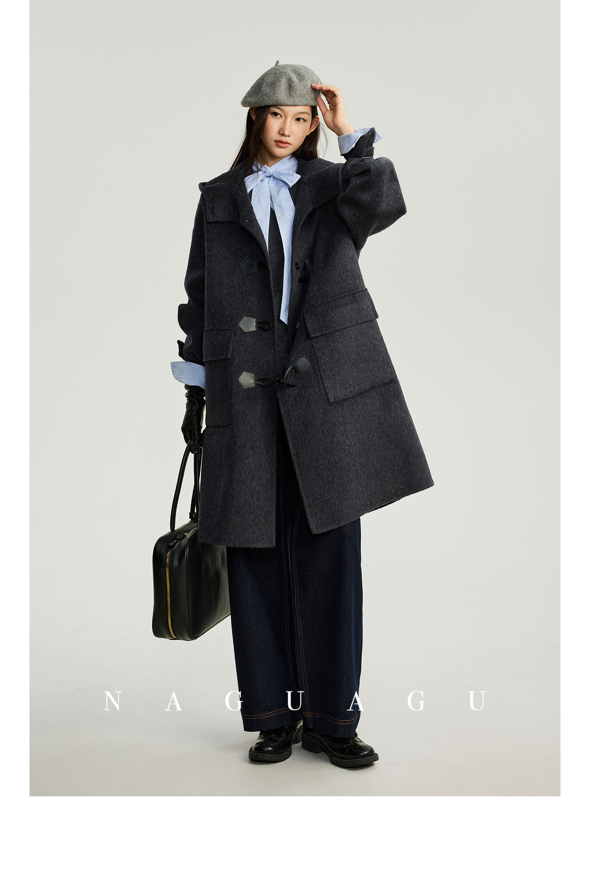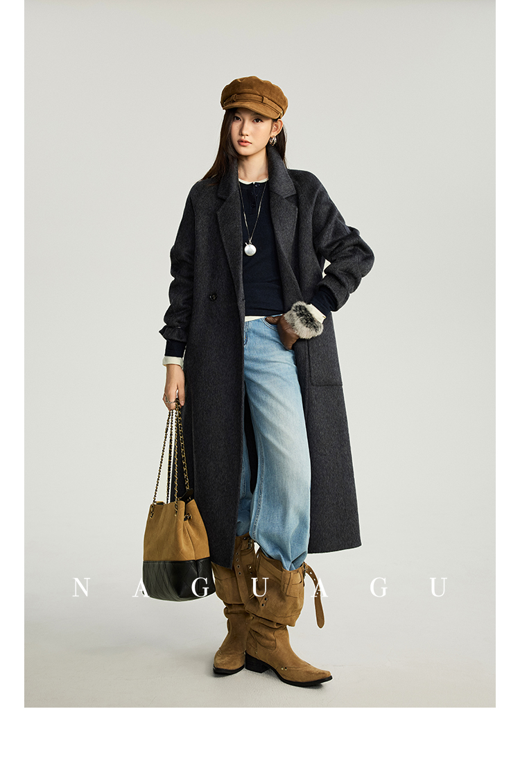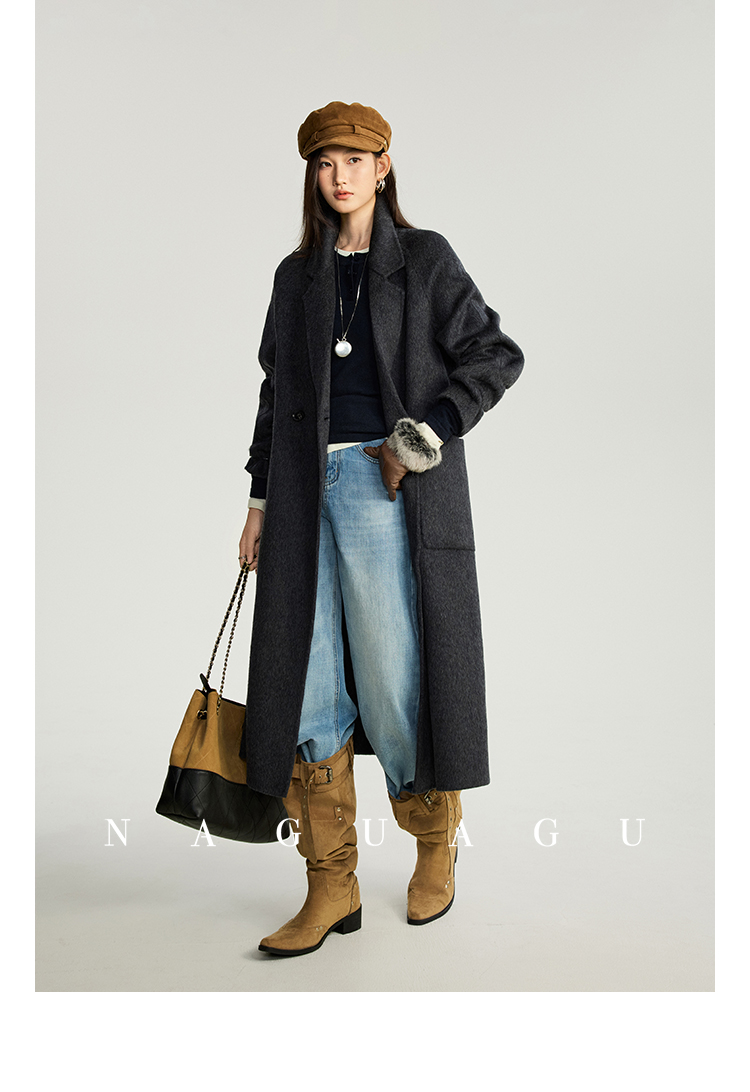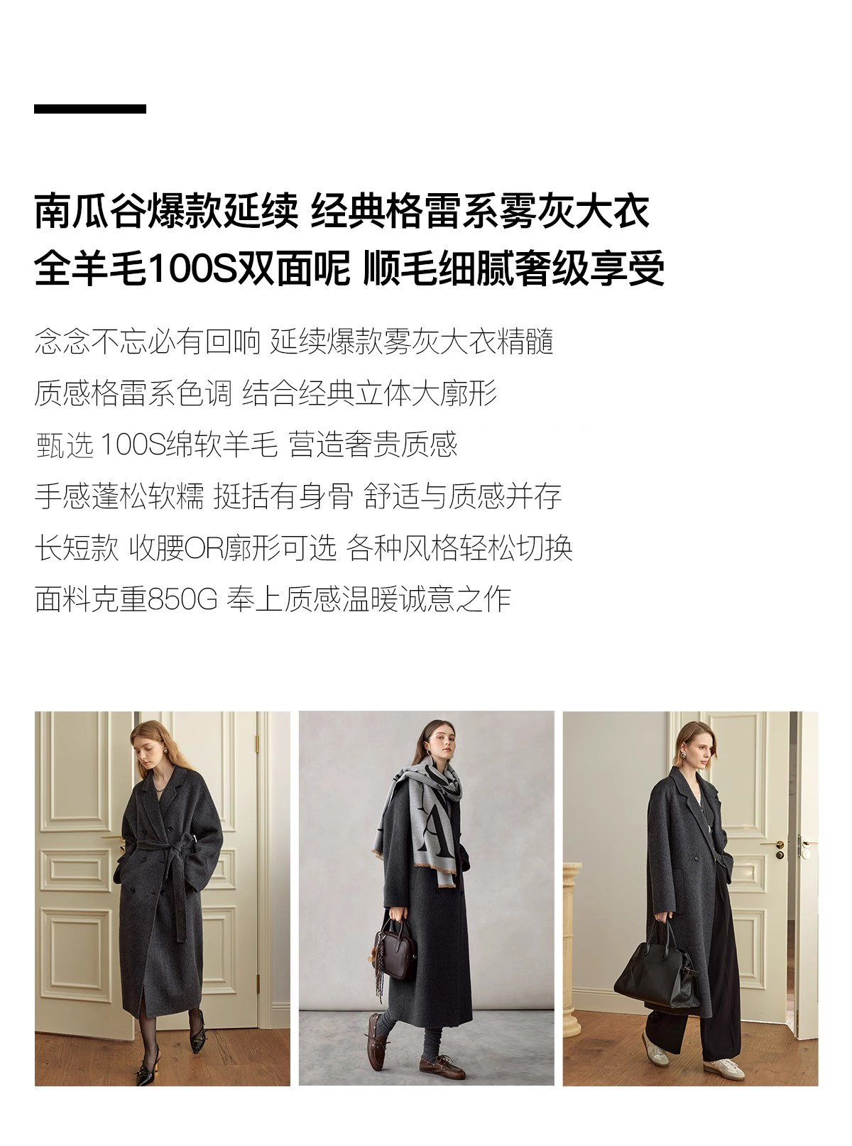 Pumpkin Valley in Stock Norwegian Mist Gray Coat~ Autumn and Winter Wool Double-Sided Woolen Fabric Gray Series Outfit Woolen Coat for Women