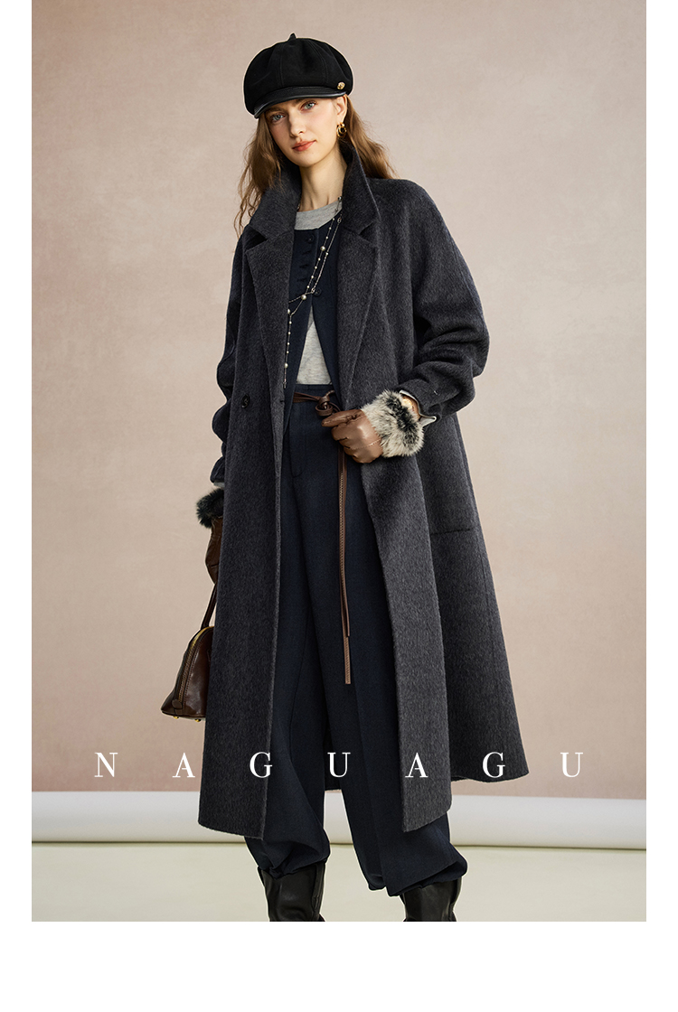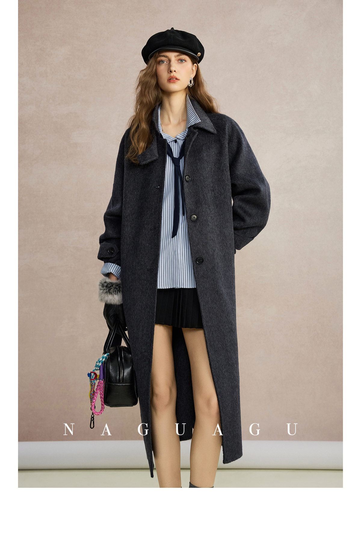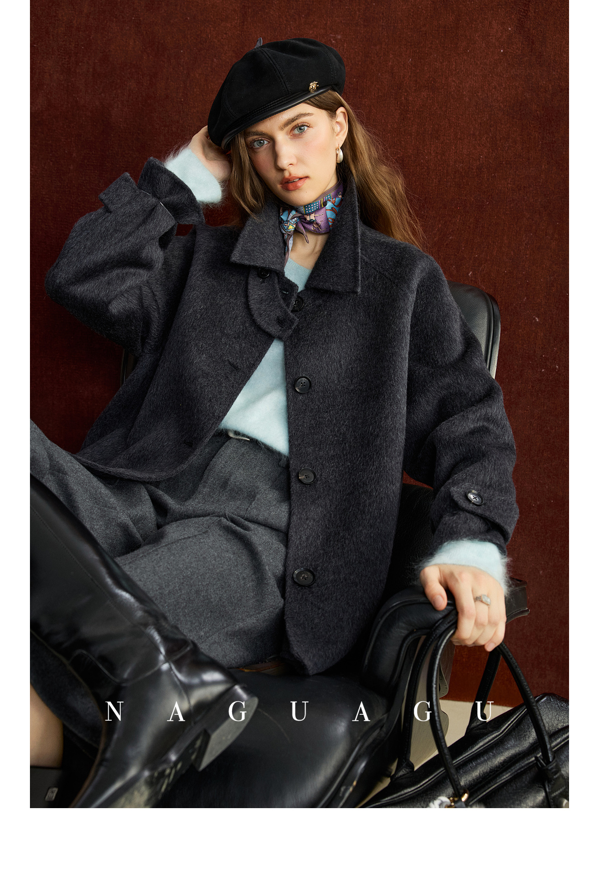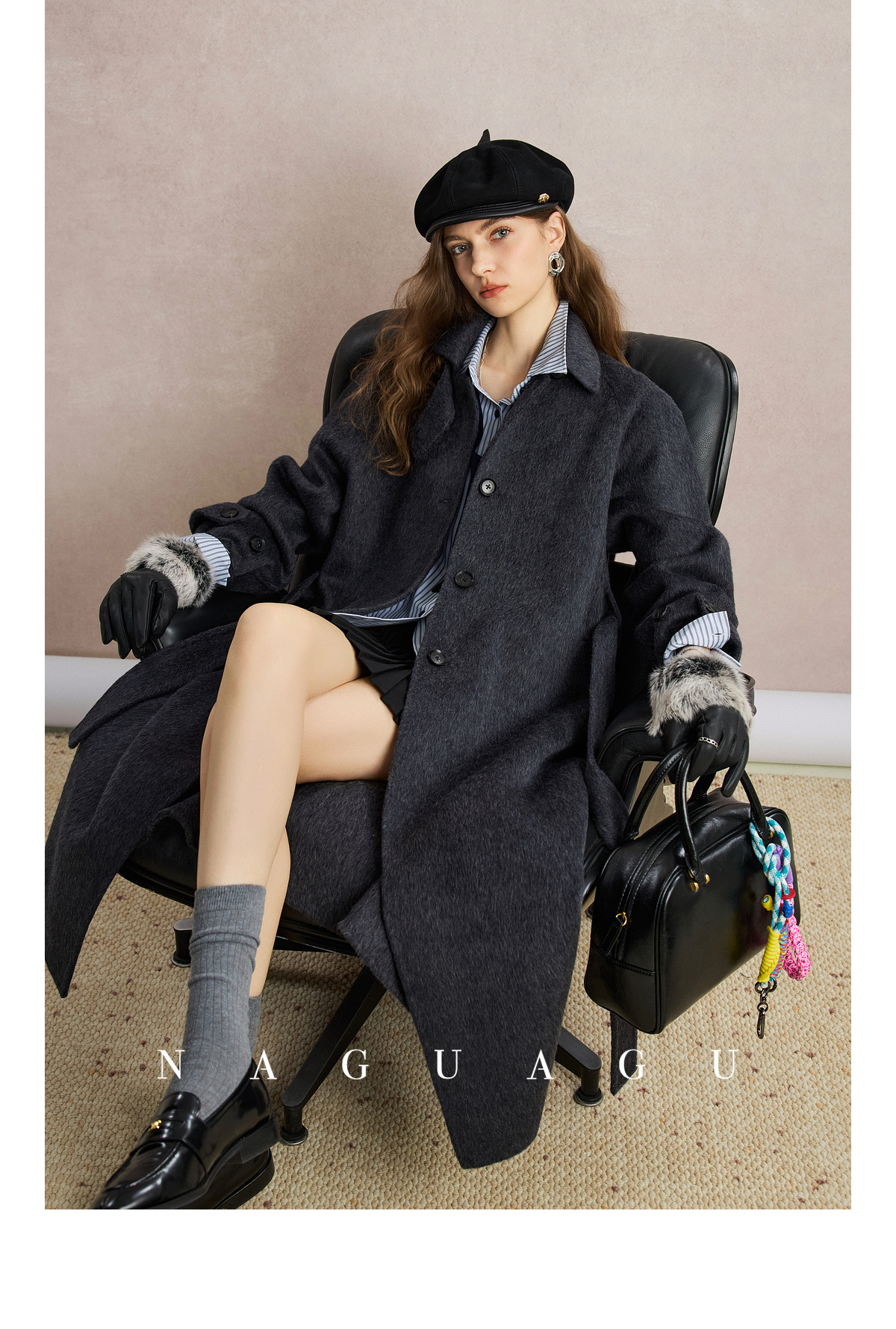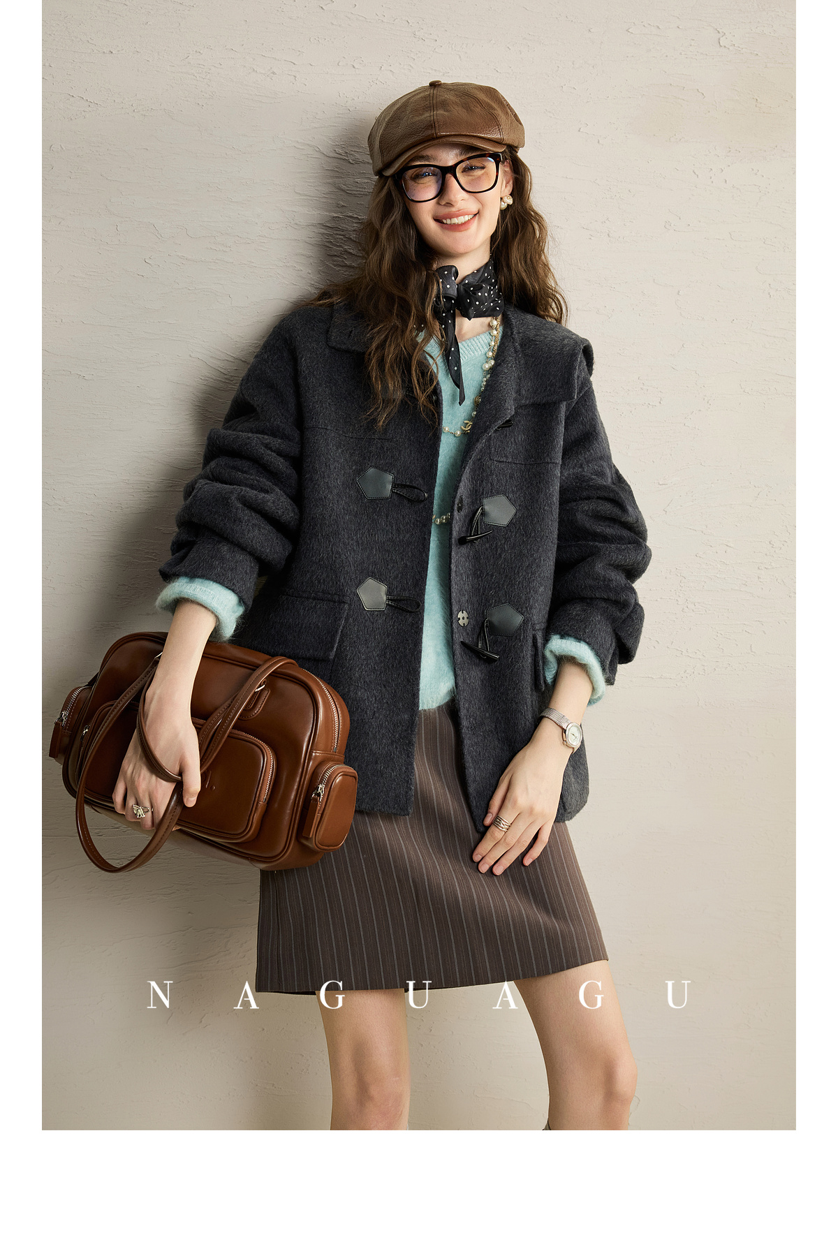 Pumpkin Valley in Stock Norwegian Mist Gray Coat~ Autumn and Winter Wool Double-Sided Woolen Fabric Gray Series Outfit Woolen Coat for Women