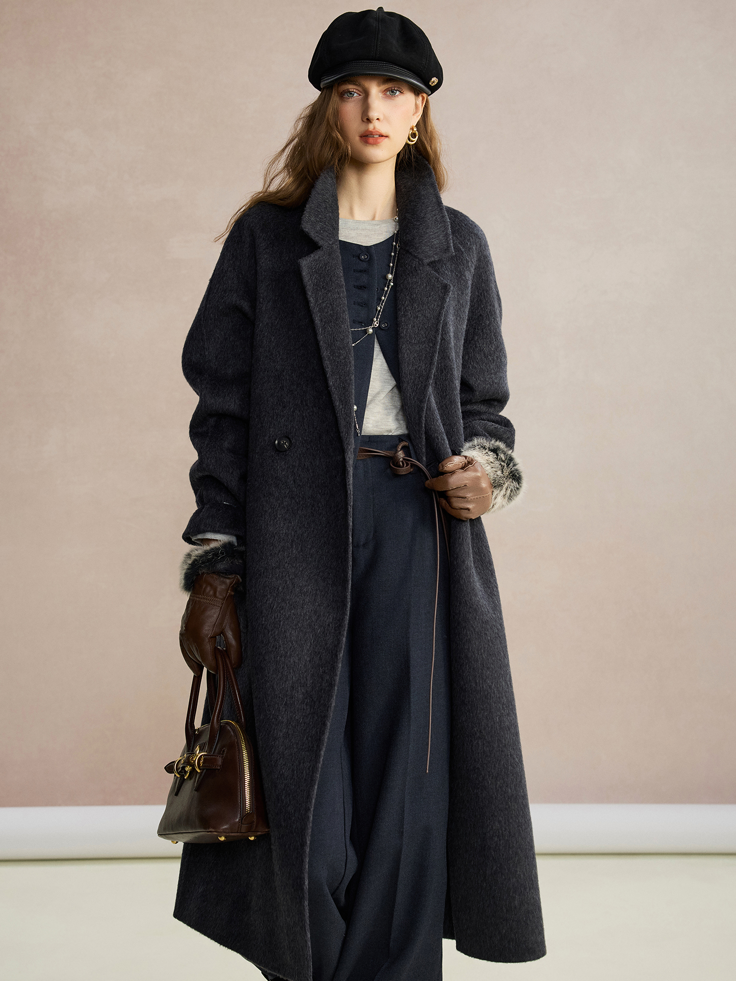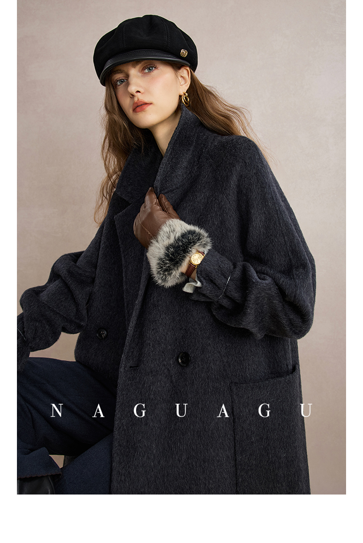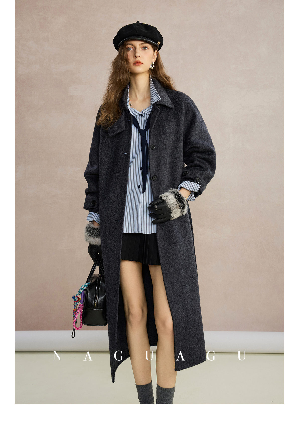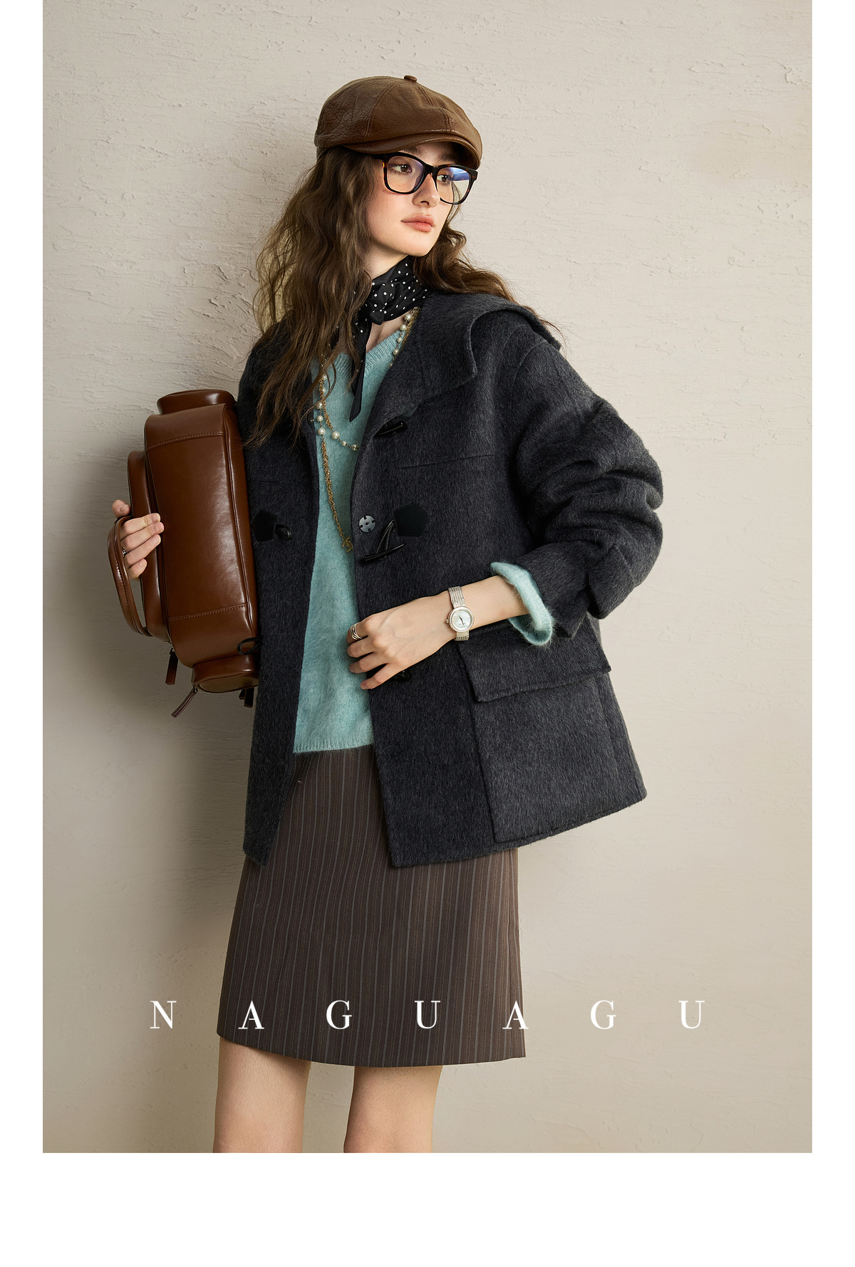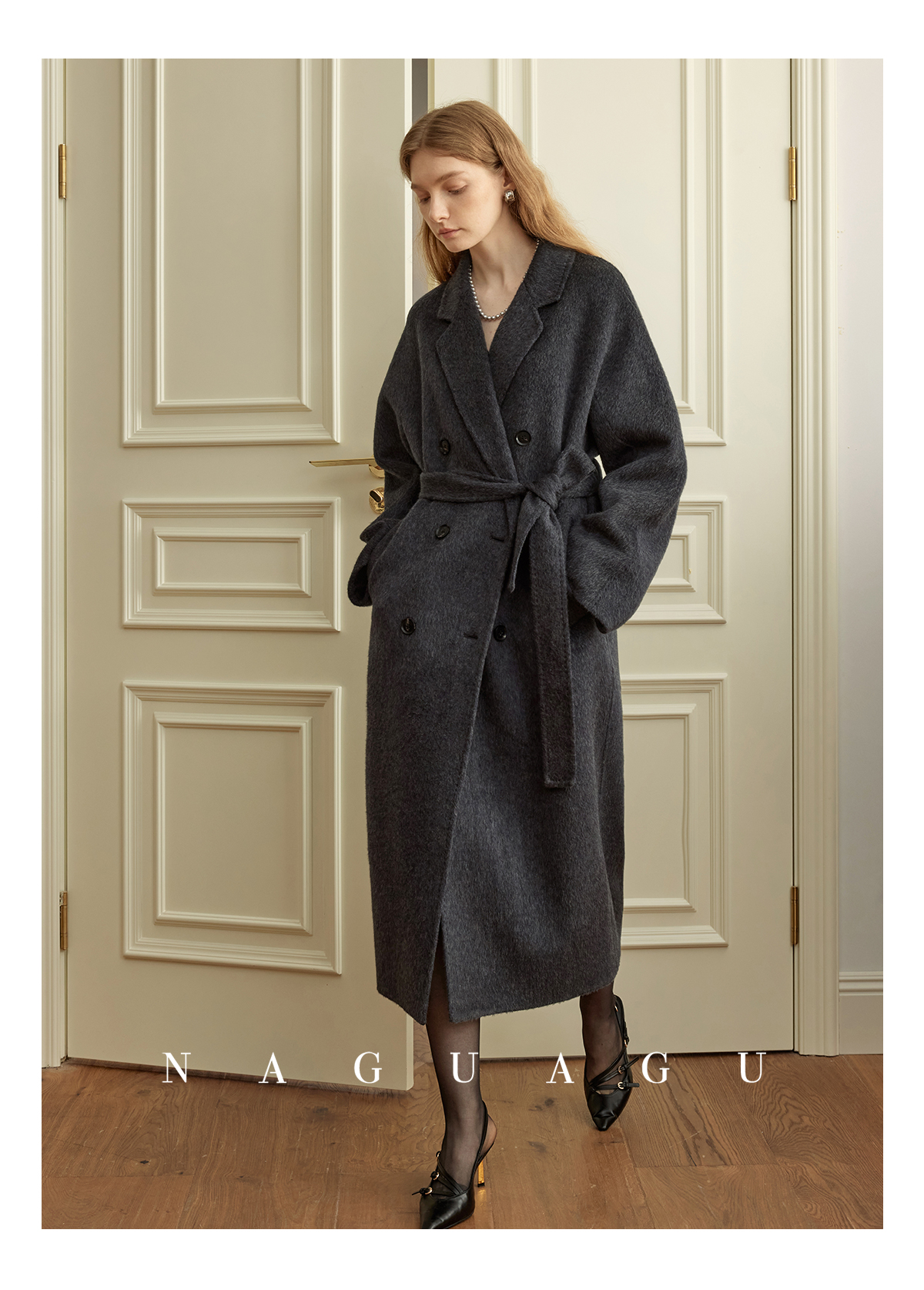 Pumpkin Valley in Stock Norwegian Mist Gray Coat~ Autumn and Winter Wool Double-Sided Woolen Fabric Gray Series Outfit Woolen Coat for Women