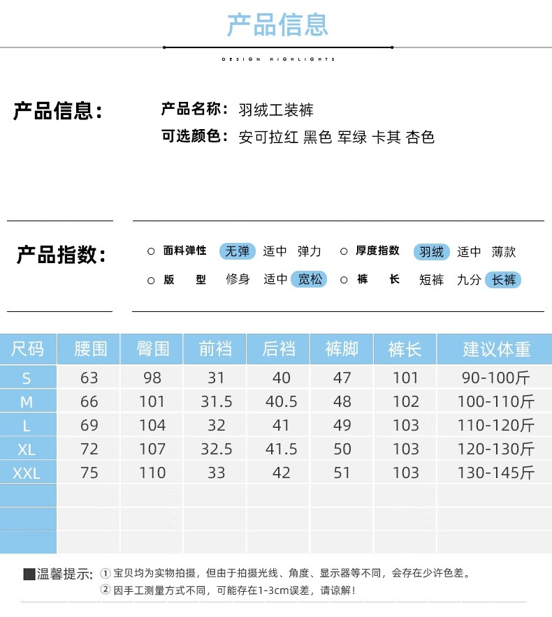 German Three-Proof Workwear down Pants for Women, New Winter Outerwear, Suitable for Temperatures as Low as Minus 40 Degrees, Northeast Snow Country, Cold-Proof Wide-Leg Cotton Pants