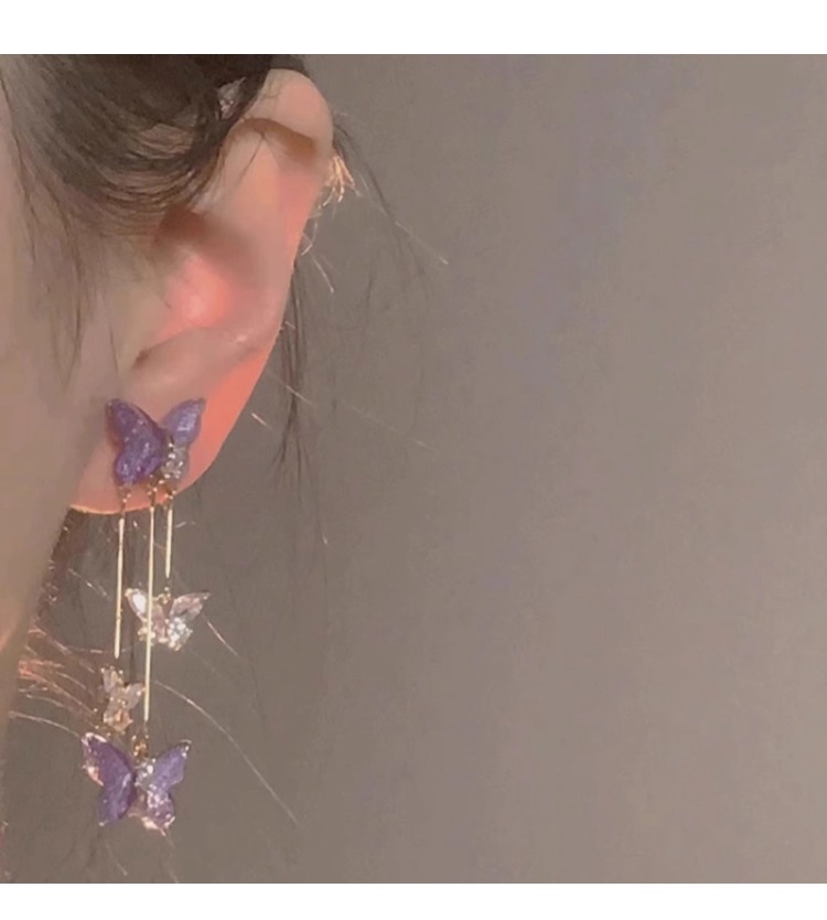 925 Silver Needle Super Fairy-Like Purple Butterfly Earrings for Women, Unique and Fashionable Niche Design, High-End Earrings, New Style