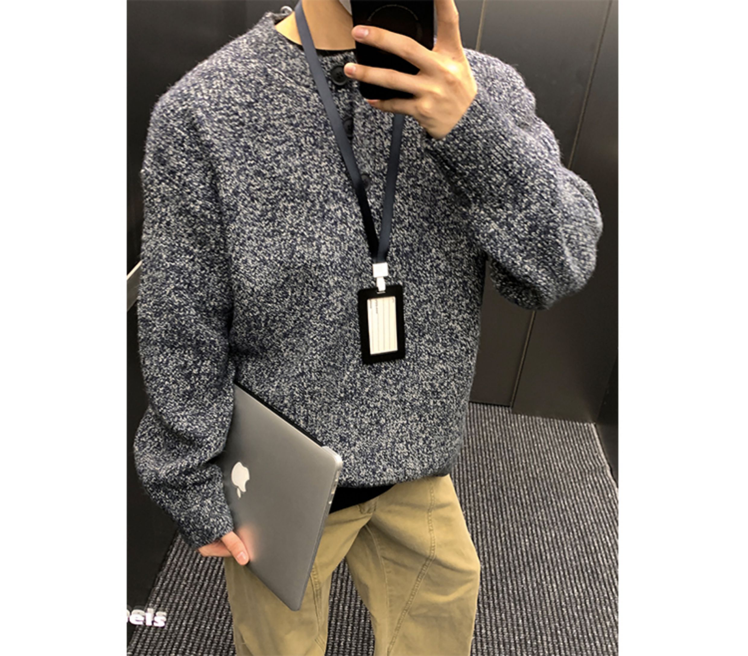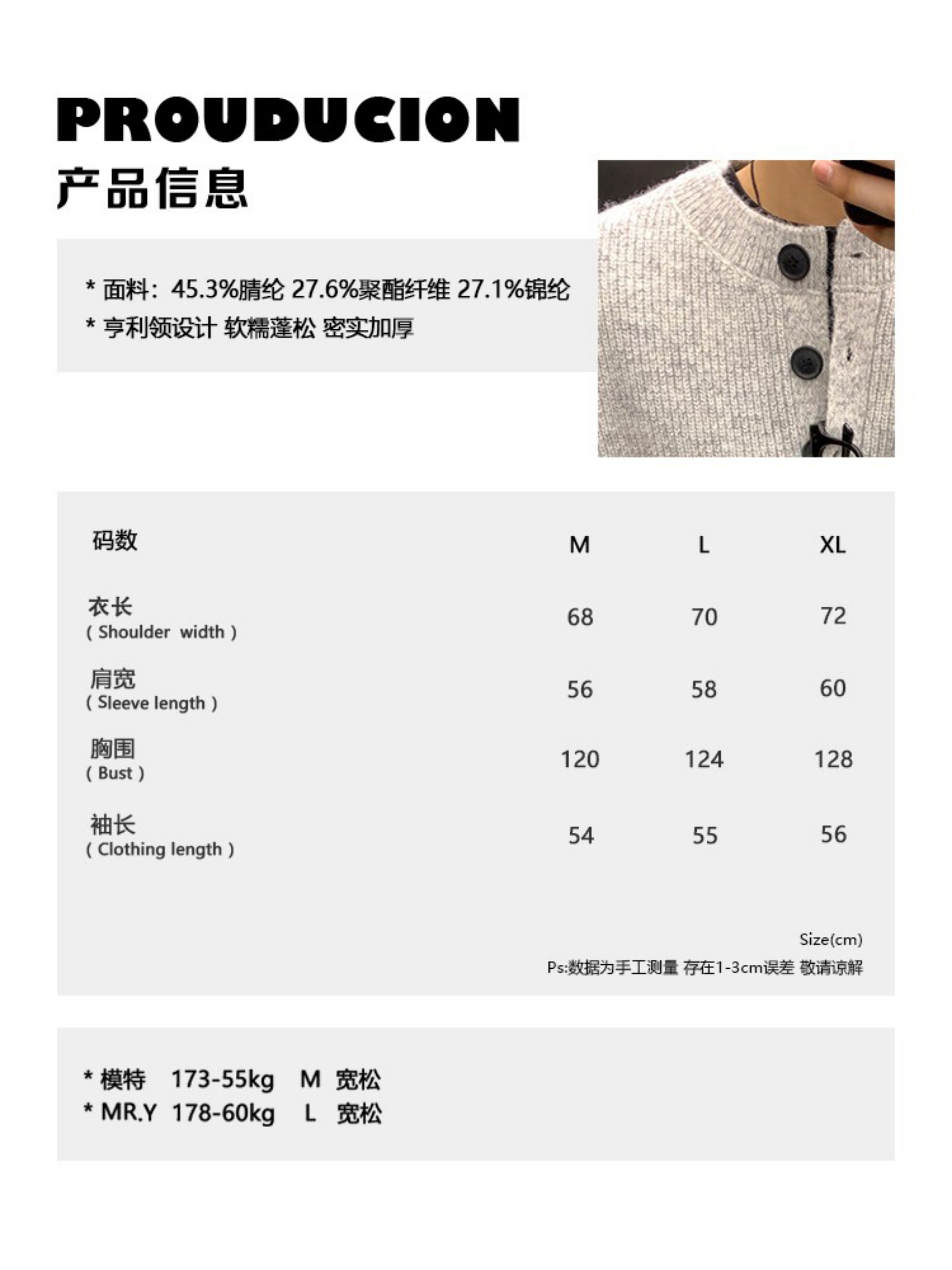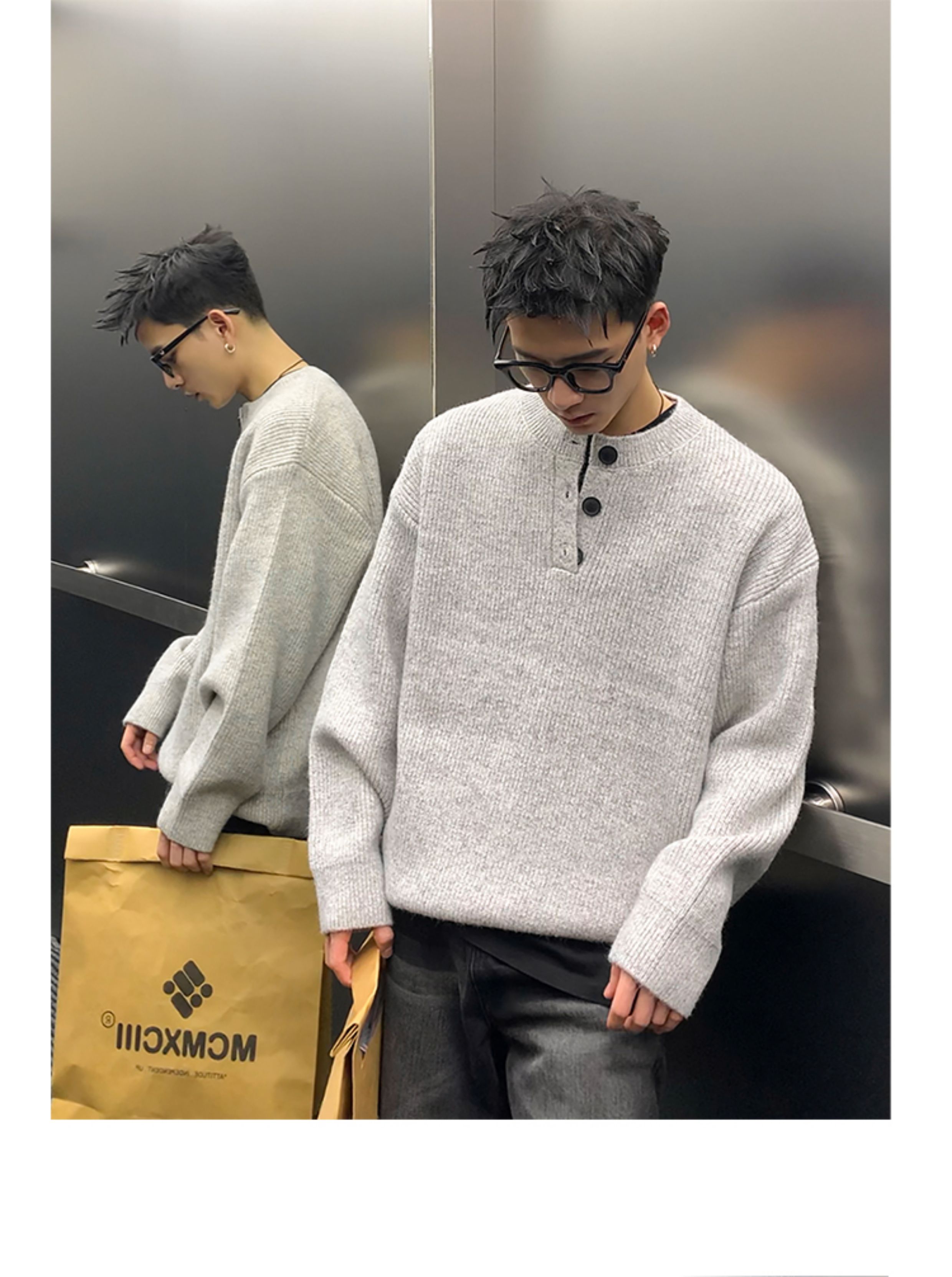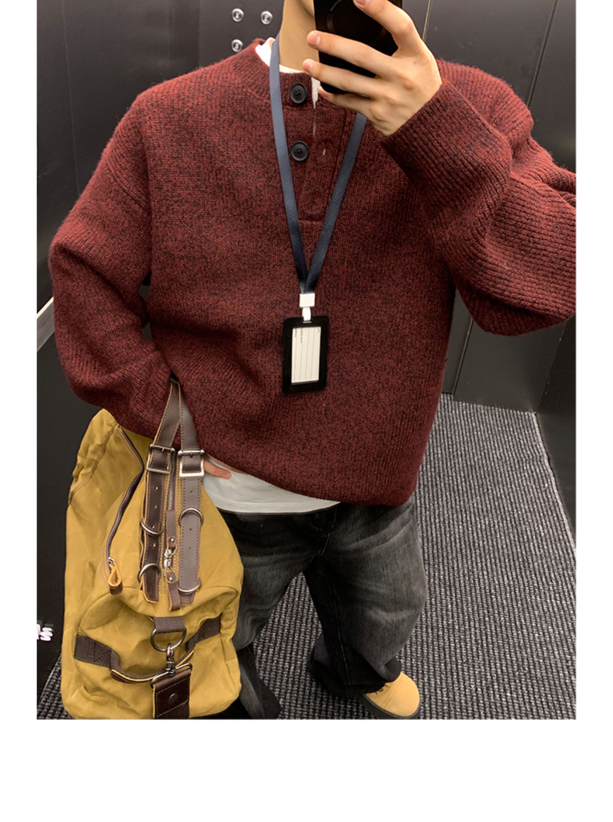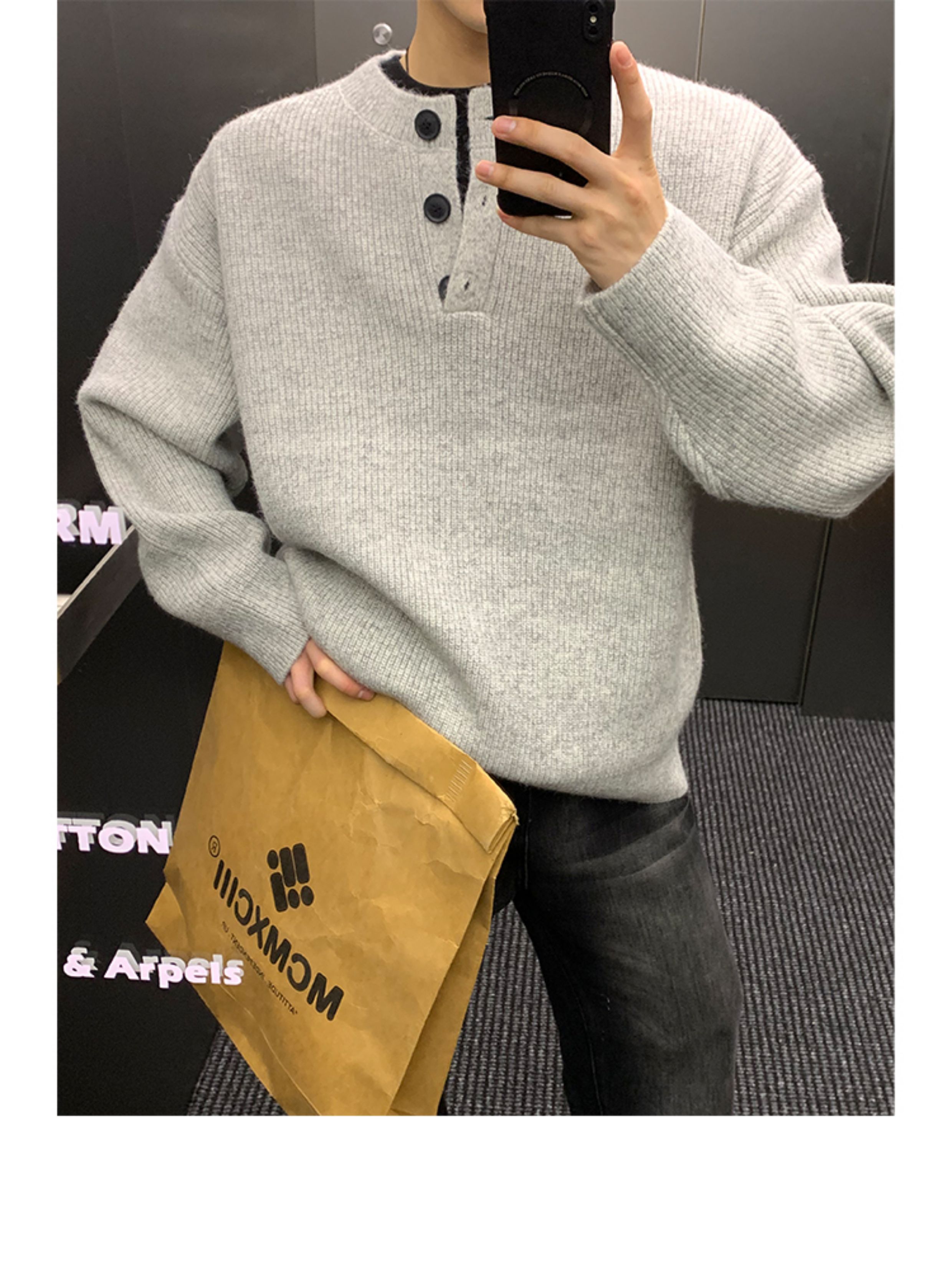 Plth* Retro Mixed-Color Sweater for Men, Lazy Style, Henry Collar, Casual, Niche, High-End, Loose-Fitting Outerwear Knitwear
