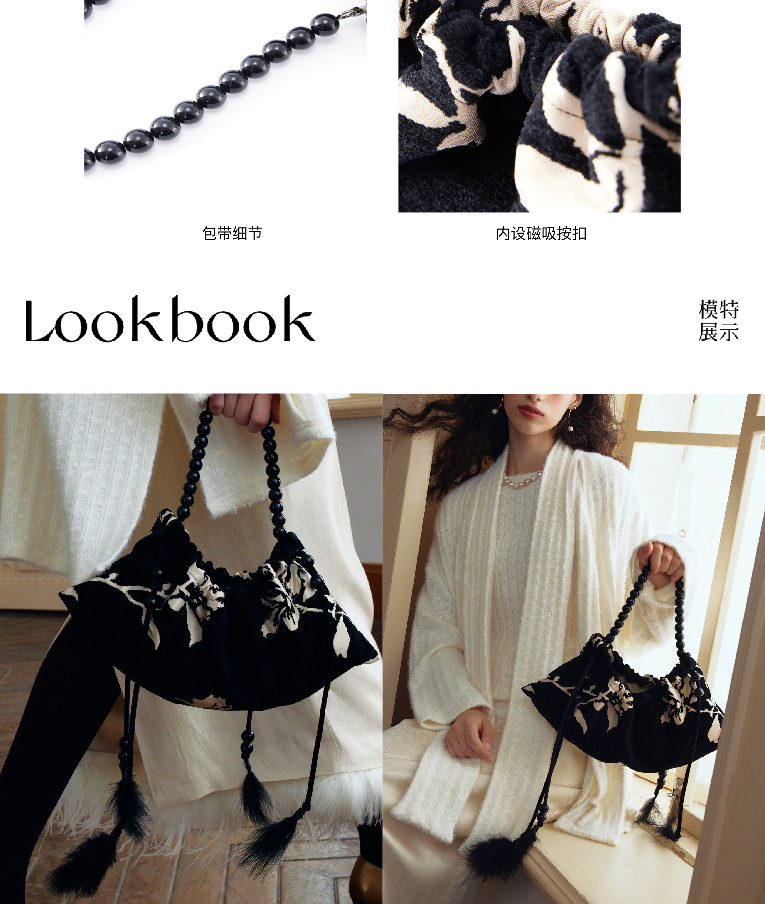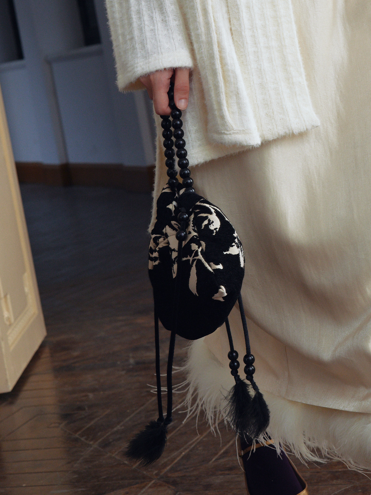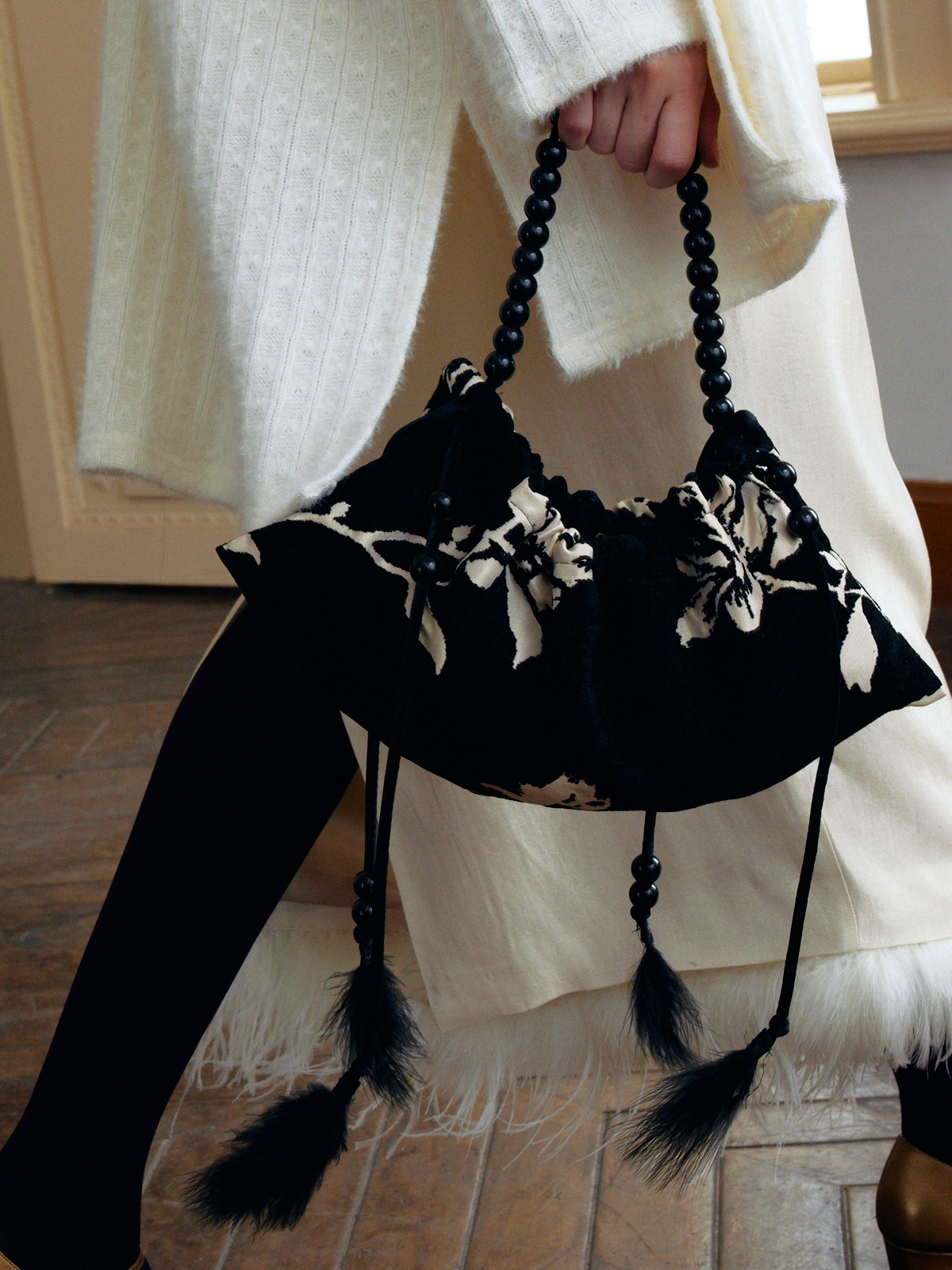 Te by Frigidorg 23 Autumn/Winter New Product Retro Wool Double-Sided Jacquard Beaded Chain Shell Handbag