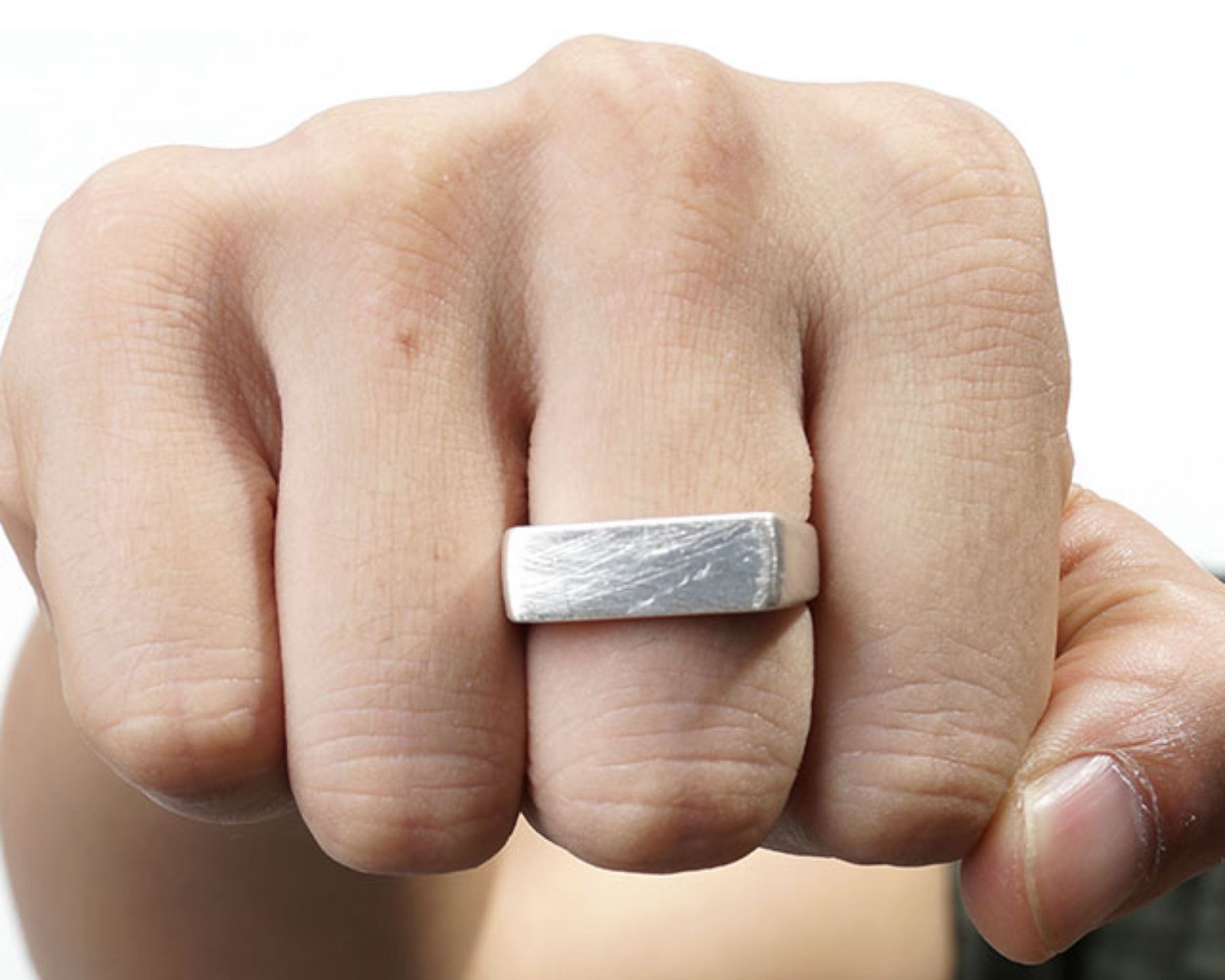 Vixtorm Bar 925 Sterling Silver Ring Rectangular Original Design Handmade Ring Unisex Tough Style