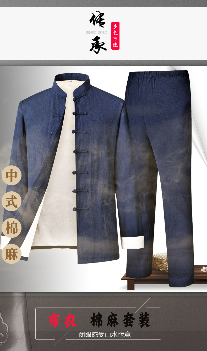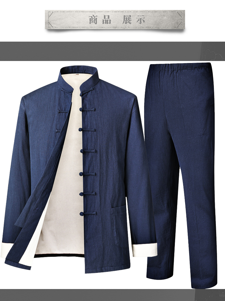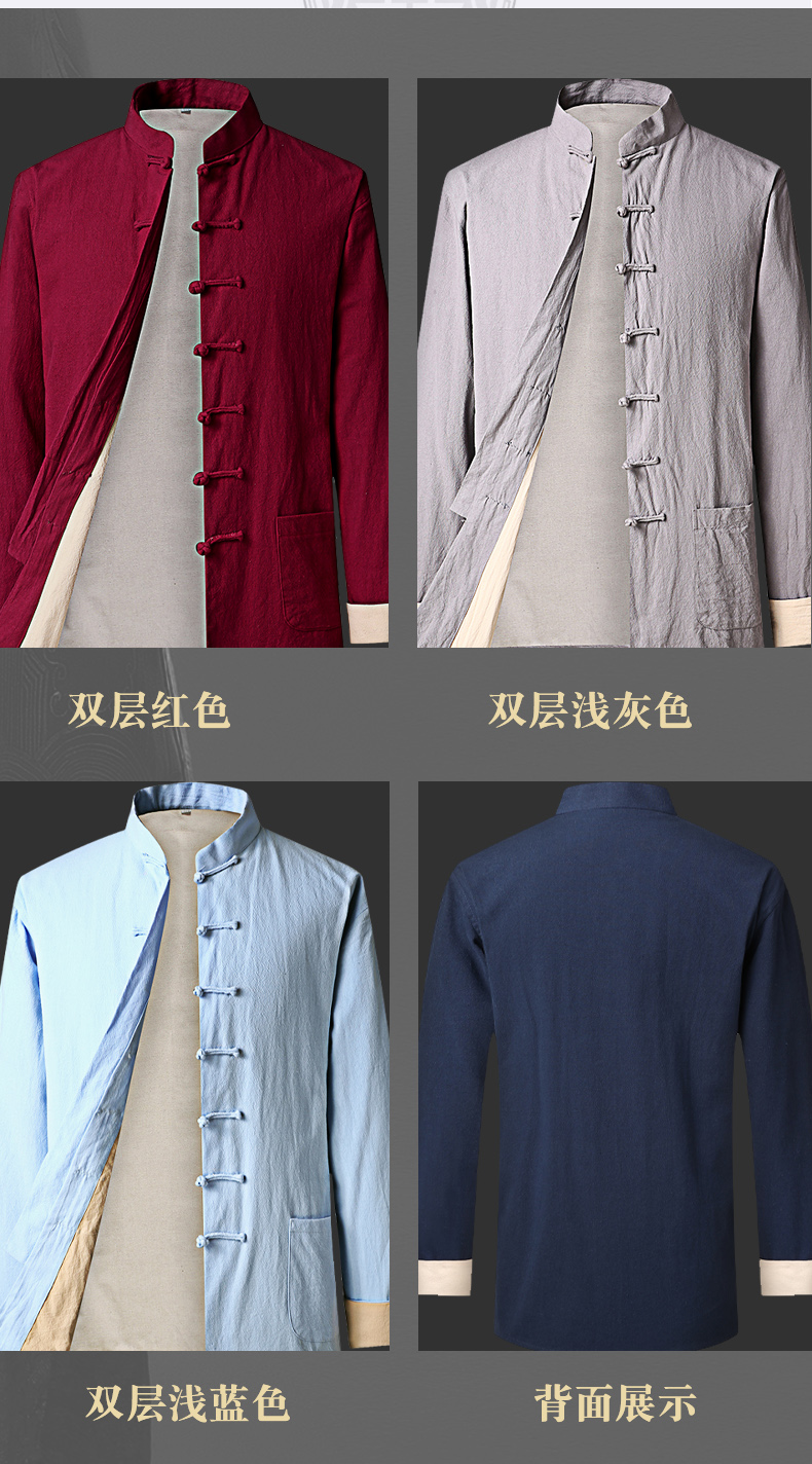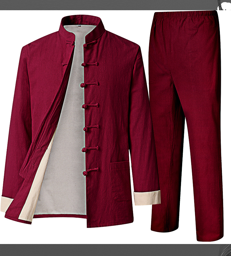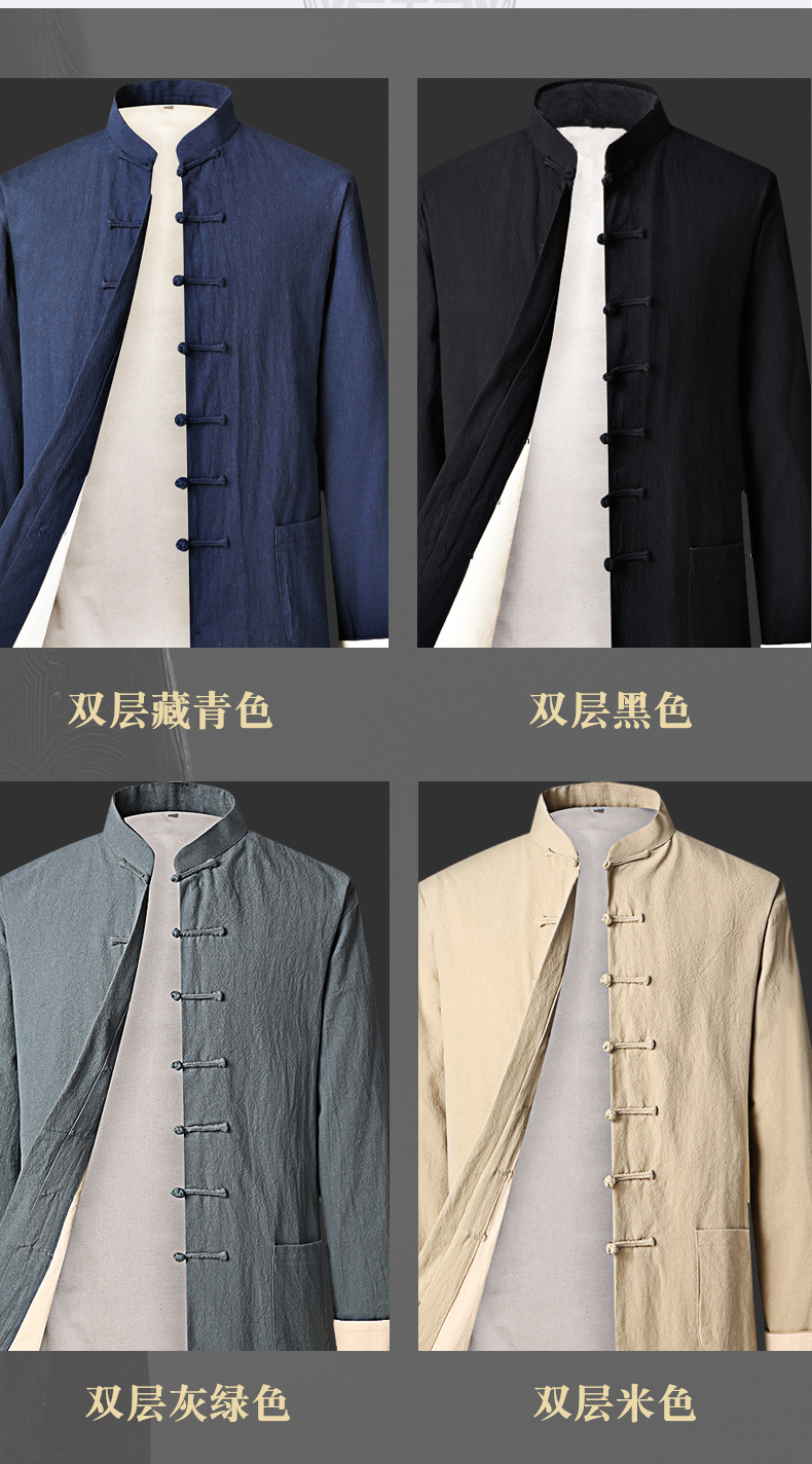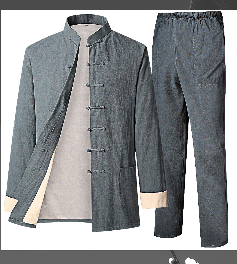 Spring and Autumn Casual Suit Tang Suit for Men, Cotton and Linen Chinese Style Casual Trendy Retro Chinese-Style Linen Zhongshan Suit, Loose Fit, Large Size