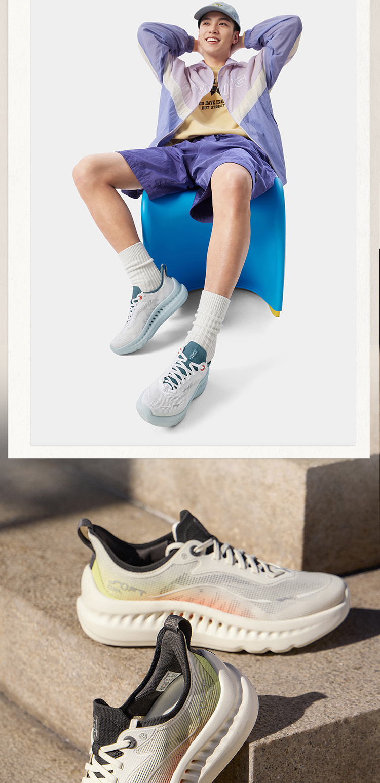 Xiao Zhan's Same Model Li-Ning Soft Cool 2丨 Casual Shoes for Men, New Shock-Absorbing, Lightweight, Comfortable Running Sneakers