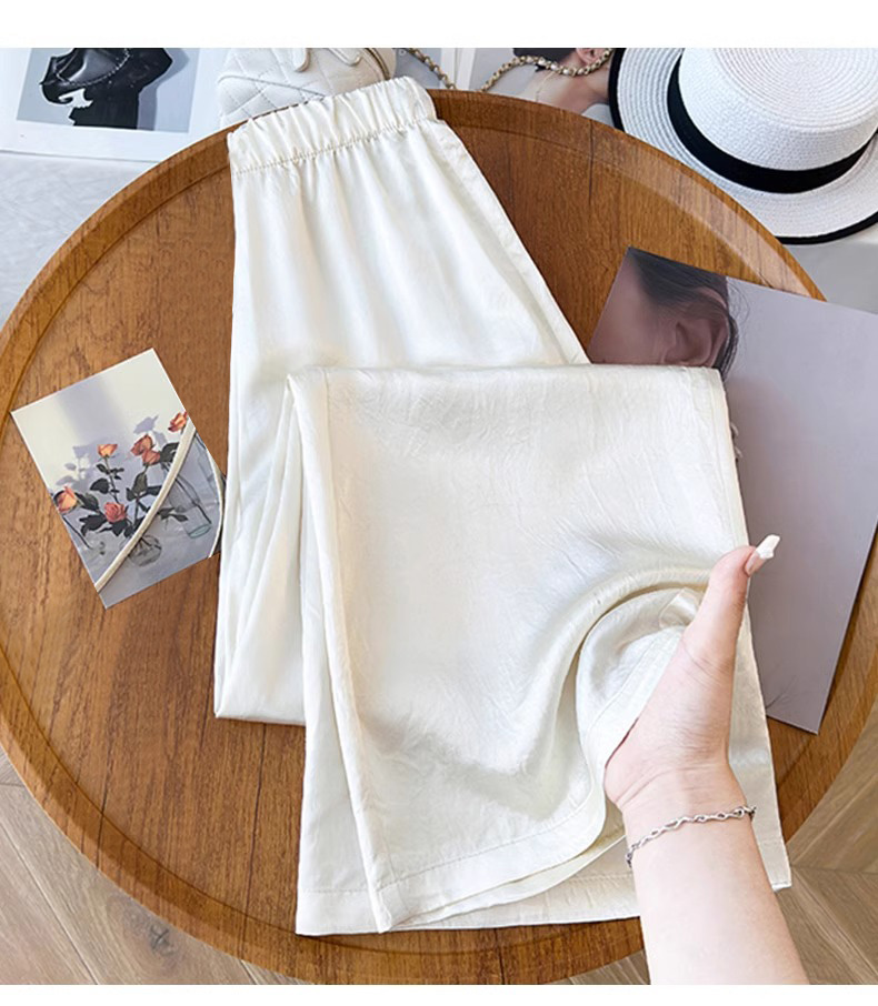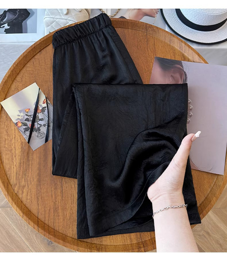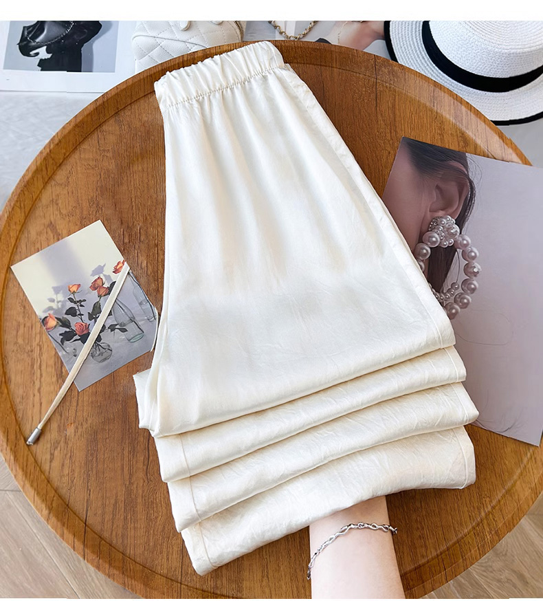 Brand Counters Withdraw Discounts on Authentic Women's Clothing from Foreign Trade Malls, Featuring Chinese-Style Ice Silk Wide-Leg Pants and Acetate Satin Straight-Leg Pants