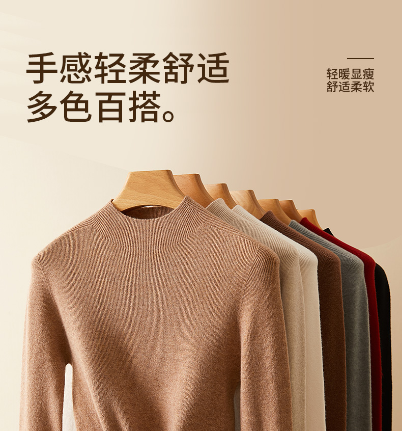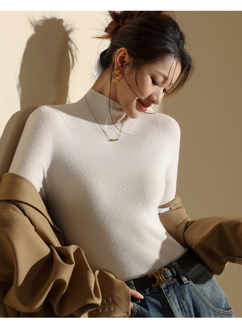 Wool Base Layer Shirt for Women, Suitable for Autumn and Winter, Can Be Worn as Outerwear, Half-High Collar, 2025 New Style, Slim Fit, Long-Sleeved, High-End Sweater