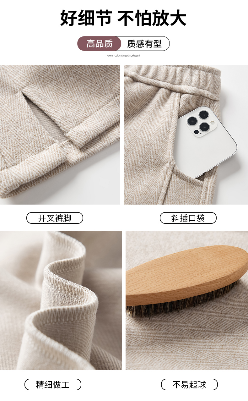Acetate Wool Wide-Leg Pants for Women, Autumn and Winter 2025 New Style, Fleece-Lined, Straight-Leg, Slim-Fit, Drapey Herringbone Woolen Pants