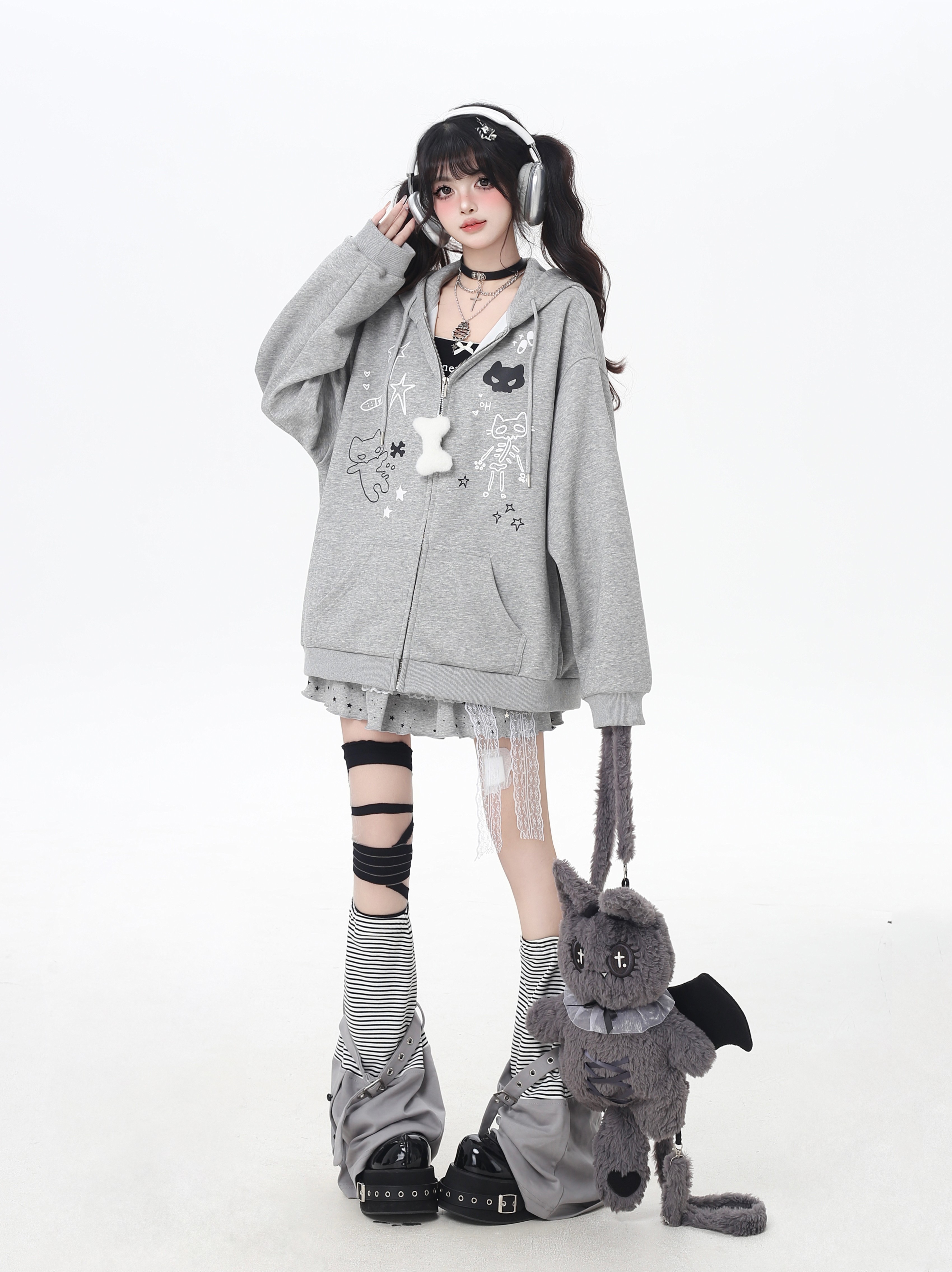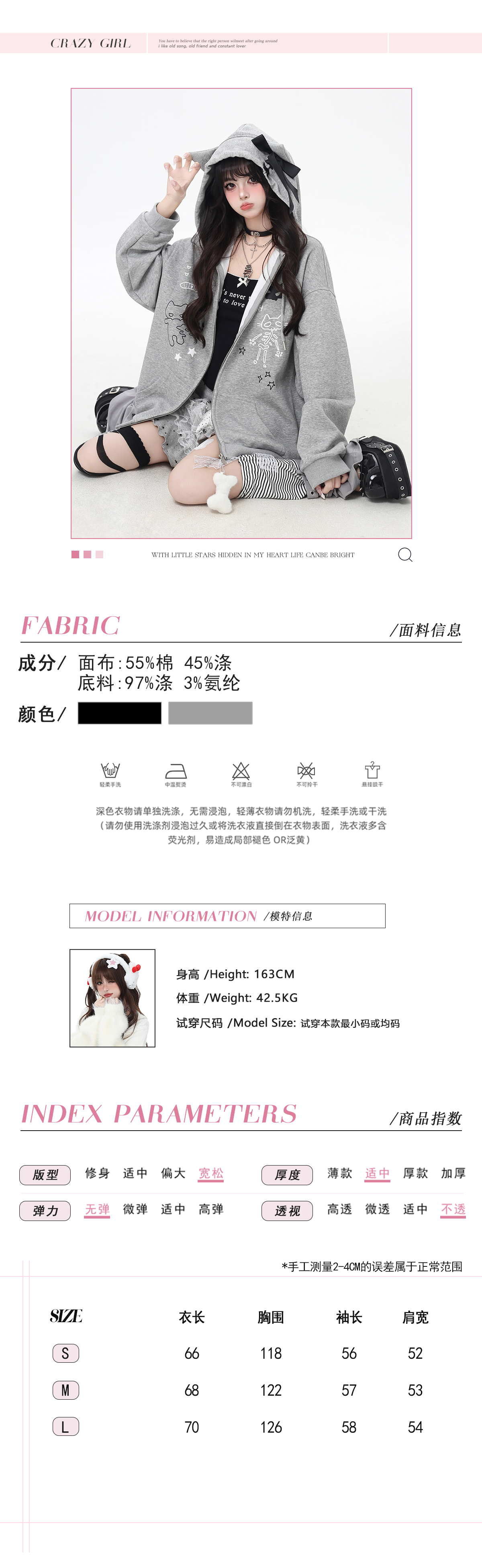 Crazygirl Cute Cat Ear Strap Hooded Niche Loose Design Sweatshirt Zipper Jacket Autumn
