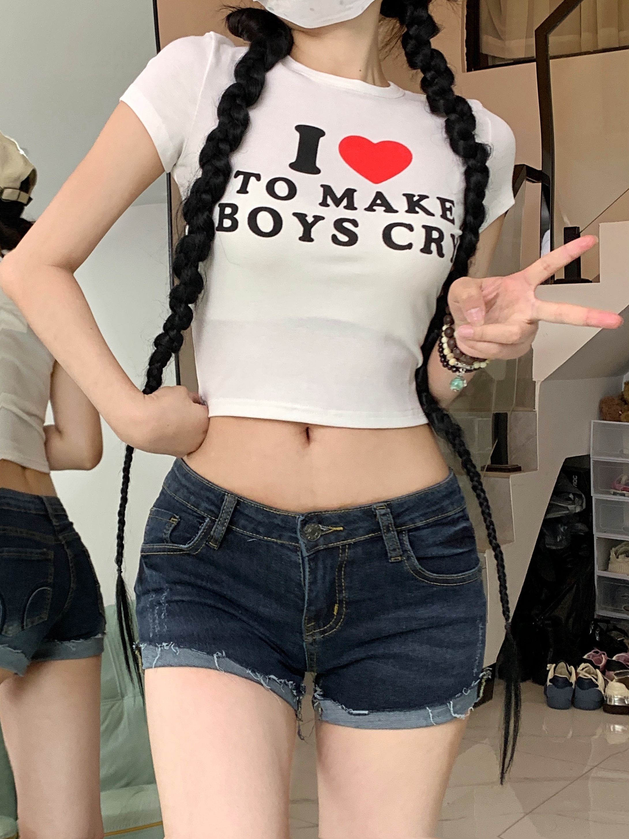 Autumn Plus-Size Denim Shorts for Women, Ultra-Low Waist, Midriff-Baring, Stretchy, Slimming, Butt-Hugging, Millennial-Style Rolled Hem Hot Pants