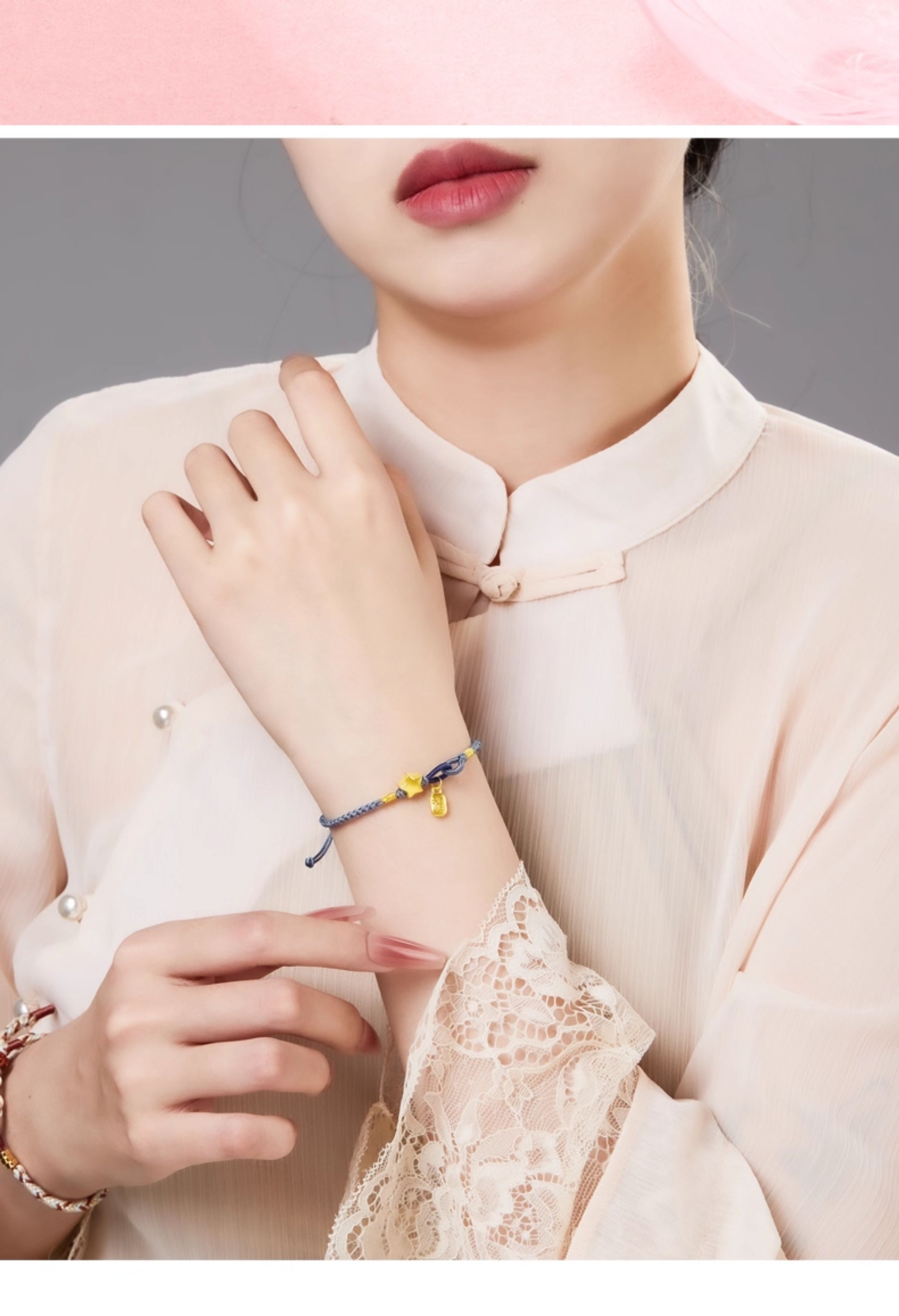 Love&Love Fortune Star Gold 999 Pure Gold Bracelet Transfer Bead 5D Hard Gold Bracelet Gift for Girlfriend