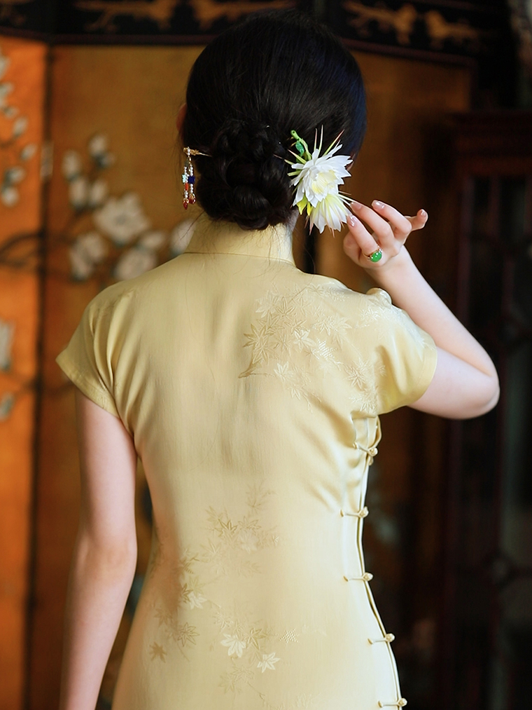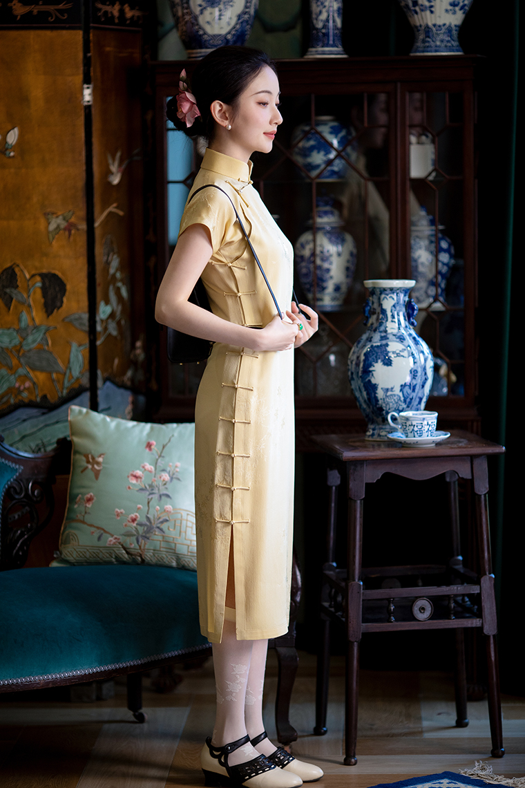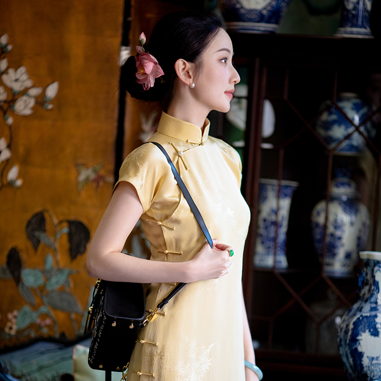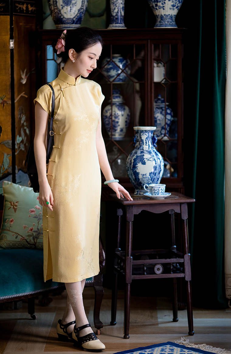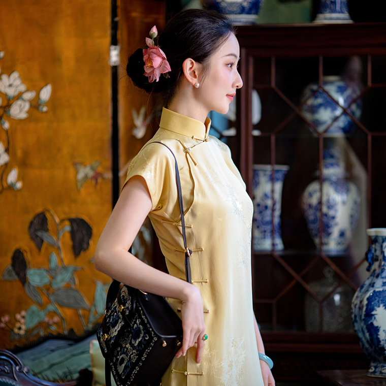 Yueban Xixi丨2025 Summer New Collection丨Silk Imitation Vintage Stand Collar Full-Button Traditional Chinese Dress